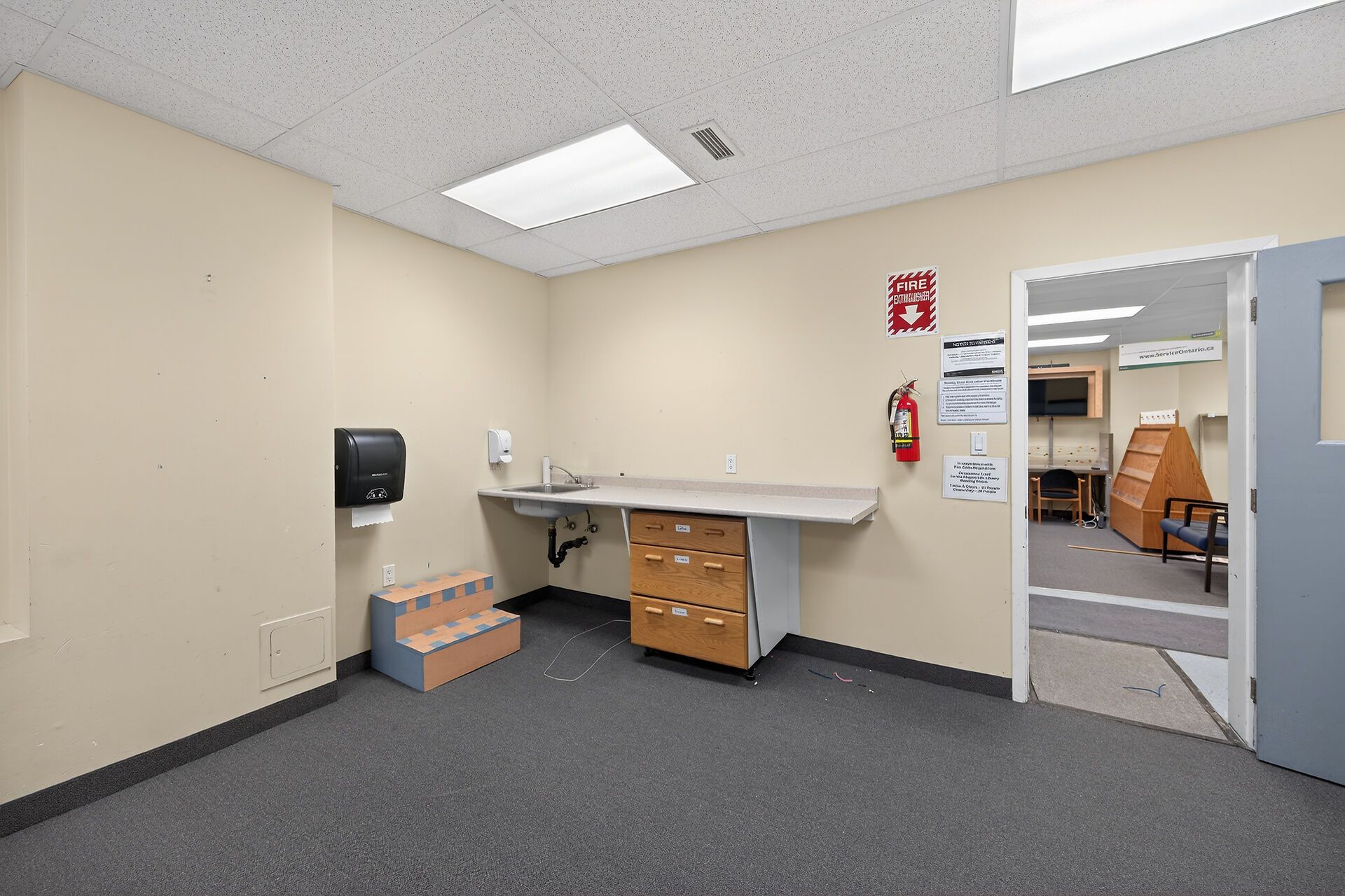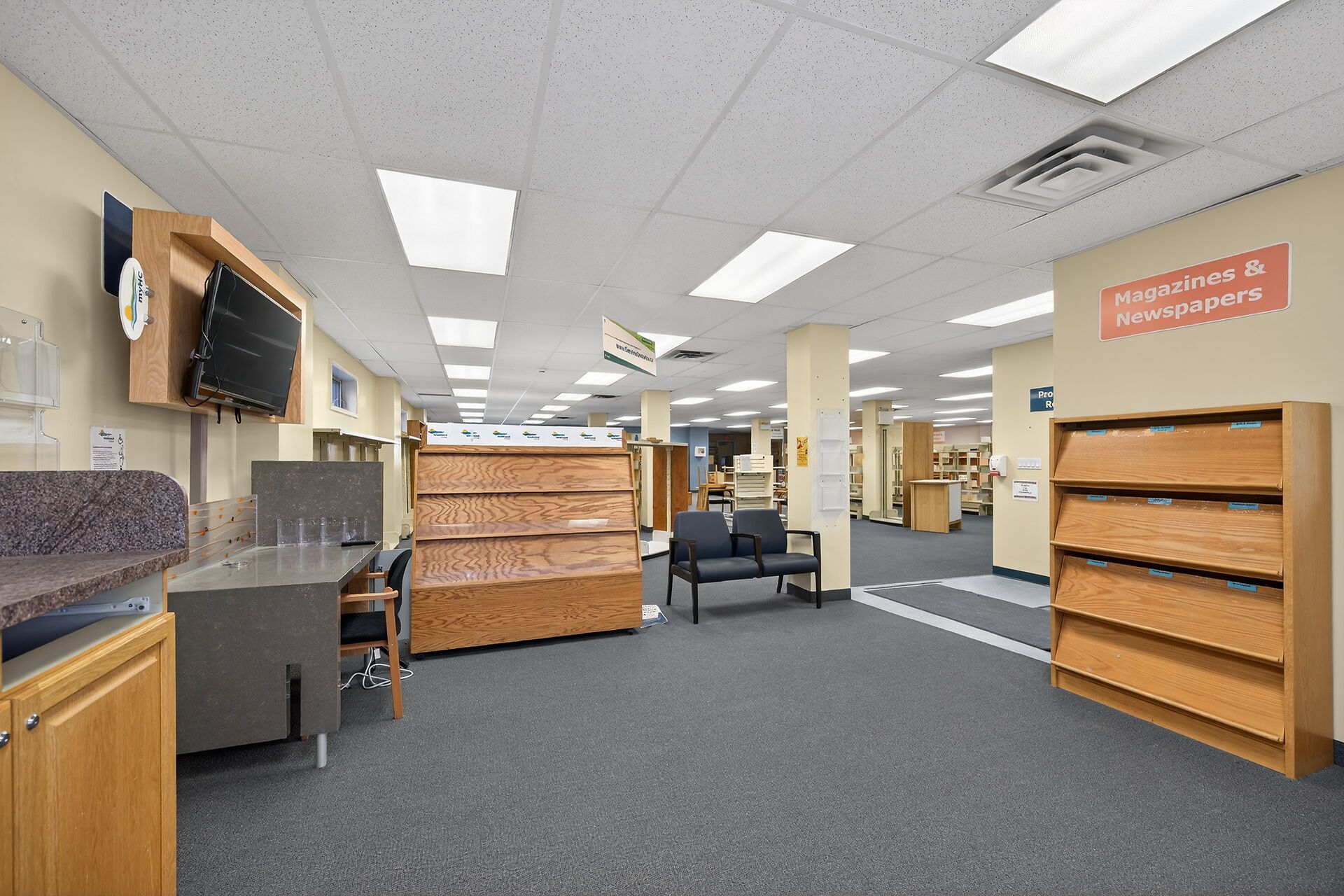 Endless opportunities in this great 5200 square foot one level commercial space in desirable high traffic area zoned community institutional (ic) and was previously the community library for many years. Well maintained building on a 75x132 ft lot with parking area in the rear. Commercial carpeting and lots of windows, natural gas forced air furnace plus central air (roof top units), 3 bathrooms (two public, one staff), and two extra framed in spaces, one with a sink - otherwise its completely open concept. Convenient municipal water and sewer. Permitted uses include day care, office, private club, school, training centre and more!