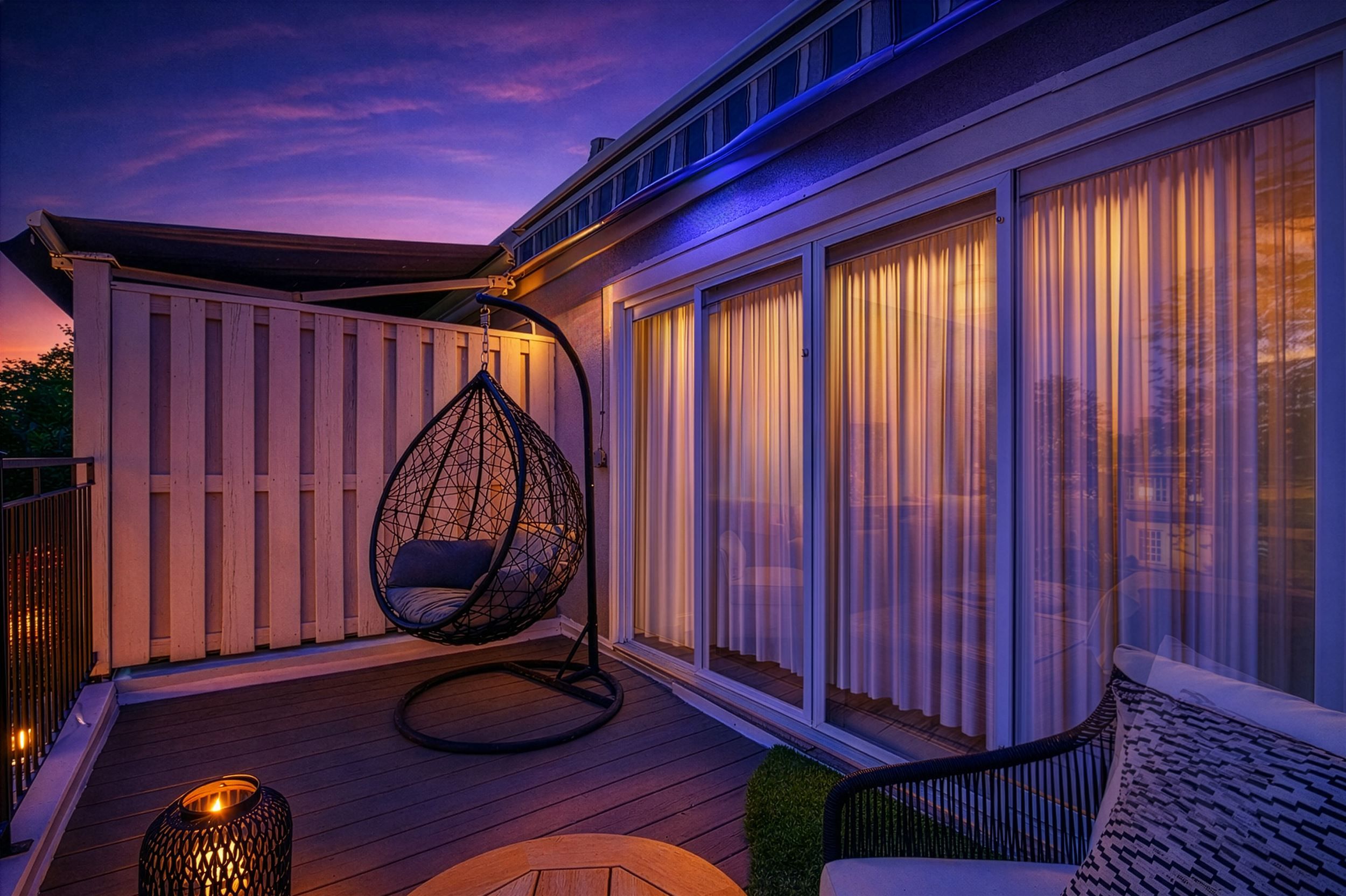 • Large balcony overlooking a fully fenced backyard oasis for relaxation.