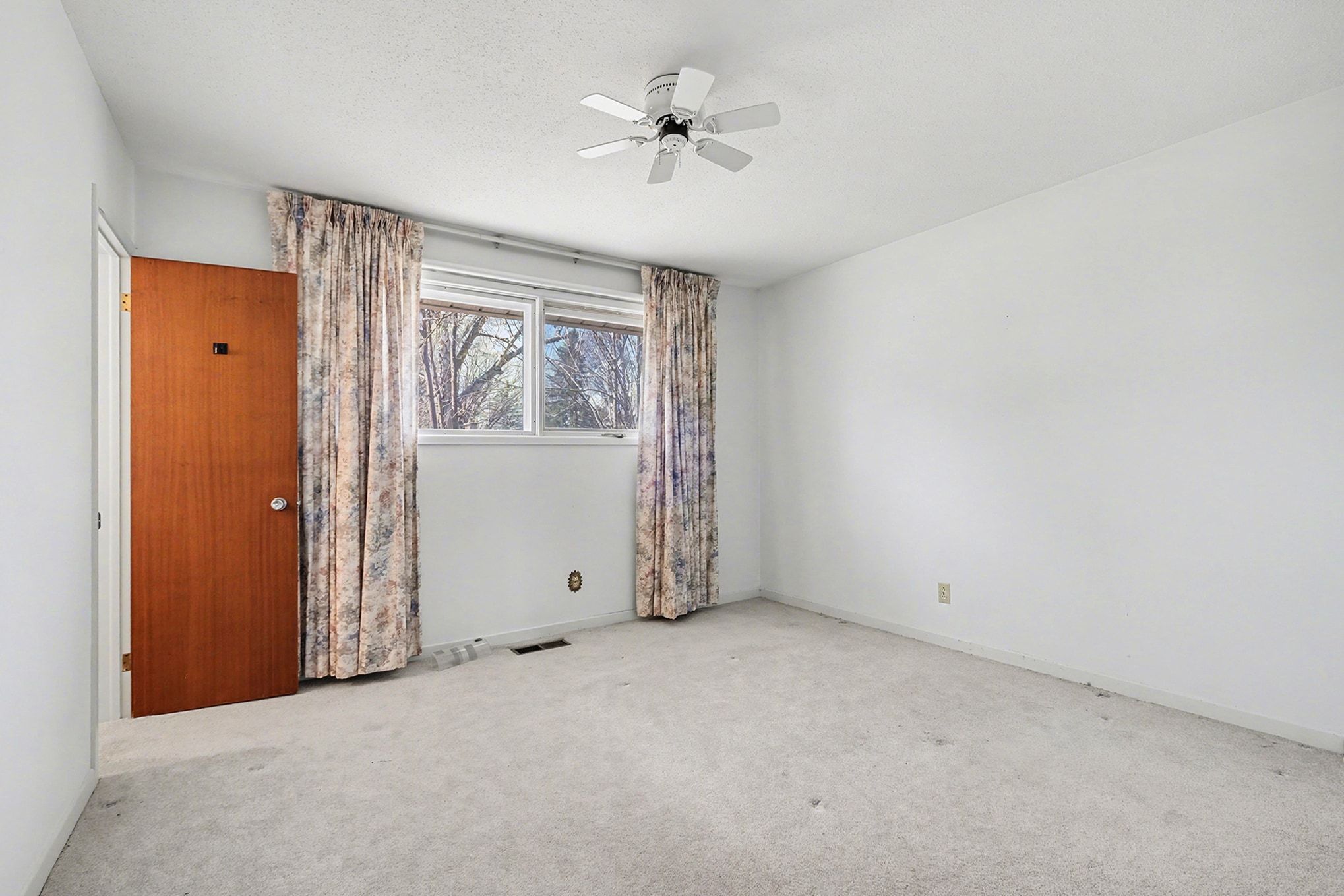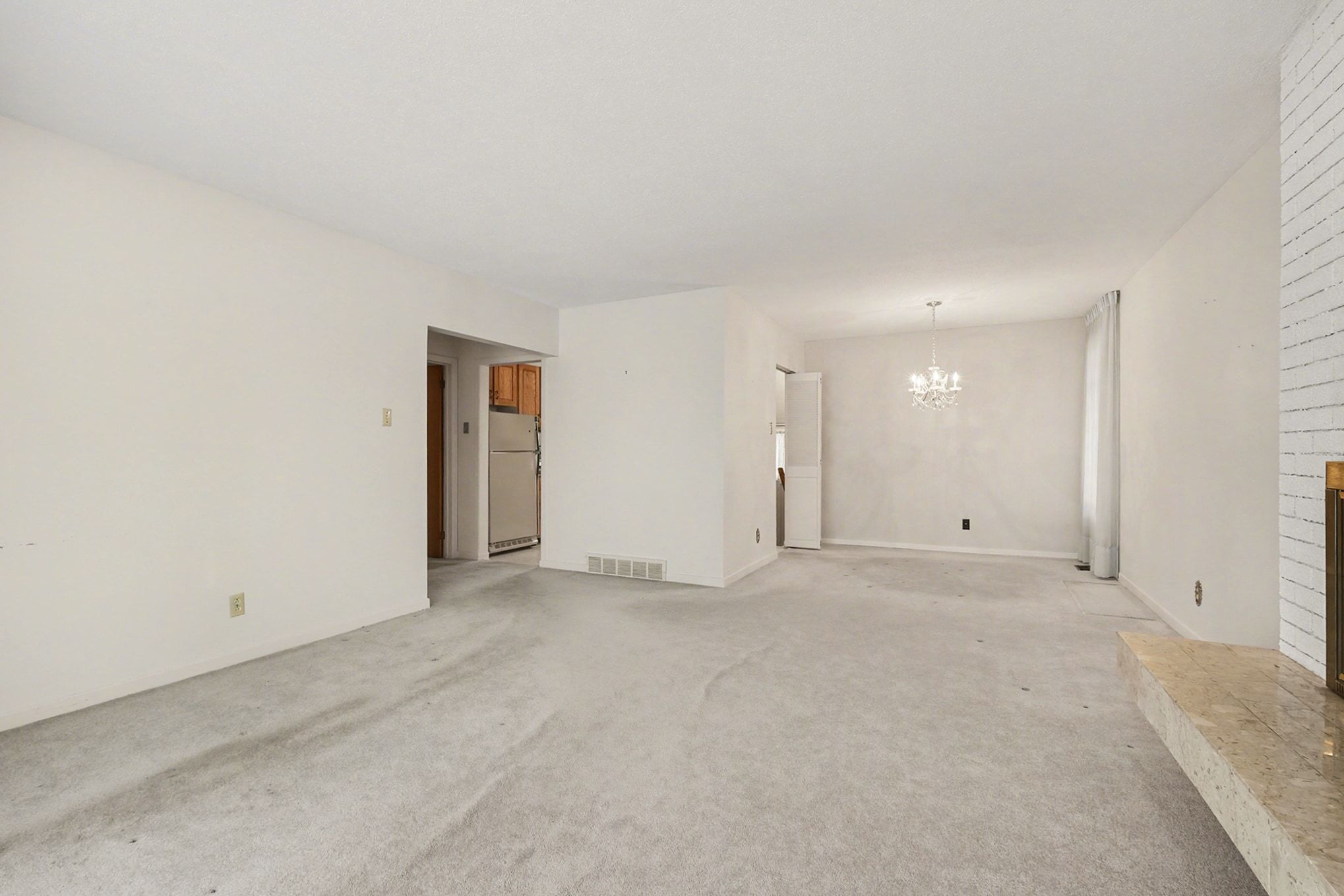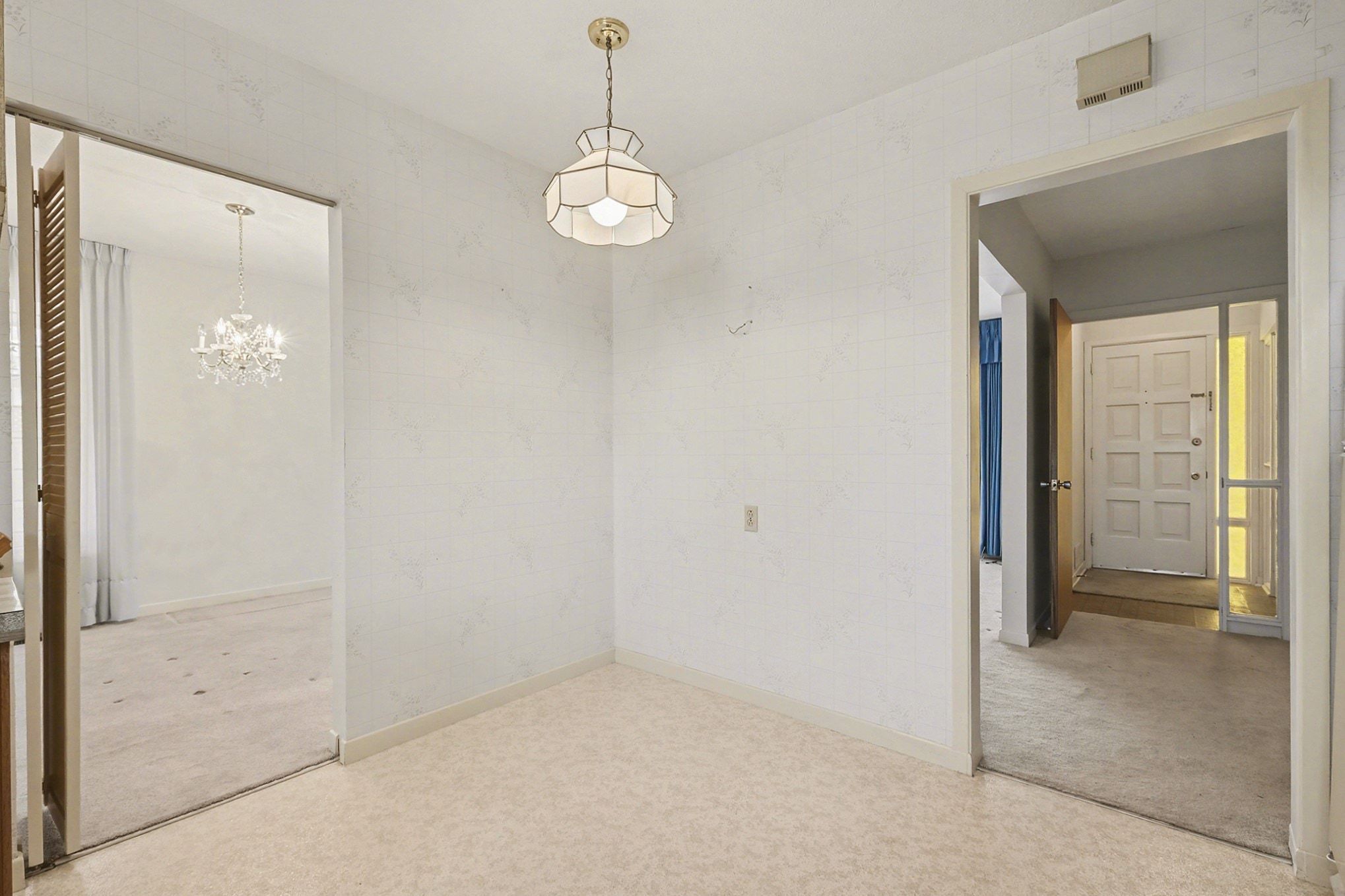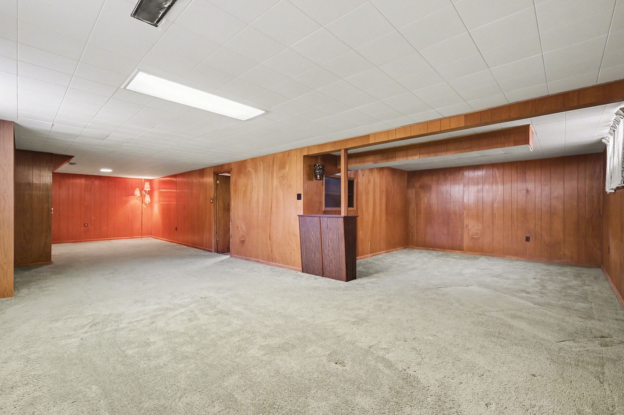 • Original hardwood flooring under carpeting, ready for restoration.