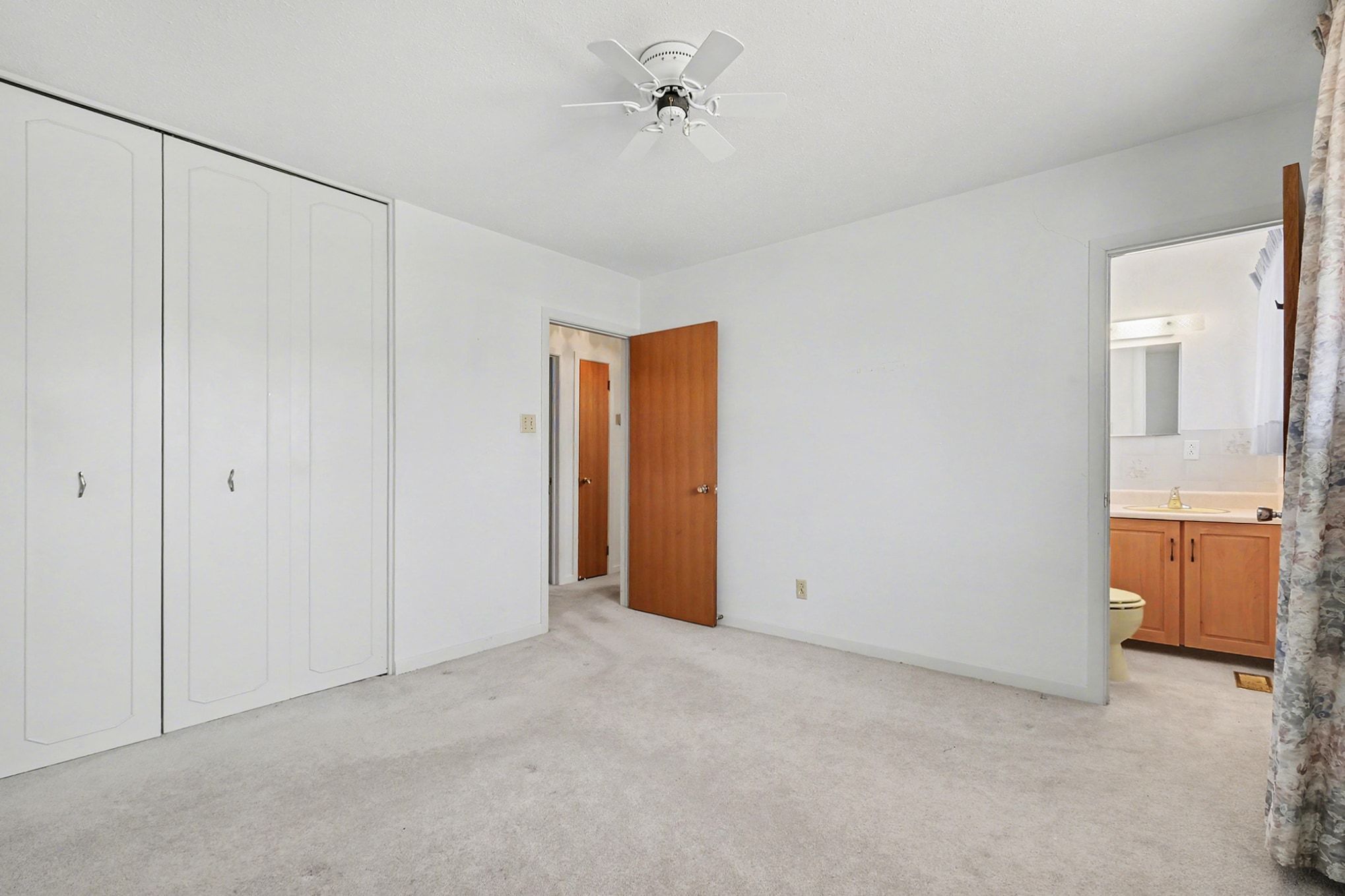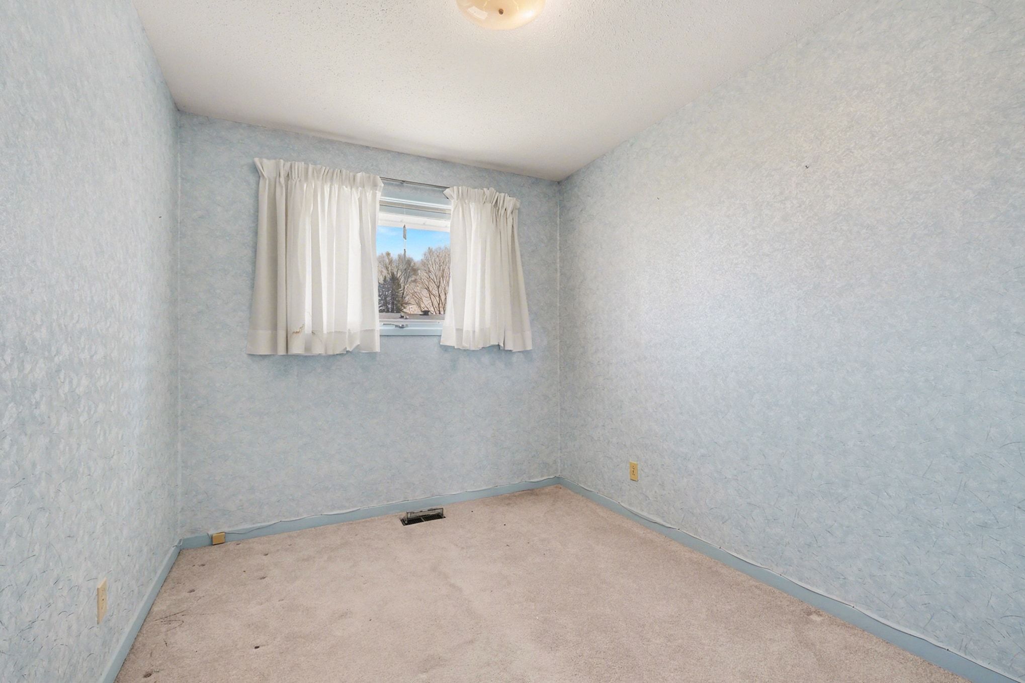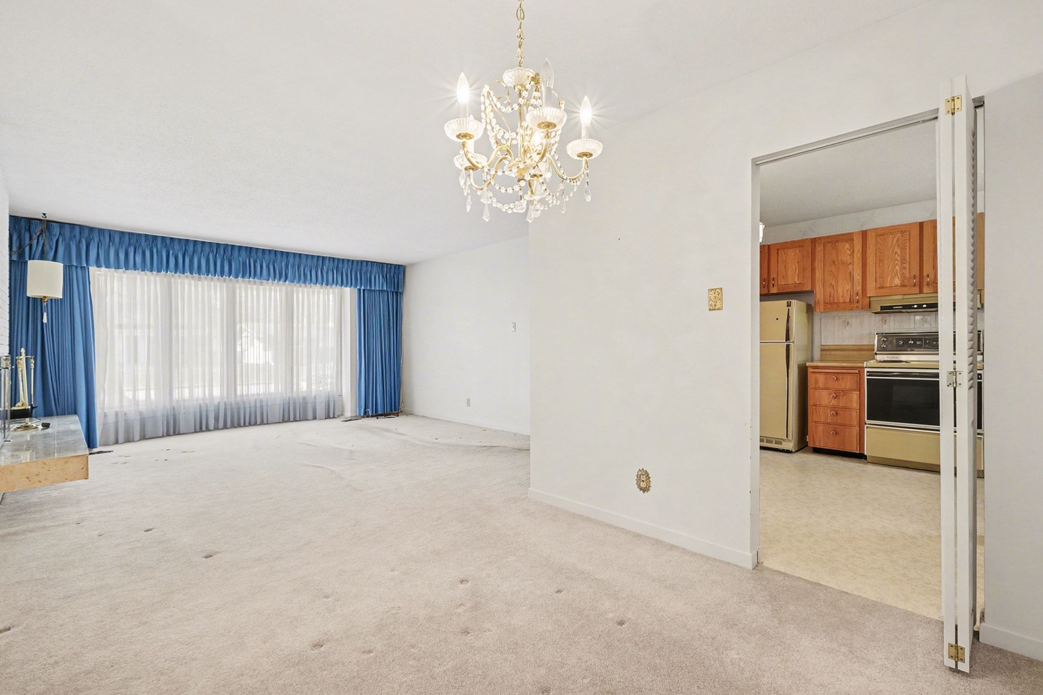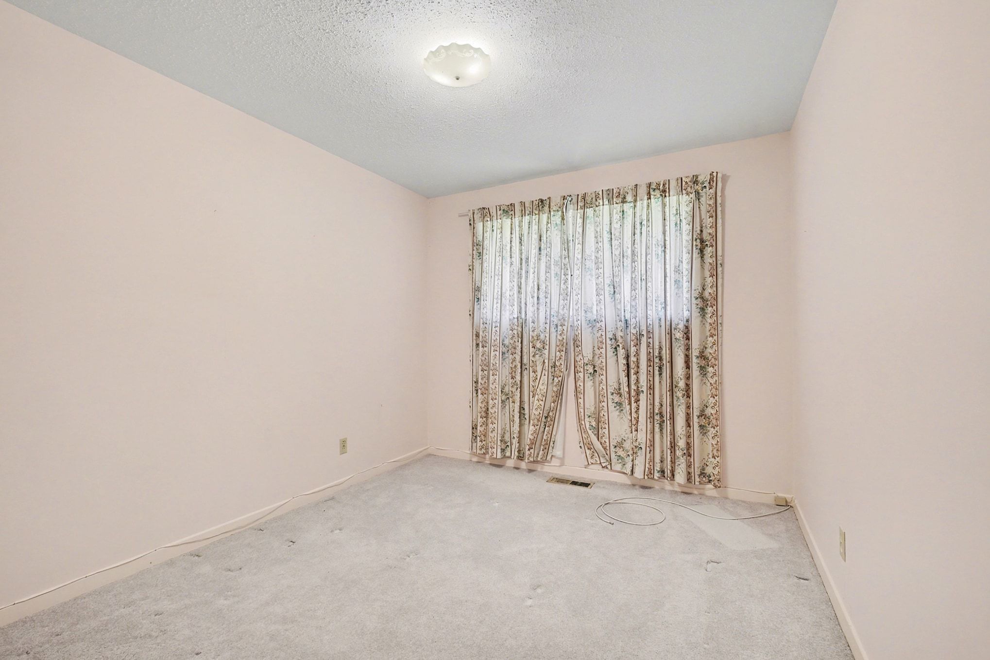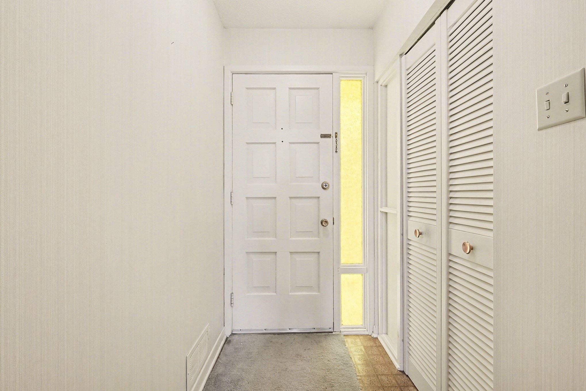 • Original hardwood flooring under carpeting, ready for restoration.