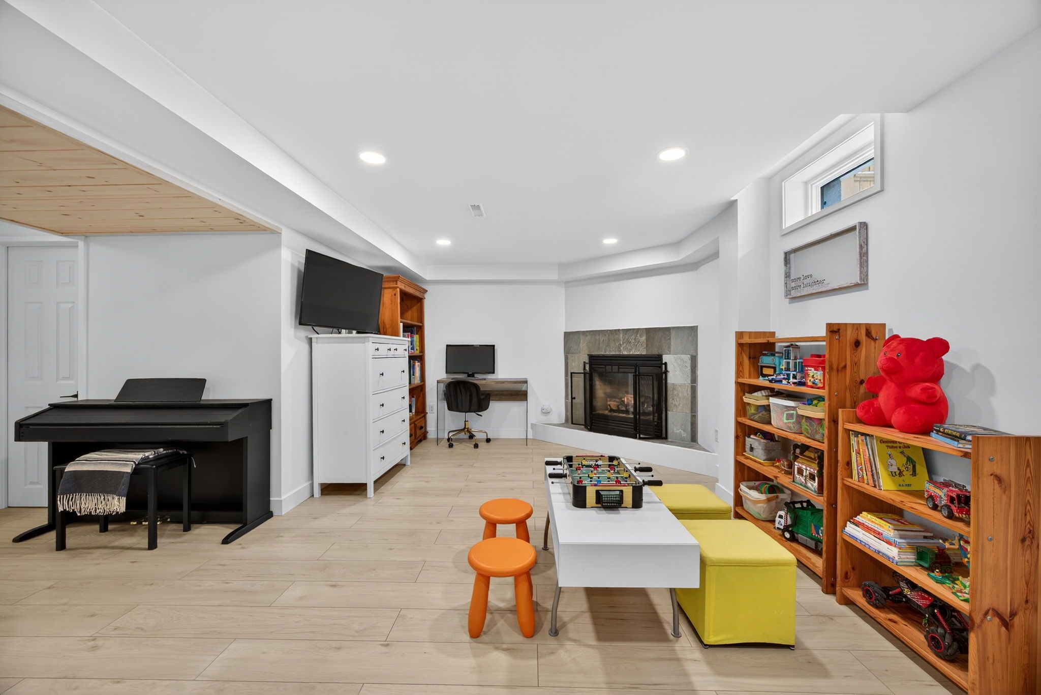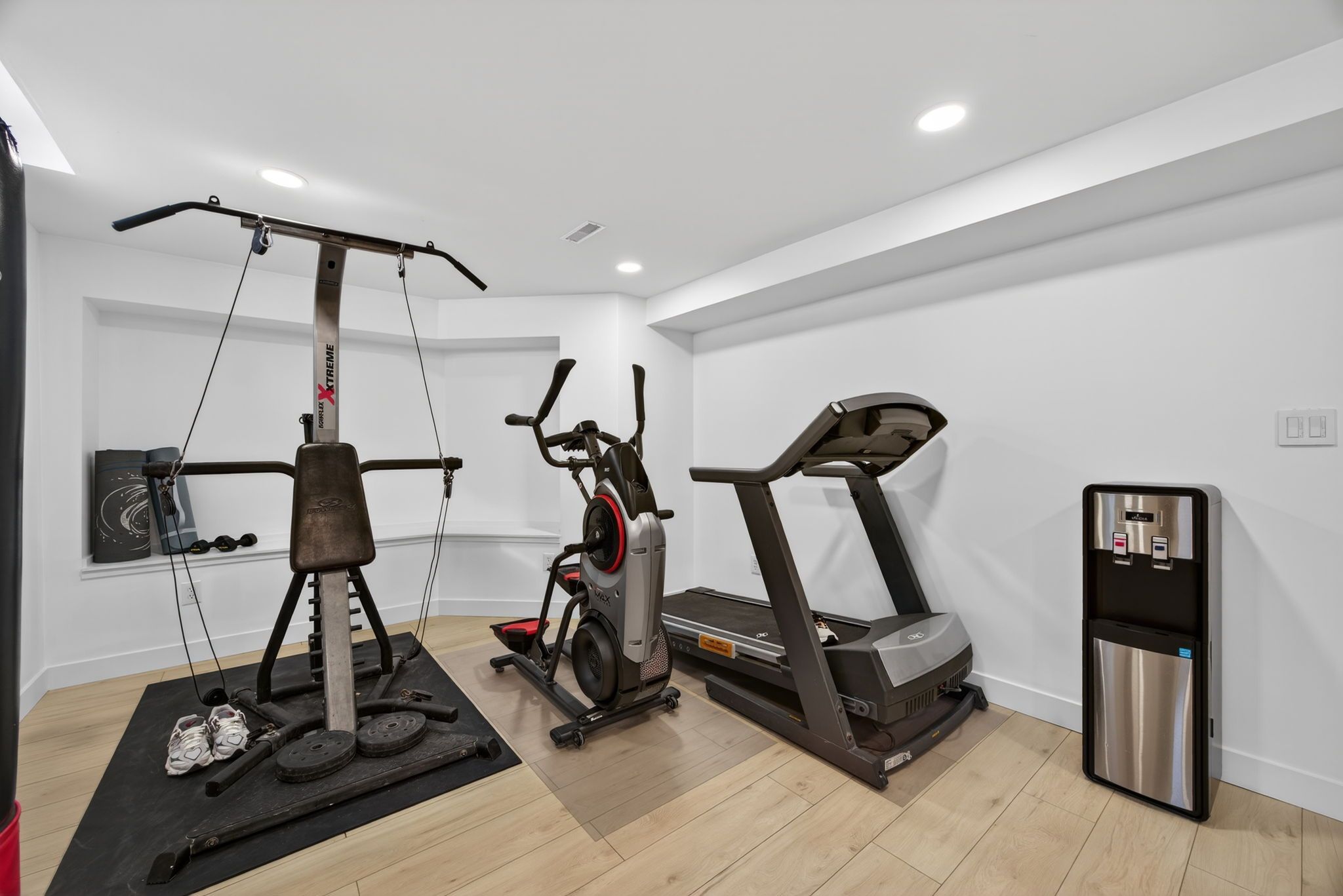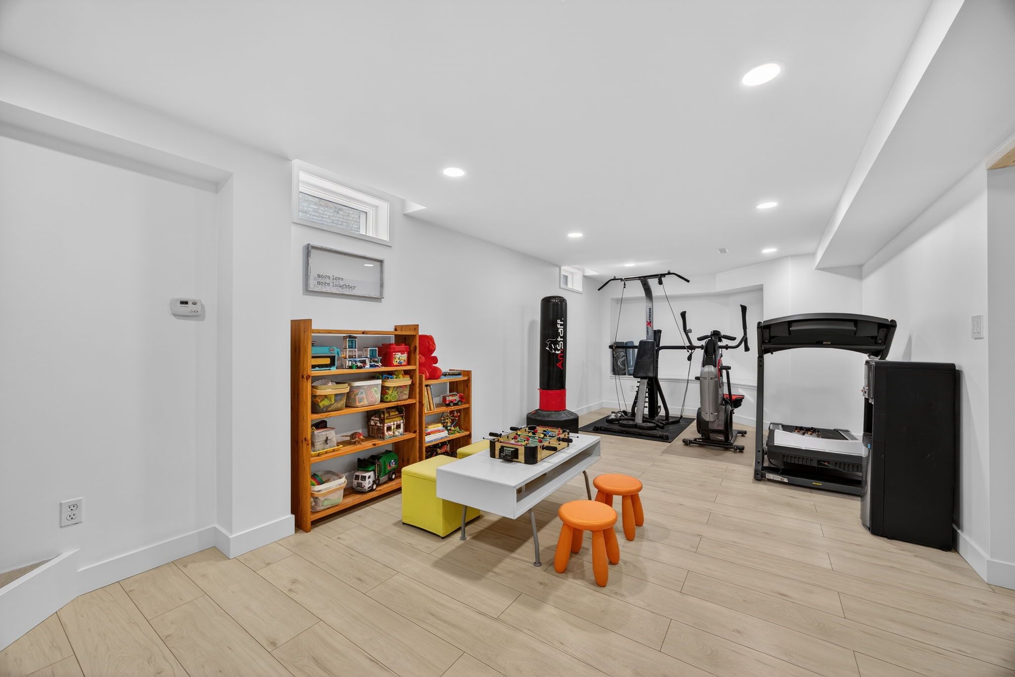 • Remodeled lower level with a cozy gas fireplace and gym area.