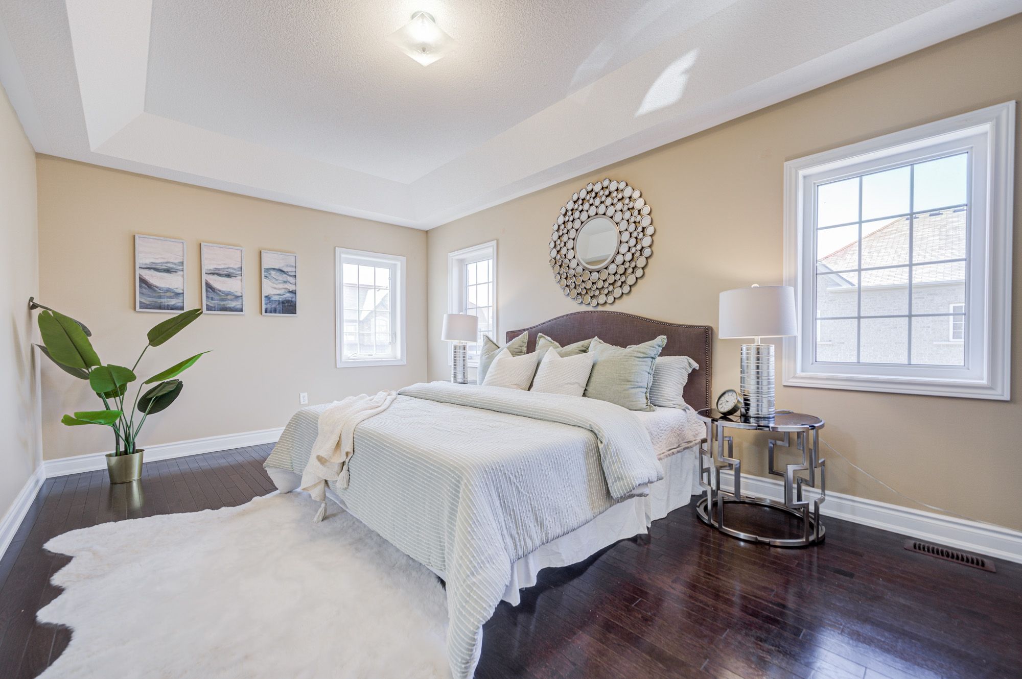 • Bright interior featuring 9 ft ceilings and hardwood flooring throughout.