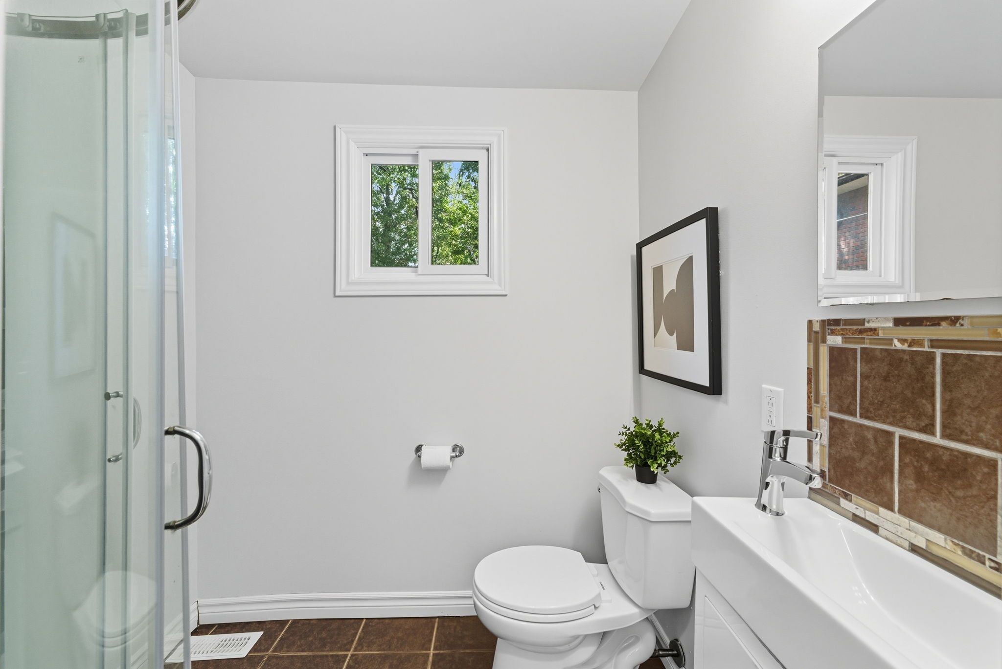 • Fenced backyard offers sunny exposure for outdoor activities and relaxation.