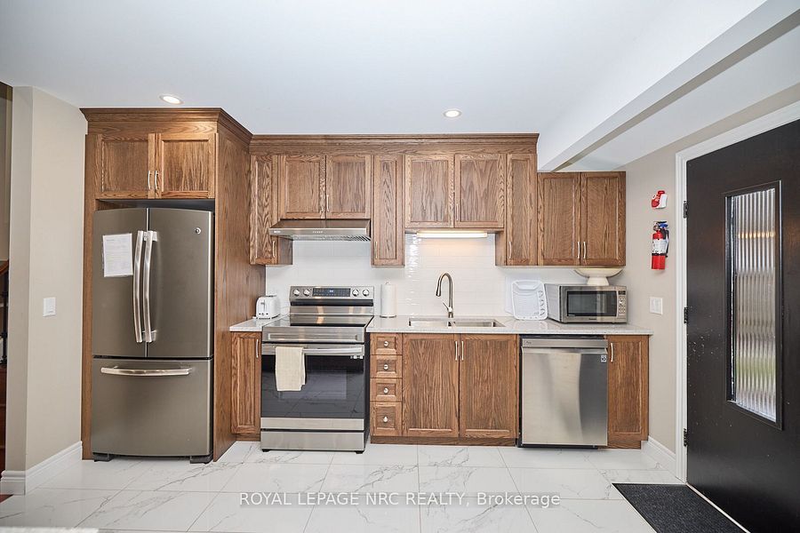 This stunning home has been completely transformed with over $300,000 in high-quality renovations and upgrades. Completed in late 2023 by a licensed contractor, every detail has been updated, including brand-new hvac (ducts & vents), owned hot water heater, upgraded insulation, renovated kitchen and bathrooms, new plumbing, and upgraded electrical with a 200-amp panel. For added peace of mind, the home also features a hard-wired fire/co detection system. All documentation and warranties available for the buyer. Offering 5 bedrooms including a spacious main-floor primary bedroom, and 2 fully renovated bathrooms with modern finishes. Enjoy the bright open-concept kitchen, dining, and living area featuring vaulted ceilings and large windows that fill the space with natural light. Upstairs includes 3 additional bedrooms and an updated full bath. The lower level features a large rec room with cozy fireplace, an additional bedroom, and a laundry area. Located in one of st. Catharines' most desirable neighbourhoods, just steps to oakridge public school, and minutes to brock university, pen centre, ridley college, 4th avenue shopping, and the hospital. A rare opportunity to own a truly move-in-ready home in a prime location-book your showing today!