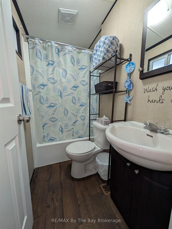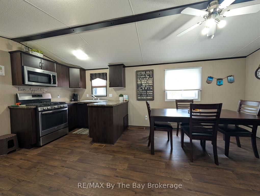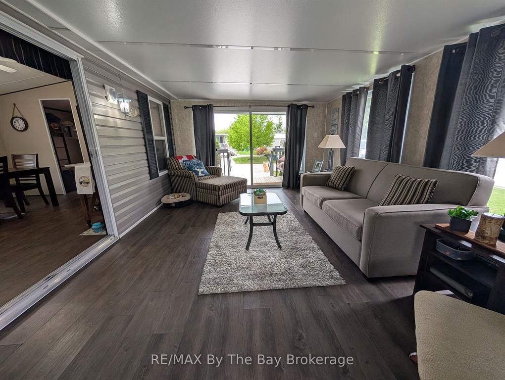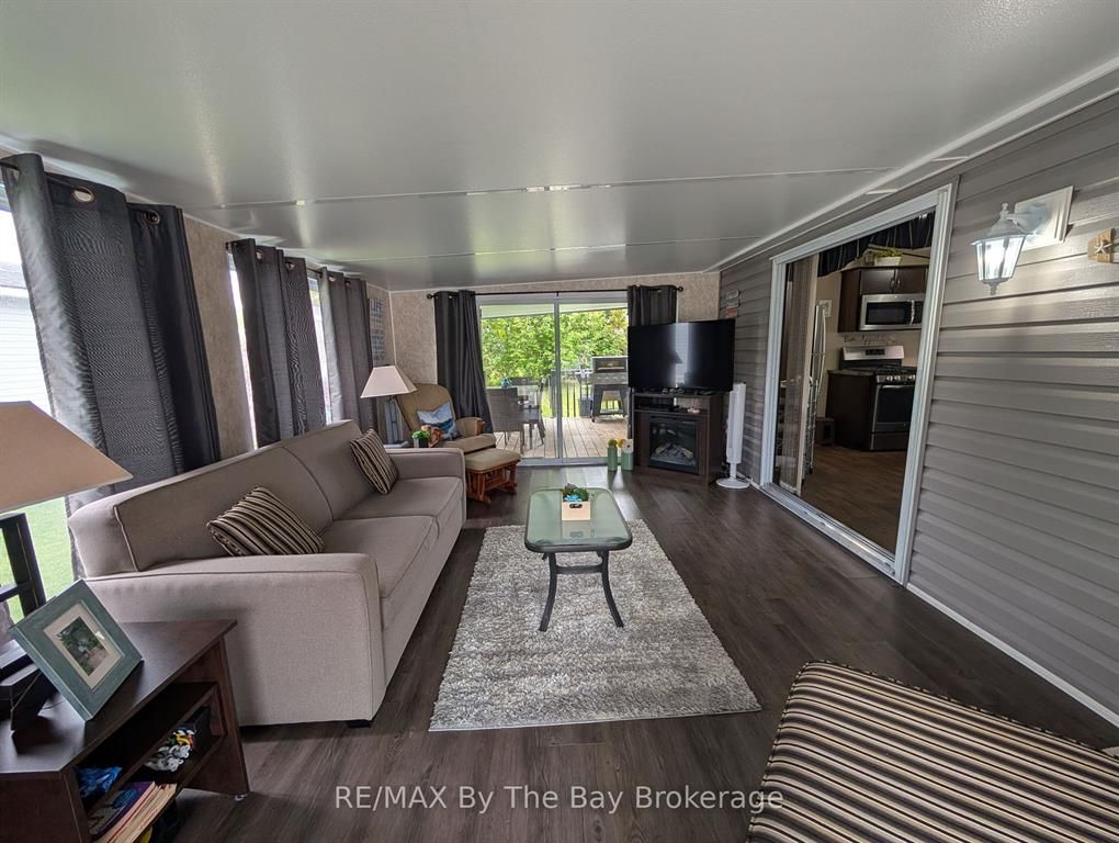 ****bonus golf cart included****escape to your perfect summer getaway at wasaga countrylife resort with this immaculate 2016 northlander cottager reflection model, offering the ideal blend of comfort and convenience. Available seasonally from may 1st to november 15th, this fully furnished 3-bedroom, 1-bathroom cottage is nestled on a quiet street just a short walk from the sandy shores of georgian bay. The bright, open-concept interior features vaulted ceilings, modern appliances, and plenty of cabinetry, creating a welcoming space for relaxing or entertaining. The primary bedroom includes a cozy queen-size bed and a ample closet, while a second & third bedroom features bunk beds and under-bed storage makes it perfect for families. Step outside to enjoy an oversized covered deck, a low maintenance yard with a firepit, and a storage shed all set on a fully engineered concrete pad with clean, dry storage underneath and a paved driveway. This turnkey unit is ready for immediate enjoyment and is located within a vibrant resort community offering exceptional amenities, including five inground pools, a splash pad, clubhouse, tennis court, playgrounds, mini-golf, gated security, and easy beach access. Seasonal site fees for 2026 are $6,740 plus hst. Don't miss the chance to make unforgettable summer memories schedule your showing today!