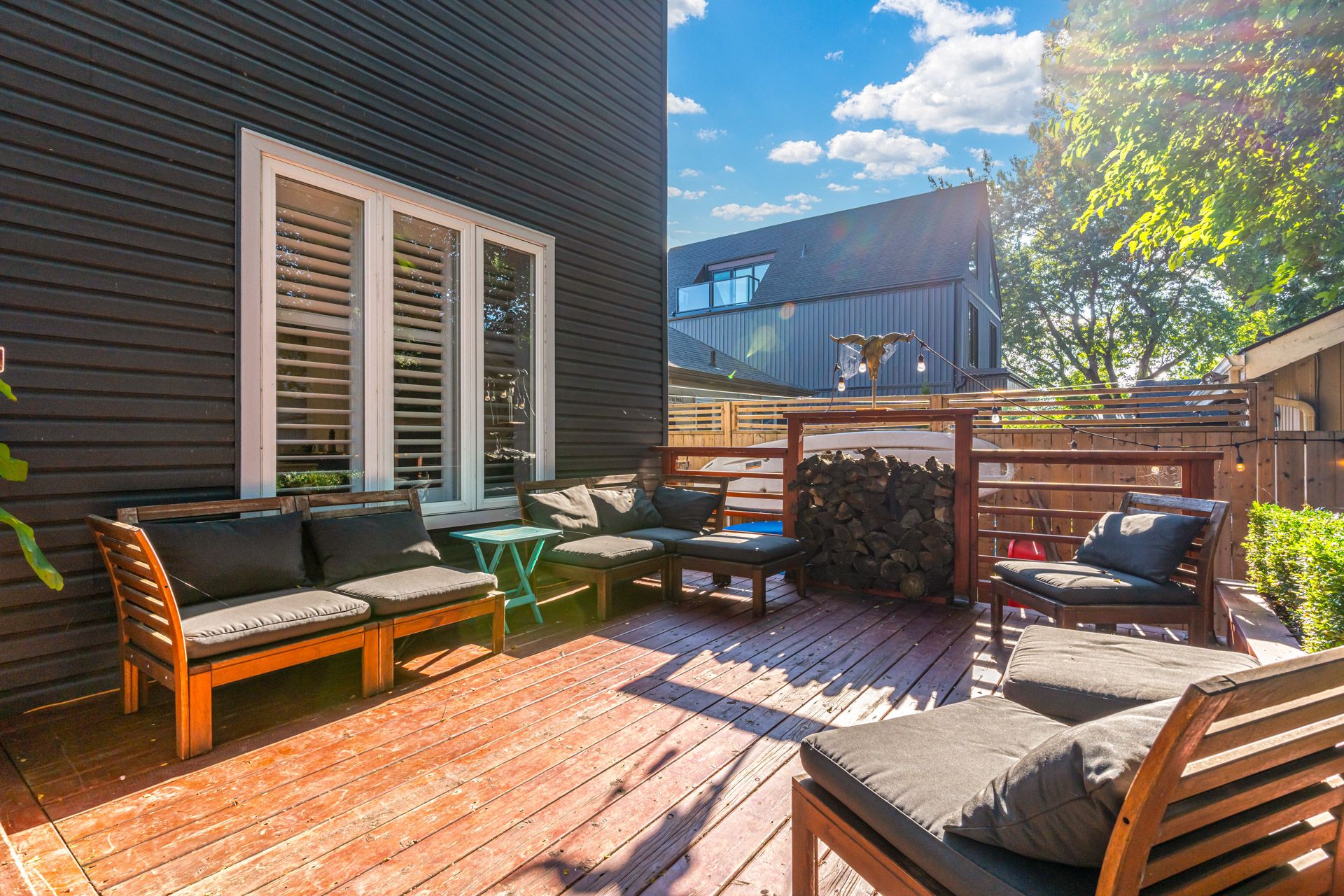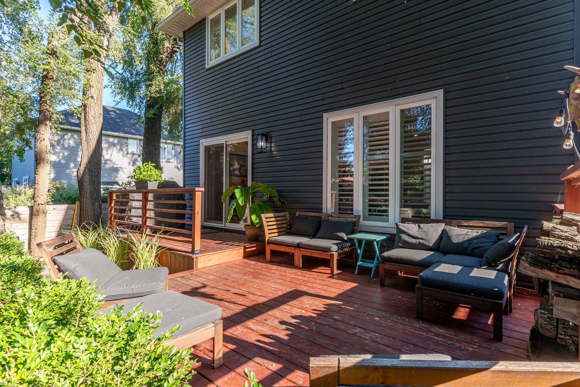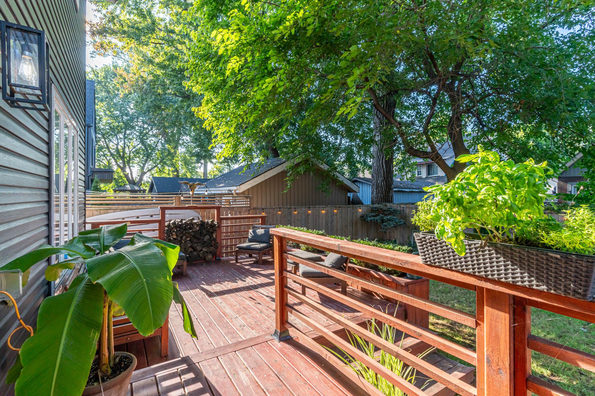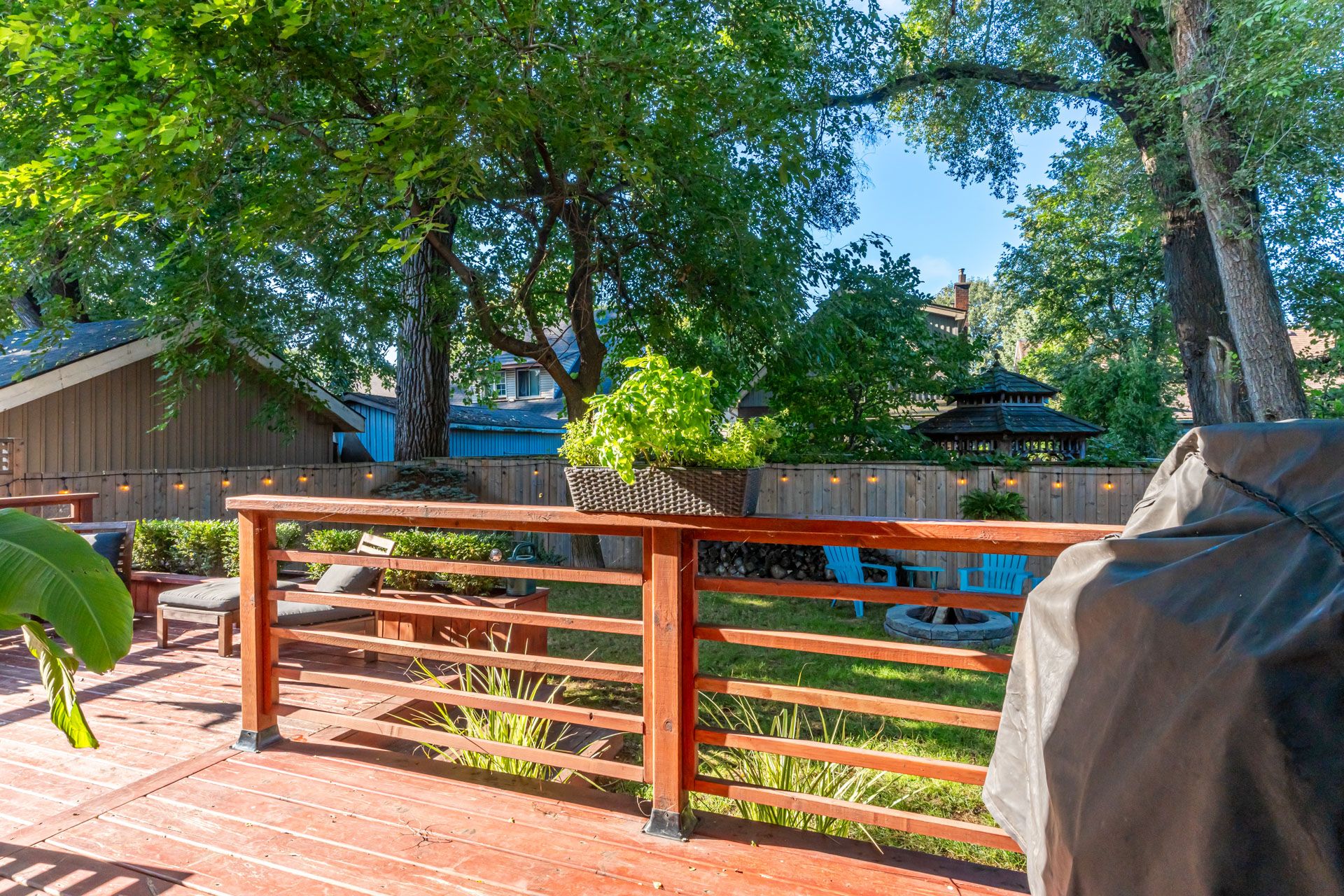 • Fully fenced backyard featuring a new two-tiered deck for outdoor enjoyment.