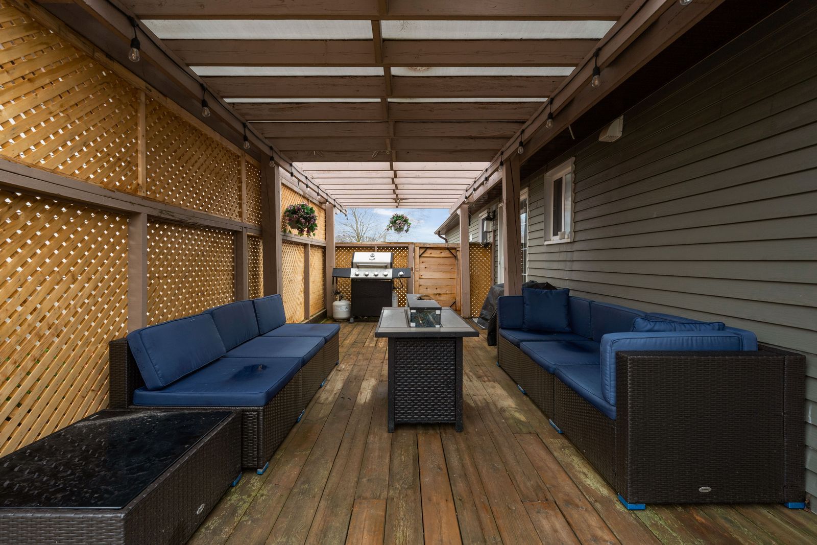 • Large backyard with a deck, pergola, and shed for summer gatherings.