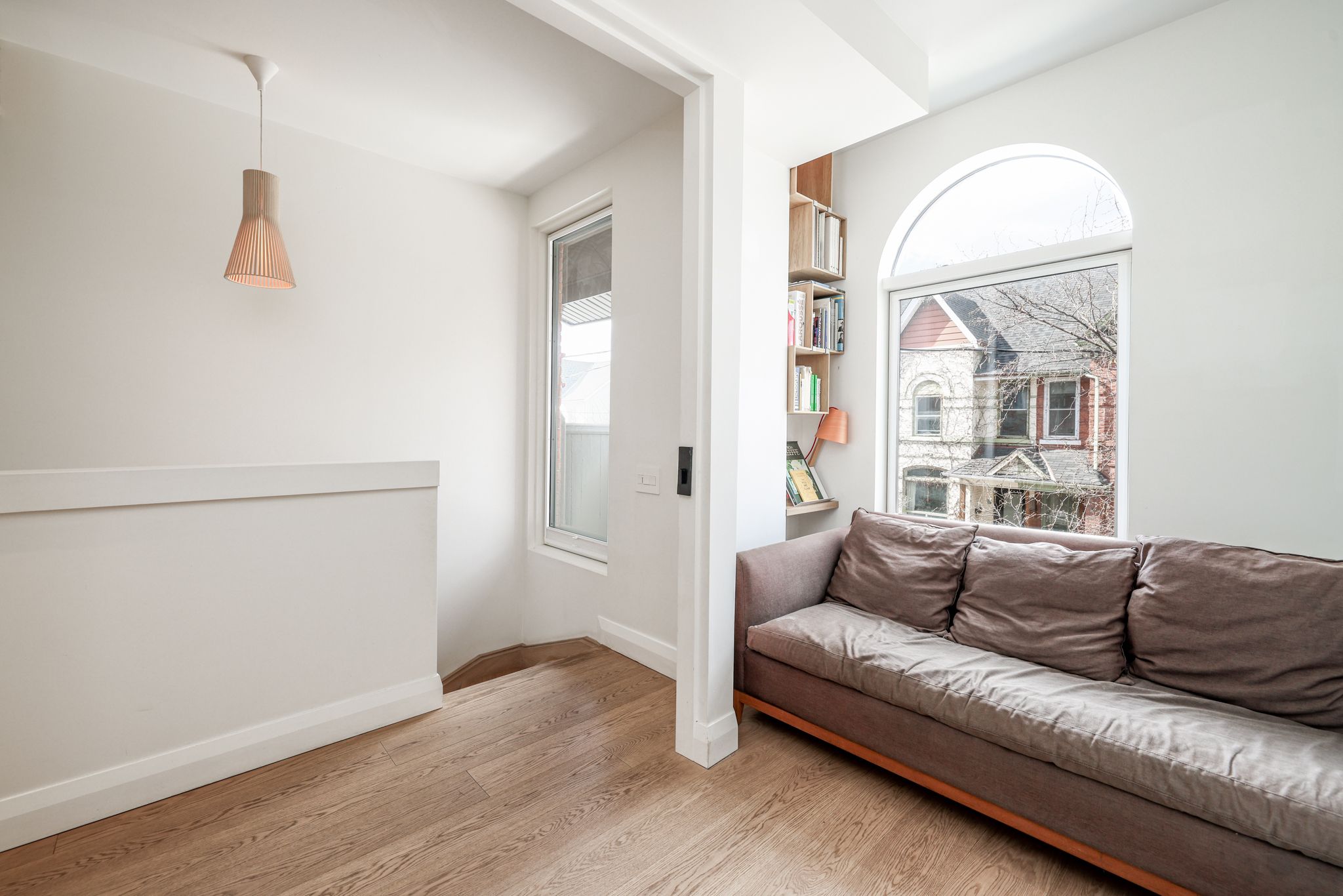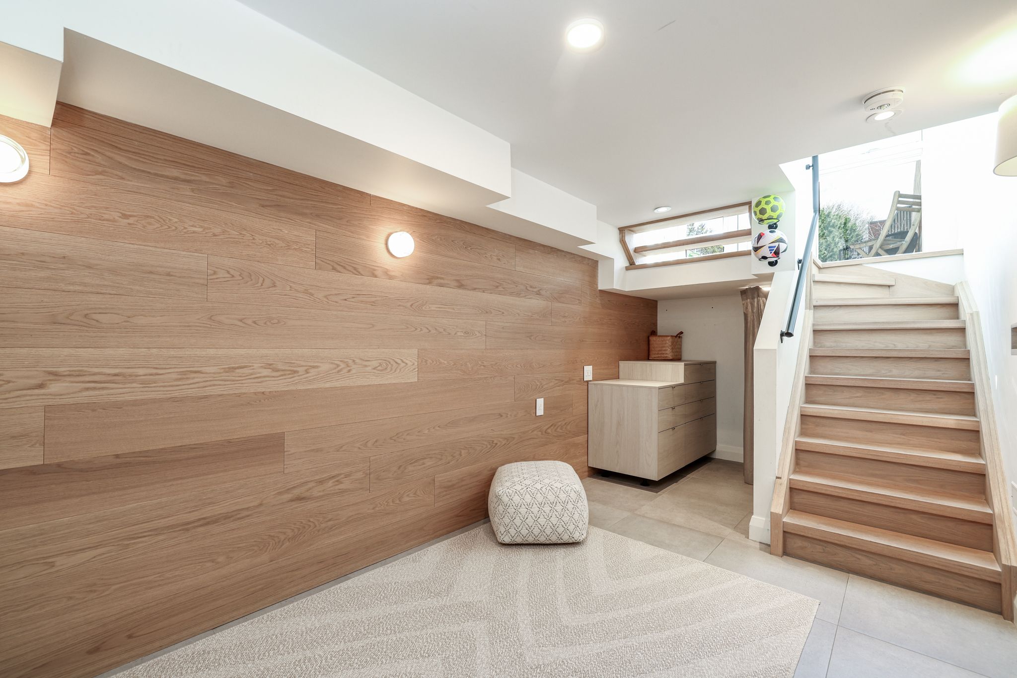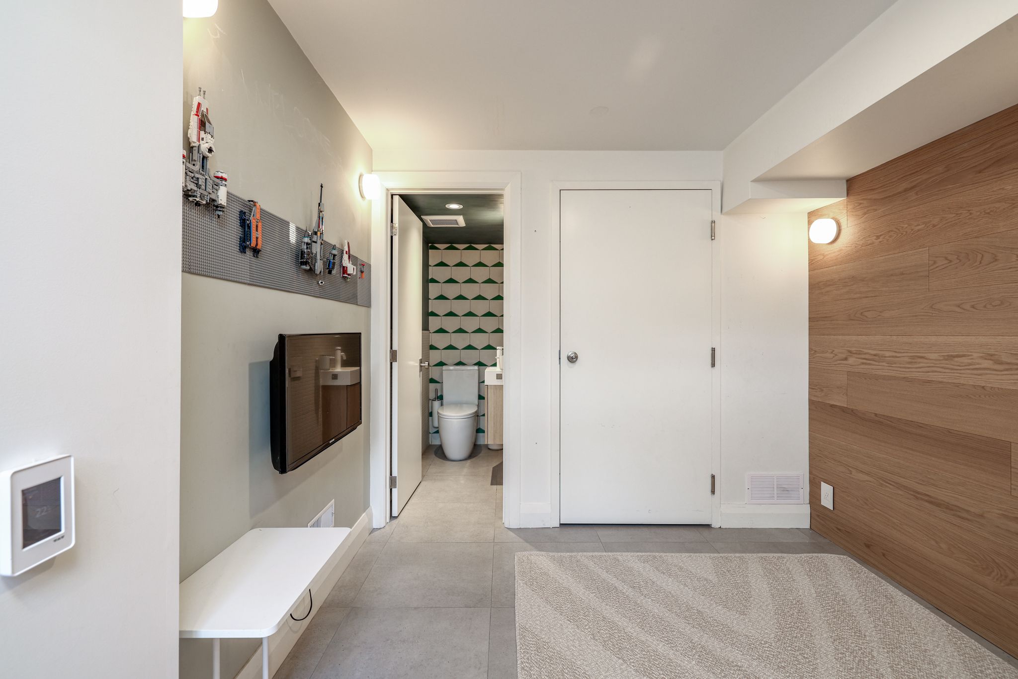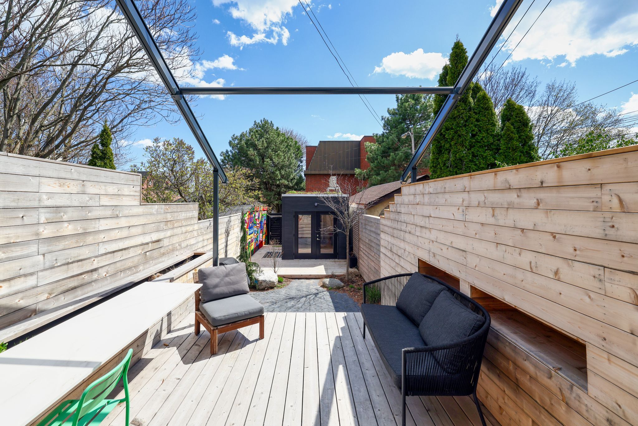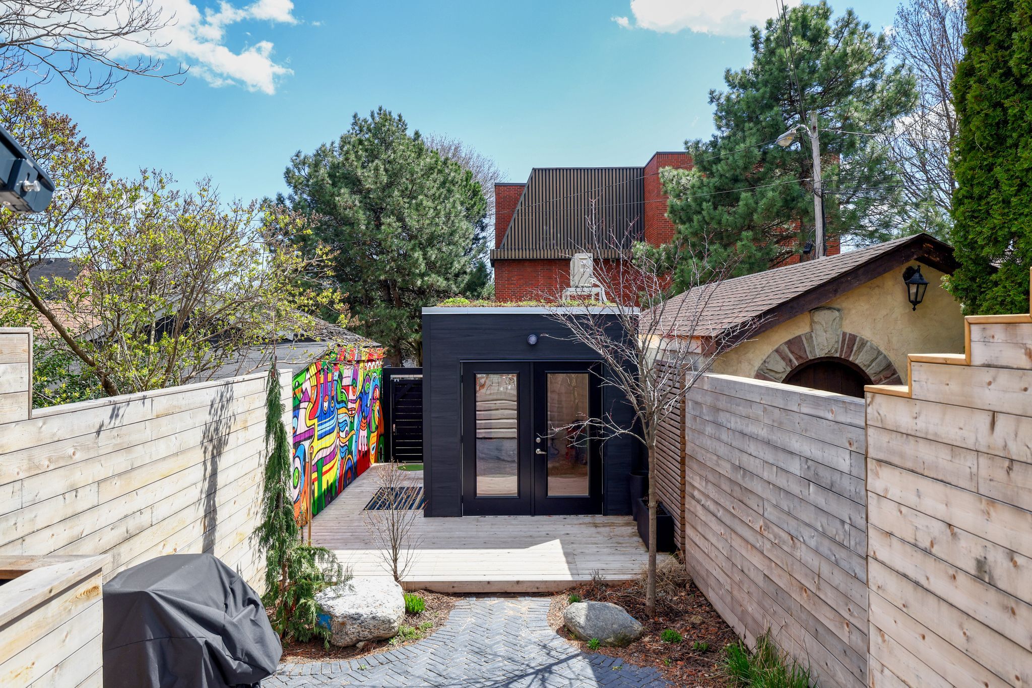 Architect-owner's exceptional four-bedroom home in the heart of beaconsfield village, offering beautifully curated living across four thoughtfully finished levels. Designed with remarkable scale and function, the home features 11-foot ceilings on the main floor, moncer hardwood flooring throughout, crisp contemporary finishes, soundproofed party walls, and extensive custom cabinetry and storage at every turn. A generous foyer with built-in bench seating and storage opens into elegant principal rooms designed for everyday living and entertaining. At the centre of the home, the custom kitchen impresses with dekton counters and island, premium built-in appliances including a wolf cooktop, miele warming drawer, fisher & paykel wall oven and steam oven, plus exceptional integrated storage. The light-filled living room is anchored by a wood-burning stove and features a projector with remote and powered screen, with seamless access to the beautifully finished exterior. Cedar decking and fencing create a warm and cohesive outdoor setting, complemented by a propane gas hookup for easy outdoor cooking. The second floor offers flexible family living with three bedrooms or a two-bedroom plus office layout, a stunning custom four-piece bath, and sliding doors by ital door. The third-floor primary retreat is a true sanctuary with custom cabinetry, spa-inspired ensuite, built-in saunaray infrared sauna, two skylights, solar tube, and walkout to a private rooftop deck with roughed in outdoor shower. A separate contained basement apartment offers excellent flexibility for a live-in nanny, extended family, or income potential. The main house basement features in-floor heating, while infrastructure upgrades include 1-inch water service, sewer backwater valves, sump pump, and ethernet drops throughout the main house. Heated outbuilding with ac and green roof provides ideal year-round space for a home office, gym, studio, or additional living area.
