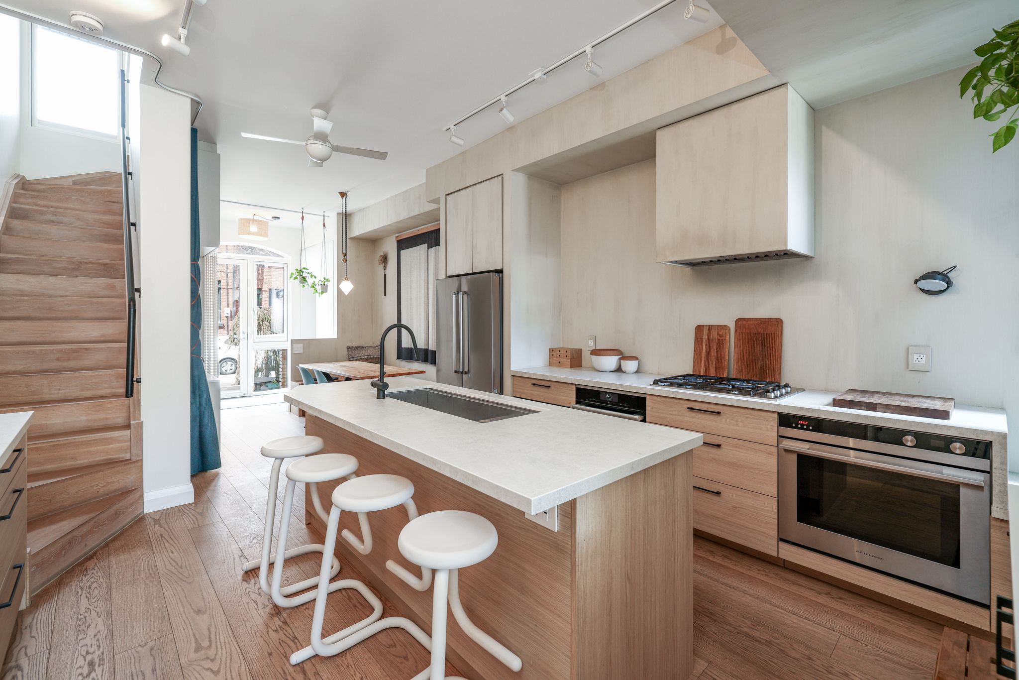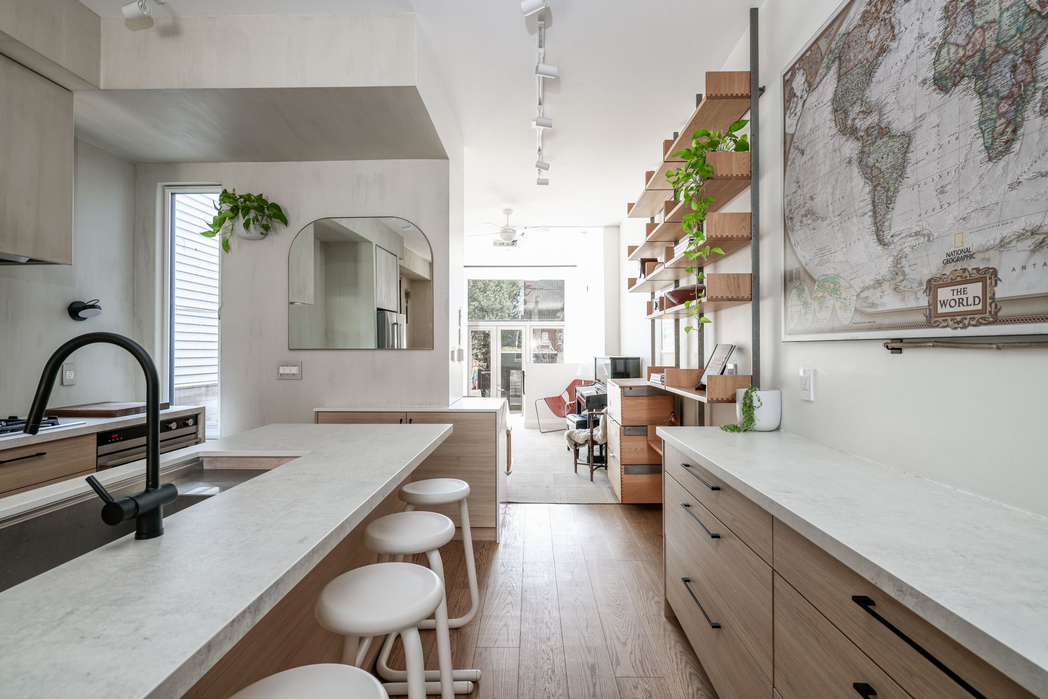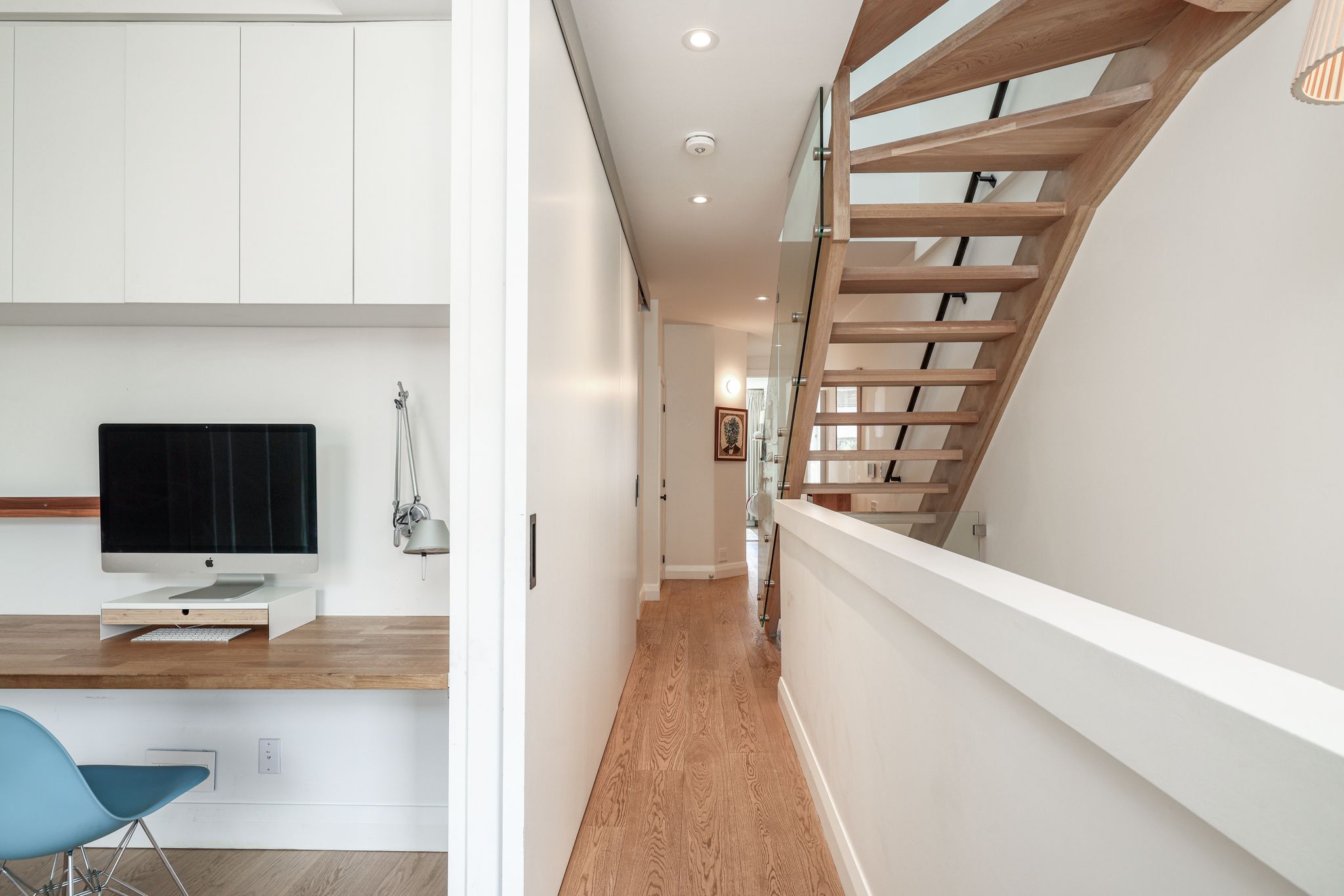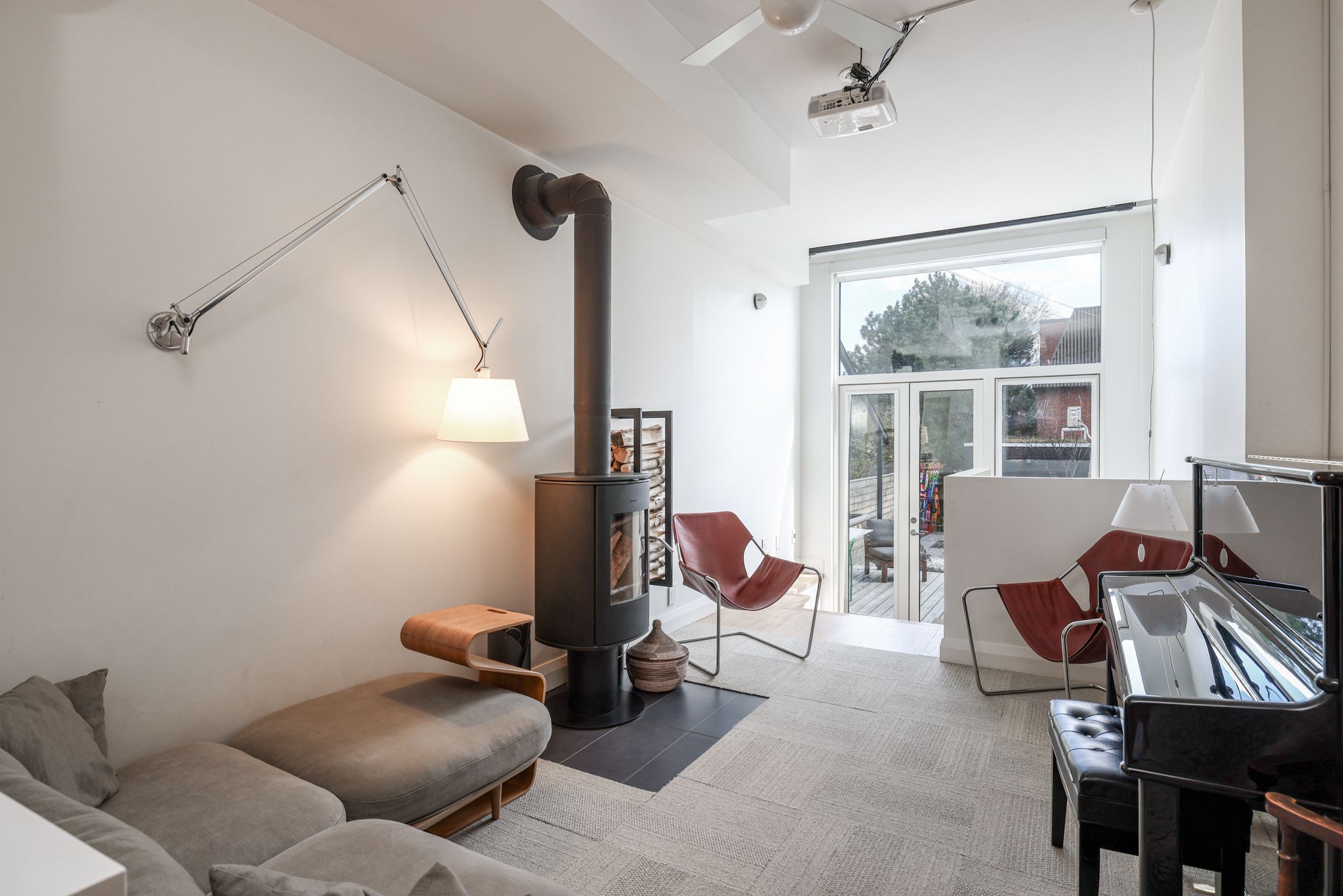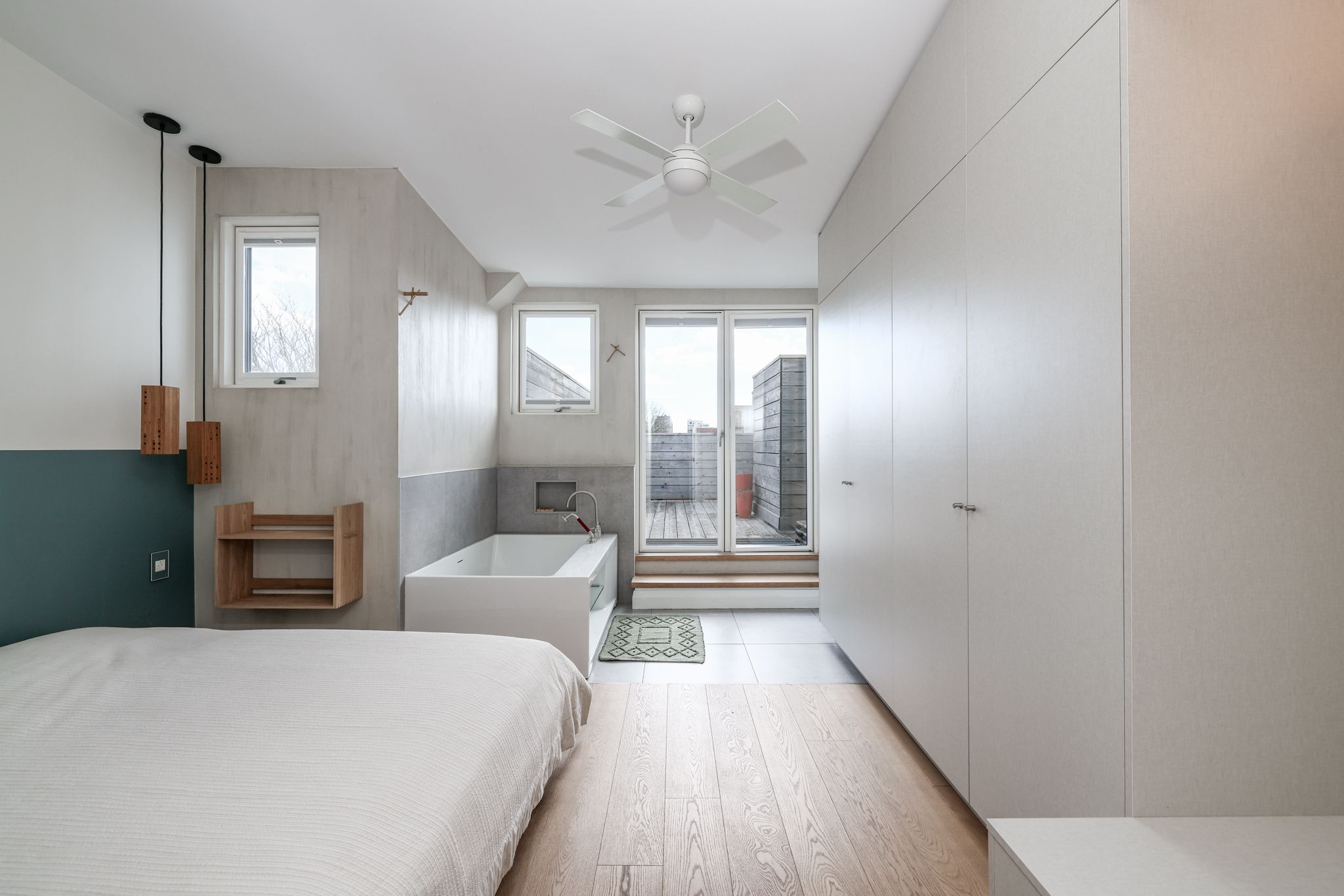 Architect-owner's exceptional four-bedroom home in the heart of beaconsfield village, offering beautifully curated living across four thoughtfully finished levels. Designed with remarkable scale and function, the home features 11-foot ceilings on the main floor, moncer hardwood flooring throughout, crisp contemporary finishes, soundproofed party walls, and extensive custom cabinetry and storage at every turn. A generous foyer with built-in bench seating and storage opens into elegant principal rooms designed for everyday living and entertaining. At the centre of the home, the custom kitchen impresses with dekton counters and island, premium built-in appliances including a wolf cooktop, miele warming drawer, fisher & paykel wall oven and steam oven, plus exceptional integrated storage. The light-filled living room is anchored by a wood-burning stove and features a projector with remote and powered screen, with seamless access to the beautifully finished exterior. Cedar decking and fencing create a warm and cohesive outdoor setting, complemented by a propane gas hookup for easy outdoor cooking. The second floor offers flexible family living with three bedrooms or a two-bedroom plus office layout, a stunning custom four-piece bath, and sliding doors by ital door. The third-floor primary retreat is a true sanctuary with custom cabinetry, spa-inspired ensuite, built-in saunaray infrared sauna, two skylights, solar tube, and walkout to a private rooftop deck with roughed in outdoor shower. A separate contained basement apartment offers excellent flexibility for a live-in nanny, extended family, or income potential. The main house basement features in-floor heating, while infrastructure upgrades include 1-inch water service, sewer backwater valves, sump pump, and ethernet drops throughout the main house. Heated outbuilding with ac and green roof provides ideal year-round space for a home office, gym, studio, or additional living area.