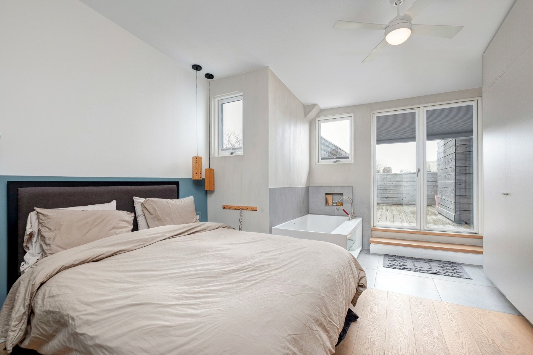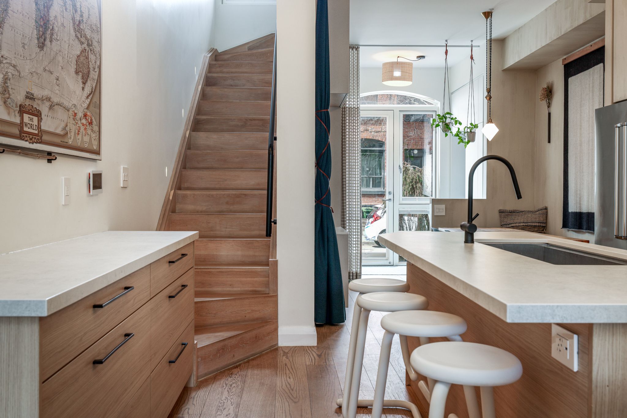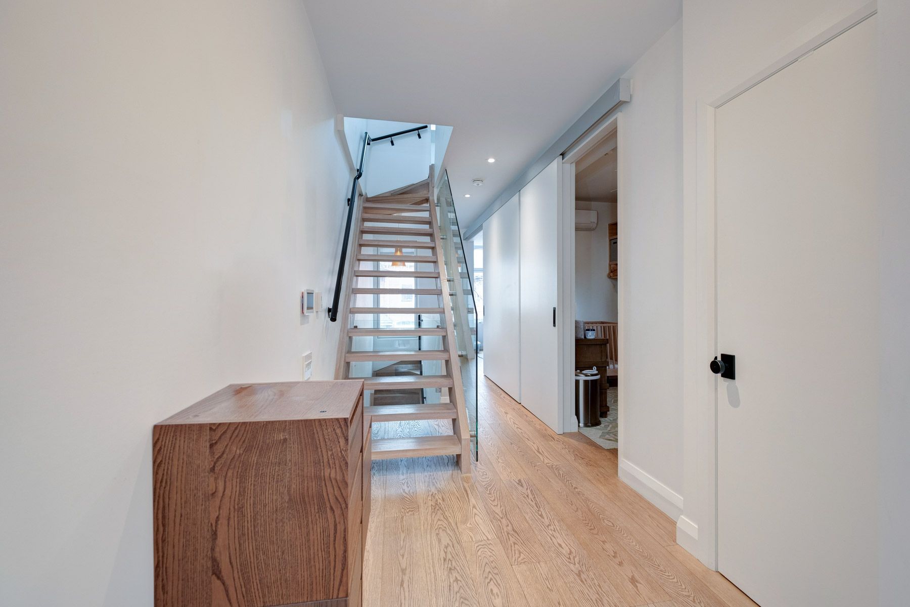 Architect-owner's exceptional four-bedroom home in the heart of beaconsfield village, offering beautifully curated living across four thoughtfully finished levels. Designed with remarkable scale and function, the home features 11-foot ceilings on the main floor, moncer hardwood flooring throughout, crisp contemporary finishes, soundproofed party walls, and extensive custom cabinetry and storage at every turn. A generous foyer with built-in bench seating and storage opens into elegant principal rooms designed for everyday living and entertaining. At the centre of the home, the custom kitchen impresses with dekton counters and island, premium built-in appliances including a wolf cooktop, miele warming drawer, fisher & paykel wall oven and steam oven, plus exceptional integrated storage. The light-filled living room is anchored by a wood-burning stove and features a projector with remote and powered screen, with seamless access to the beautifully finished exterior. Cedar decking and fencing create a warm and cohesive outdoor setting, complemented by a propane gas hookup for easy outdoor cooking. The second floor offers flexible family living with three bedrooms or a two-bedroom plus office layout, a stunning custom four-piece bath, and sliding doors by ital door. The third-floor primary retreat is a true sanctuary with custom cabinetry, spa-inspired ensuite, built-in saunaray infrared sauna, two skylights, solar tube, and walkout to a private rooftop deck with roughed in outdoor shower. A separate contained basement apartment offers excellent flexibility for a live-in nanny, extended family, or income potential. The main house basement features in-floor heating, while infrastructure upgrades include 1-inch water service, sewer backwater valves, sump pump, and ethernet drops throughout the main house. Heated outbuilding with ac and green roof provides ideal year-round space for a home office, gym, studio, or additional living area.