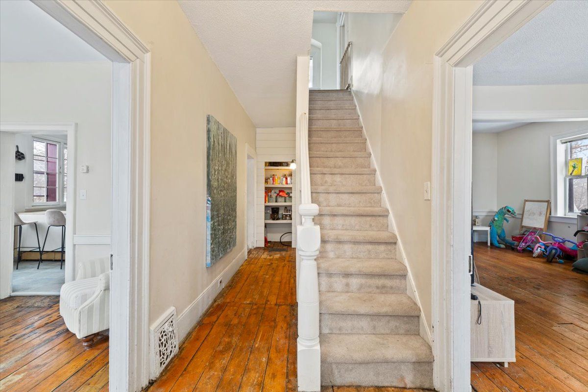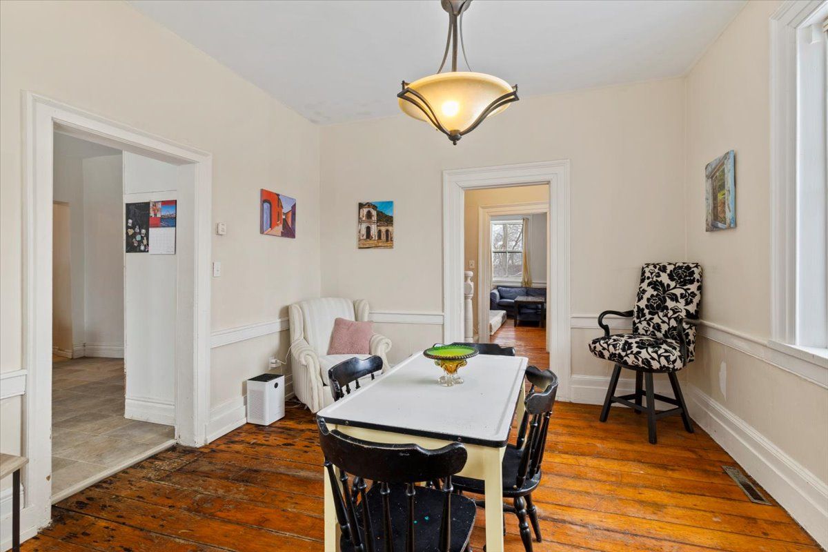 The oscar phillips house is one of those homes people already feel connected to before they ever step inside. Sitting proudly at the top of the hill, it has a presence that quietly stands out and draws you in. Built in 1904, this 3-bedroom, 2-bath home is filled with original character that you simply cannot recreate. The original wood floors and trim bring warmth and authenticity, while the windows throughout the home flood the space with natural light. The tall ceilings in the original section of the main floor make each room feel open, bright, and far more spacious than you would expect from a home of this era. The living room is oversized and full of flexibility. It could remain a generous gathering space, or be reimagined to create a main floor fourth bedroom, home office, den, or toy room while still maintaining a comfortable living area. This kind of layout adaptability is rare and adds so much value for growing or changing households. Upstairs, the large four-piece bathroom is a standout. Its size allows for a complete redesign, with room fora walk-in shower and a standalone soaker tub, turning it into a true spa-style space if that is your vision. The back addition adds everyday practicality to the charm. A spacious mudroom entrance opens directly into the family room, creating a natural hub for daily life. The main floor three-piece bathroom is perfectly placed for convenience, especially for families or guests. Under the addition, a large storage room provides something older homes often lack: dedicated and functional storage space. This home offers the best of both worlds. Historic character paired with thoughtful spaces and endless potential. Whether your plans are gradual updates or a full transformation, the foundation is here to create something truly special. *note: the driveway access is off of peter street.