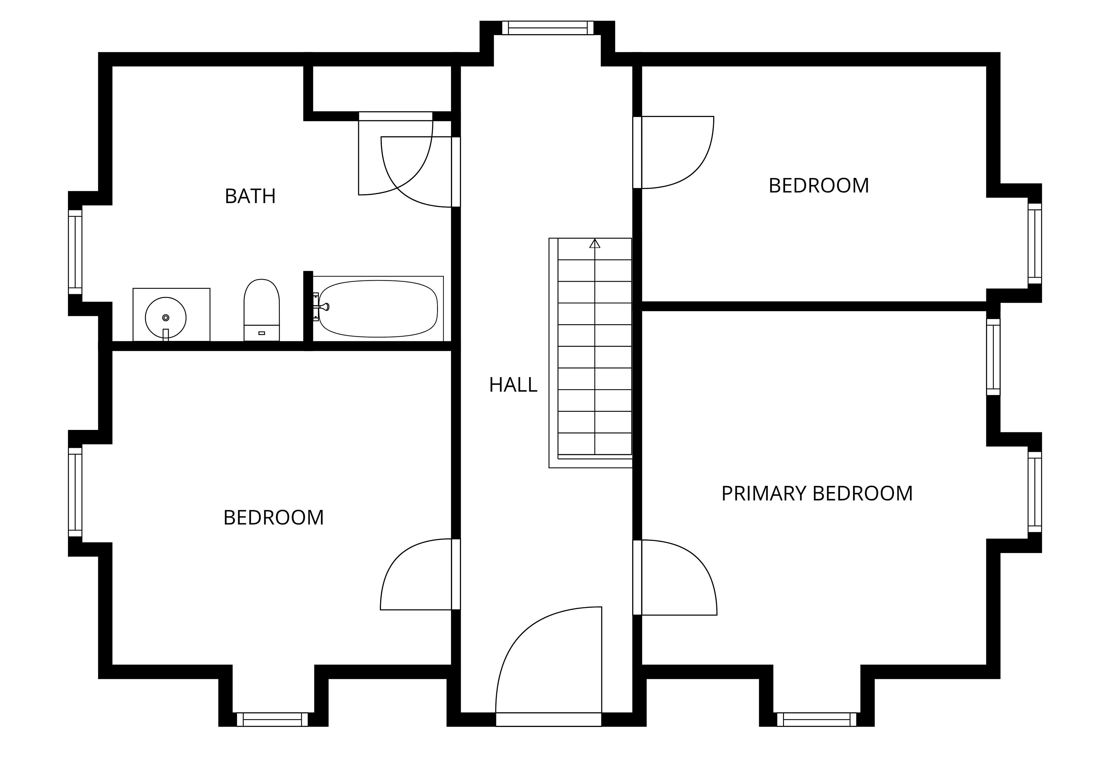 • Large upstairs bathroom offers potential for spa-style redesign.