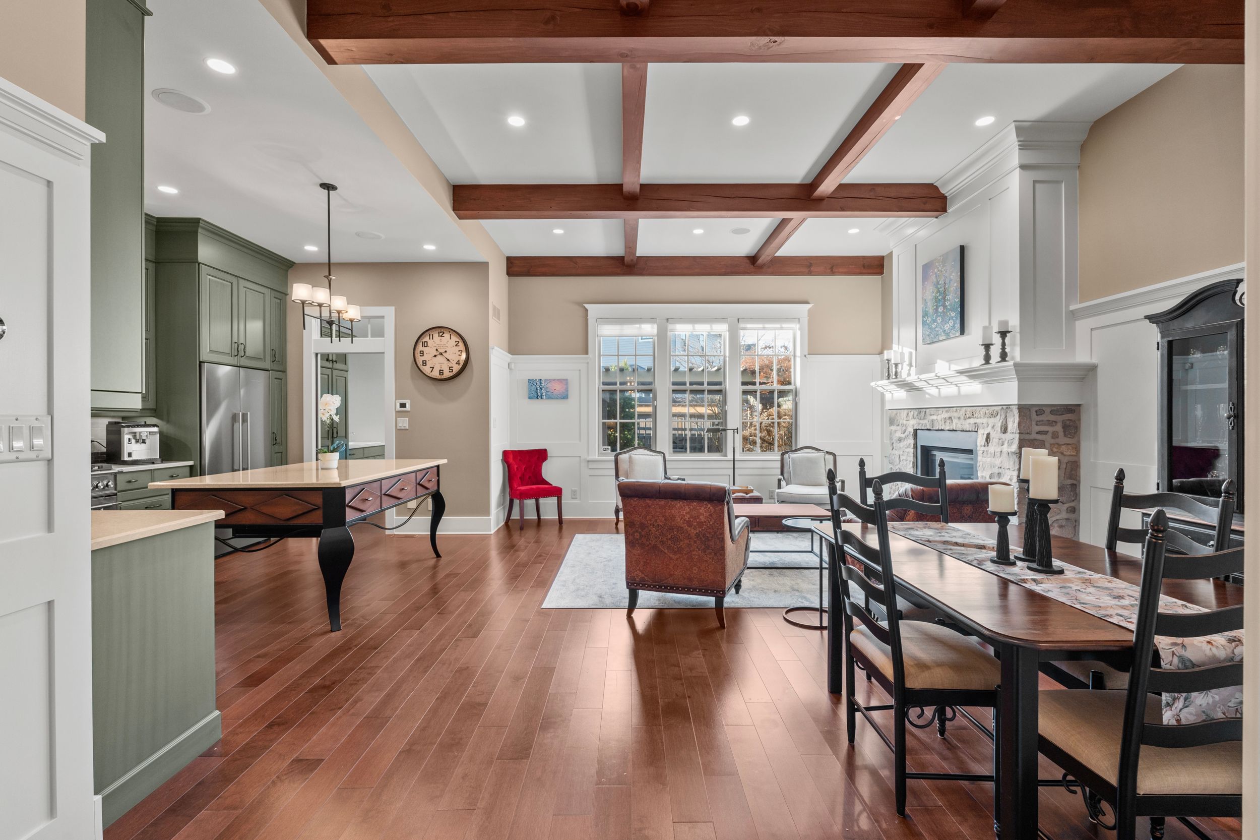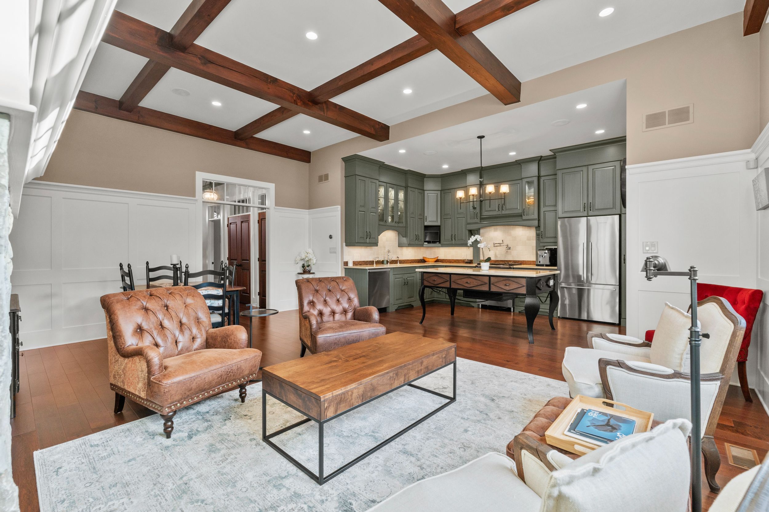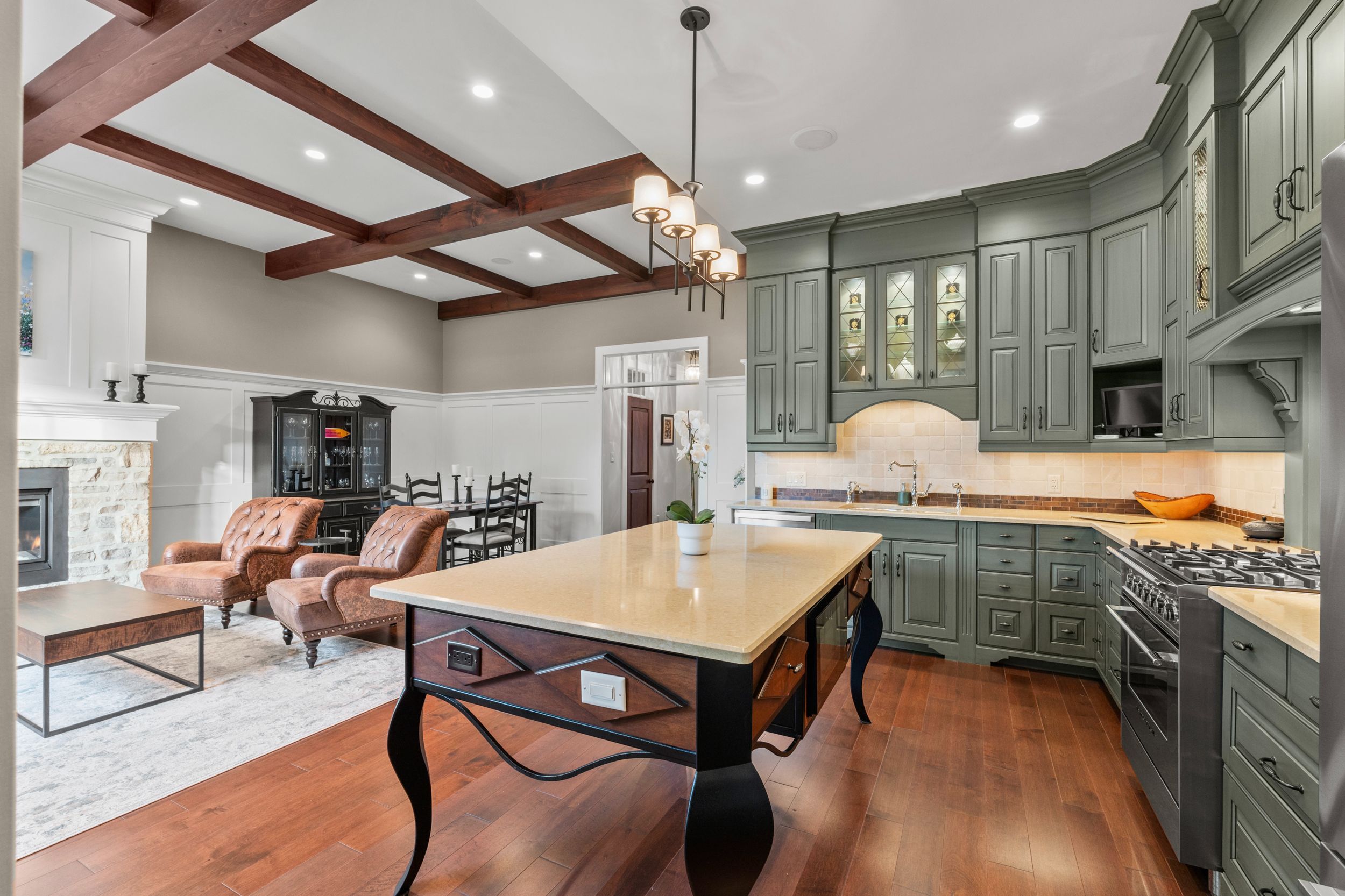 • Open-concept living area with upgraded kitchen and high ceilings.