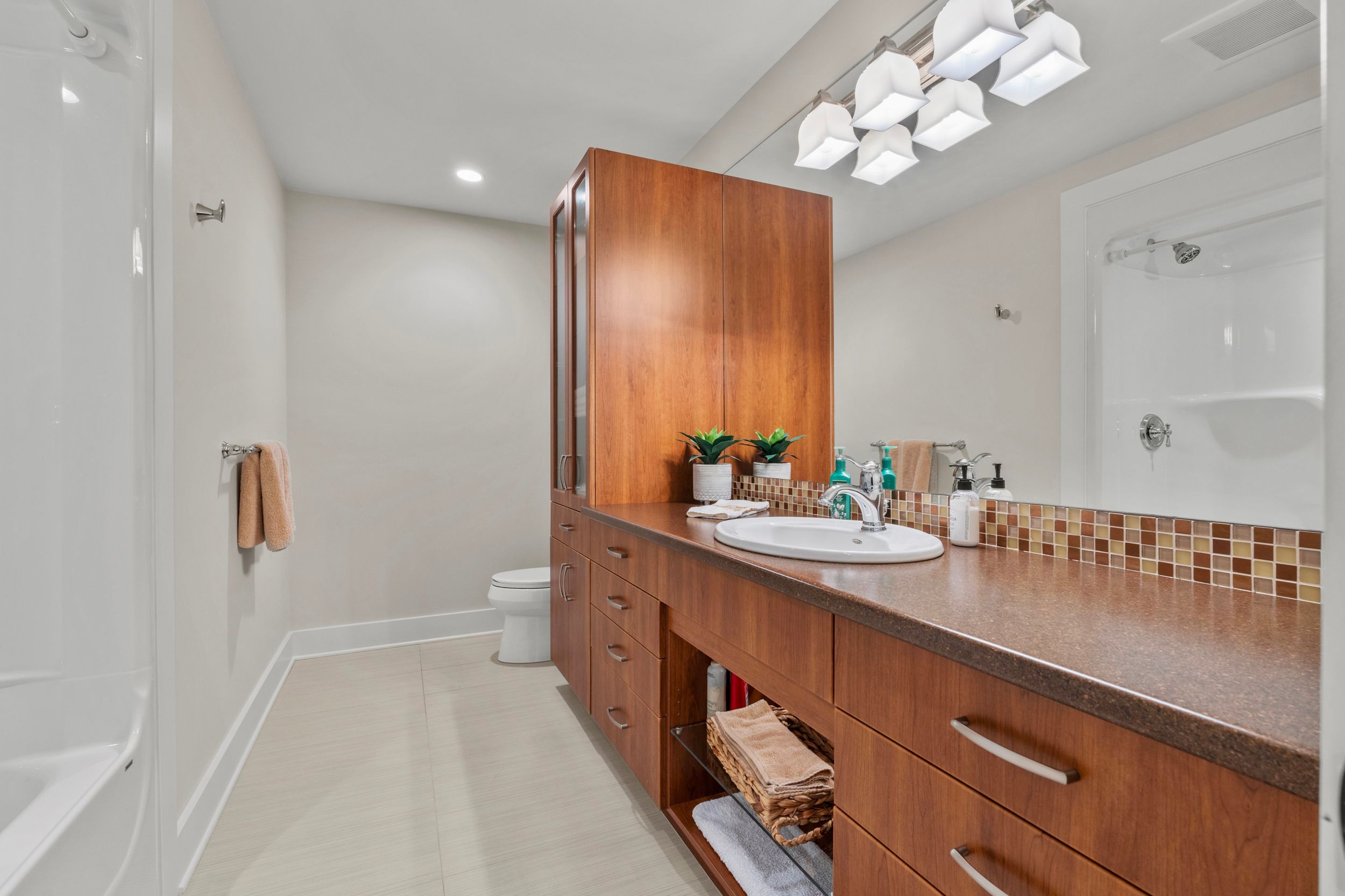 • Finished lower level with in-floor heating and flexible living space.