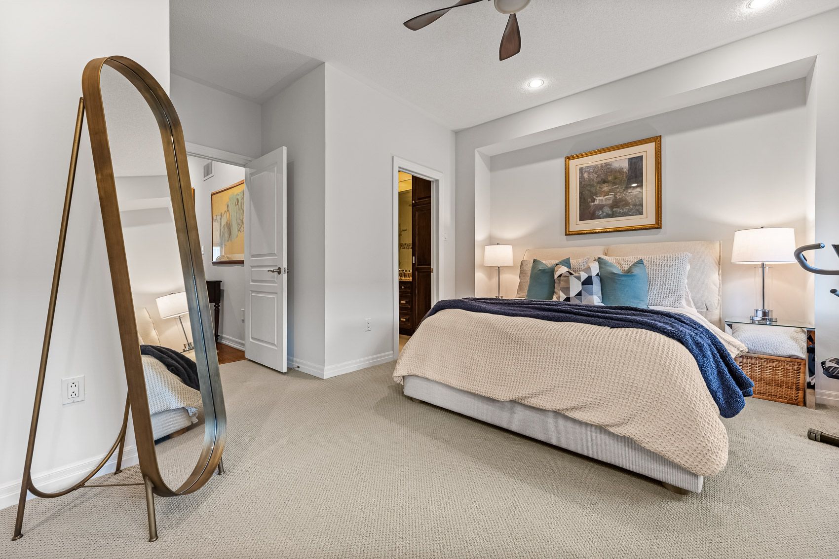What a fantastic unit that can work well for those downsizing, first-time home buyers or those upsizing from a condo! As soon as you enter, you feel a sense of calmness. There is no end to the conveniences - grab a coffee and walk along the lake all year round, stroll downtown port credit to shop or dine, follow the bike paths down to the city or sit back and enjoy the coziness at home! There are 2 sizable bedrooms on the upper level - each with full ensuite bathrooms (primary has wall to wall built-ins and a walk-in closet). The main level offers an eat-in kitchen with centre island, an abundance of counter space and storage that opens up to the living and dining room making the space great for entertaining. Walk out to the deck from the kitchen and enjoy additional outdoor living space with 2 gas hook-ups for both a bbq and/or fire table. The ground level has an additional room with a full bathroom and storage (can be used as a bedroom/guest room, exercise room, at-home office, an additional entertainment space or combine all uses into one!), a mudroom with direct access to the 2-car garage and 2-car outdoor parking. Maintenance fees cover all exterior items (deck, roof, windows, eaves, landscaping, snow removal of public areas). A must see!