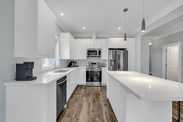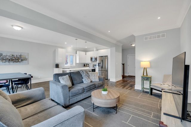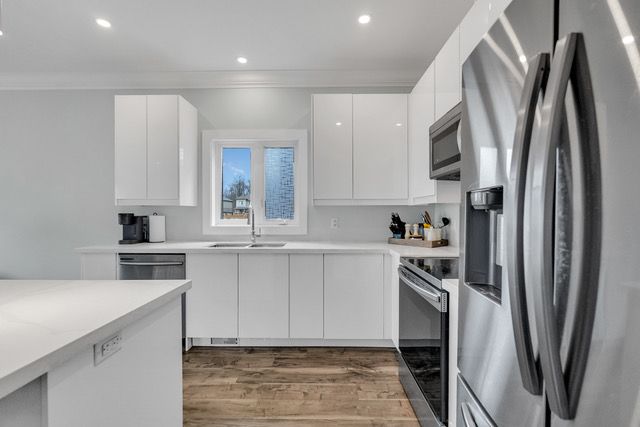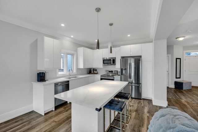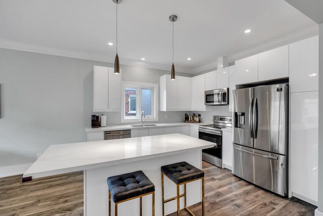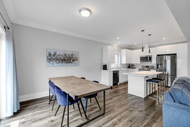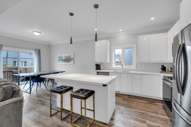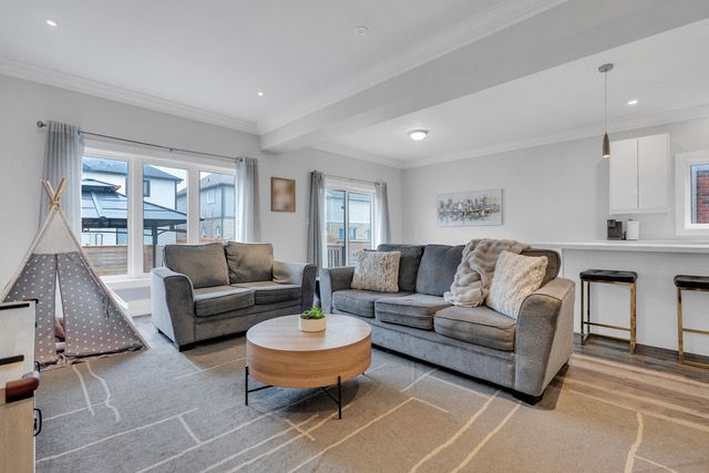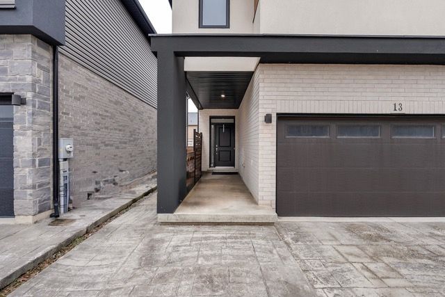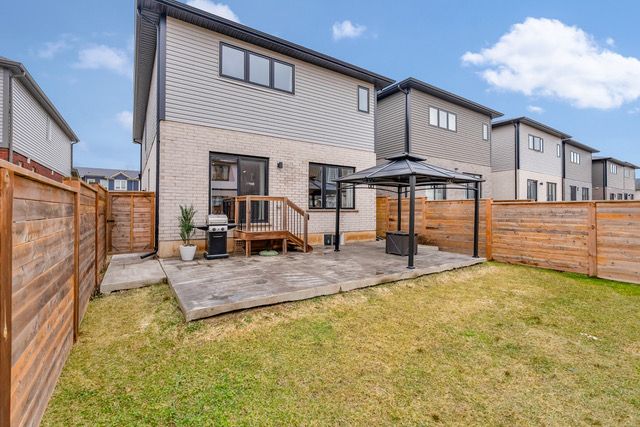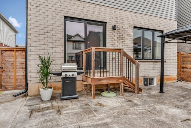 Step into style and sophistication in this stunning sun-filled custom built detached home, nestled in one of thorold's most desirable neighborhoods. Offering over 2,000 sq. Ft. Of beautifully designed living space, this home blends modern luxury with everyday comfort. Boasting 3 massive bedrooms (geowarehouse lists 4, highlighting their incredible size) and 3 bathrooms, every inch of this home is thoughtfully designed. Soaring ceilings, oversized doors, crown moulding in the living area, and an open-concept layout create an airy, upscale feel throughout. The chef-inspired kitchen, complete with quartz countertops, sleek flat-front cabinetry, stainless steel appliances, and a large eat-in island flows seamlessly into the dining area with a sliding door to the backyard. Upstairs, enjoy the convenience of a walk-in laundry room, while each bedroom impresses with its own very large walk-in closet, offering exceptional storage and functionality. A beautiful oak and spindle staircase connects the floors, adding timeless architectural charm. The unspoiled basement with separate entrance and high ceilings presents incredible potential-finish to suit your lifestyle. Step outside to a fully fenced backyard oasis, complete with a patio space perfect for relaxing or entertaining in total privacy. The stamped concrete driveway wrapping around both sides of the home creates standout curb appeal you won't forget. Enjoy added peace of mind with established neighbouring homes on both sides - no nearby construction to distrupt your daily living. This is more than just a home - it's a lifestyle upgrade.
