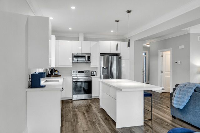 • Chef-inspired kitchen features modern finishes and a large eat-in island.