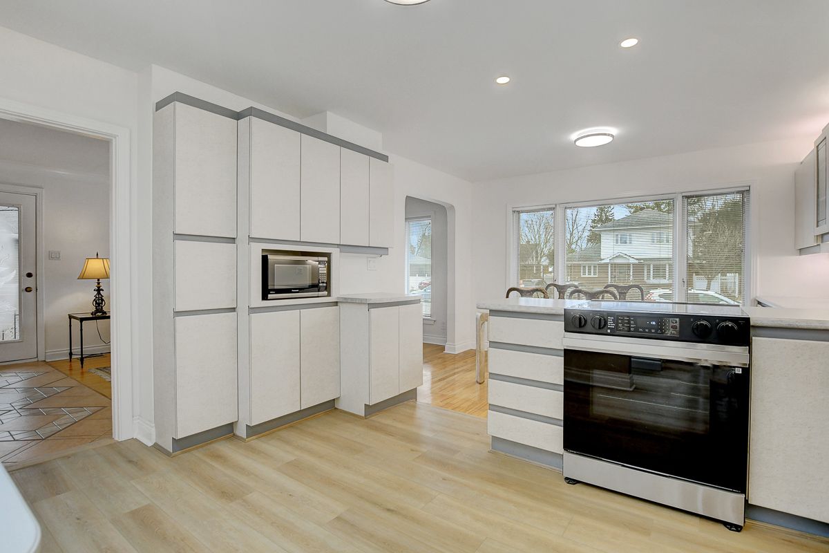 First time on offer! Fantastic opportunity to purchase a 4bed/2bath updated bungalow on a family-friendly, desirable street in cardinal heights. Situated on an extra deep 60'x 180' lot, perfect for your gardening pleasure. Detached double-garage with workshop provides additional space; a must for the hobbyist. The home features hardwood floors throughout the living room, dining area, hallway and both main level bedrooms. Loads of natural light permeates through the home. Kitchen has plenty of cabinetry, peninsula island with stove, pot lights and skylight; new luxury vinyl plank (lvp) flooring. Addition off the kitchen offers a den/sitting area and access to the rear yard. Main bathroom with heated floors; renovated for a modern look. Extra-large primary bedroom with good closet space, and a second bedroom completes the main level. Staircase completely redone. Basement has been fully renovated including lvp flooring, pot lights, new drywall ceiling. Features large rec room with cozy gas fireplace, additional den area, two additional bedrooms, and 3pc bathroom. Plenty of storage in the utility/laundry room (new window and new sump pump). Additional storage underneath the addition. Large backyard with deck and patio. Lots of green space including shed and enclosed gardening gazebo-style space. This home will not disappoint. Updates throughout include electrical retrofit including all plugs/switches, and light fixtures (esa certificate on file). All new trim/baseboards, interior doors + hardware. Freshly painted. Furnace and fp recently serviced. Close to all amenities including shopping - shoppers city east (costco), transit (blair lrt station). Easy access to highway 174. Minutes to csis/csec. The home awaits its next potential generational owner. Call today!