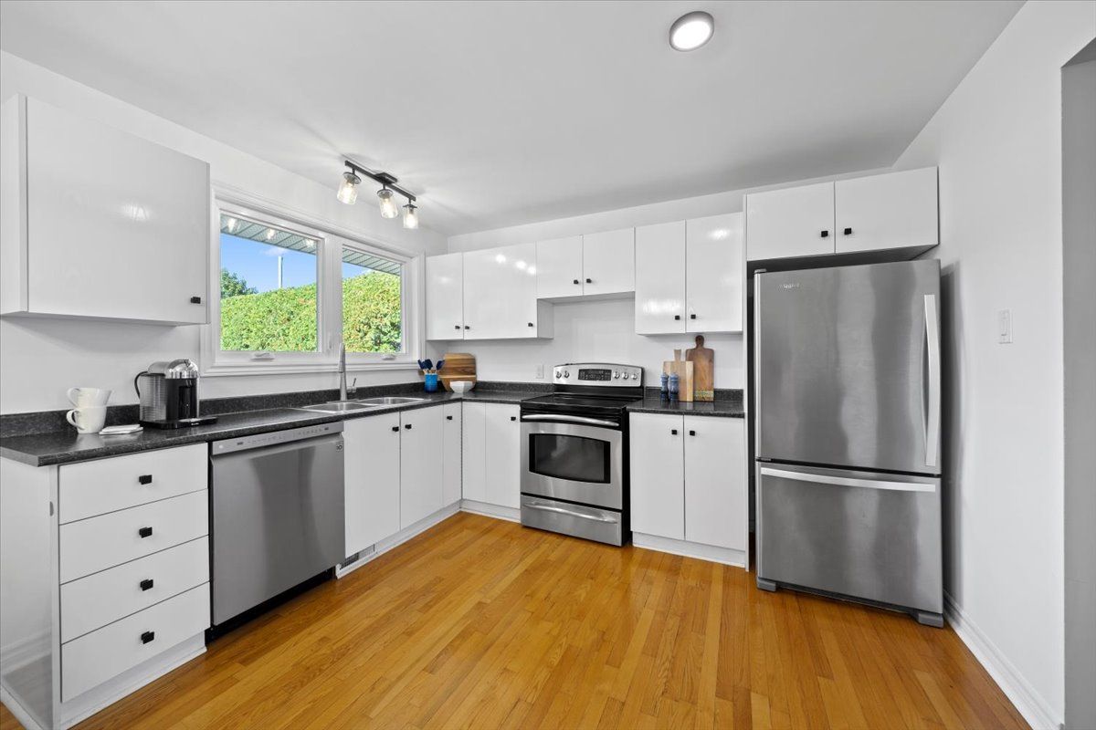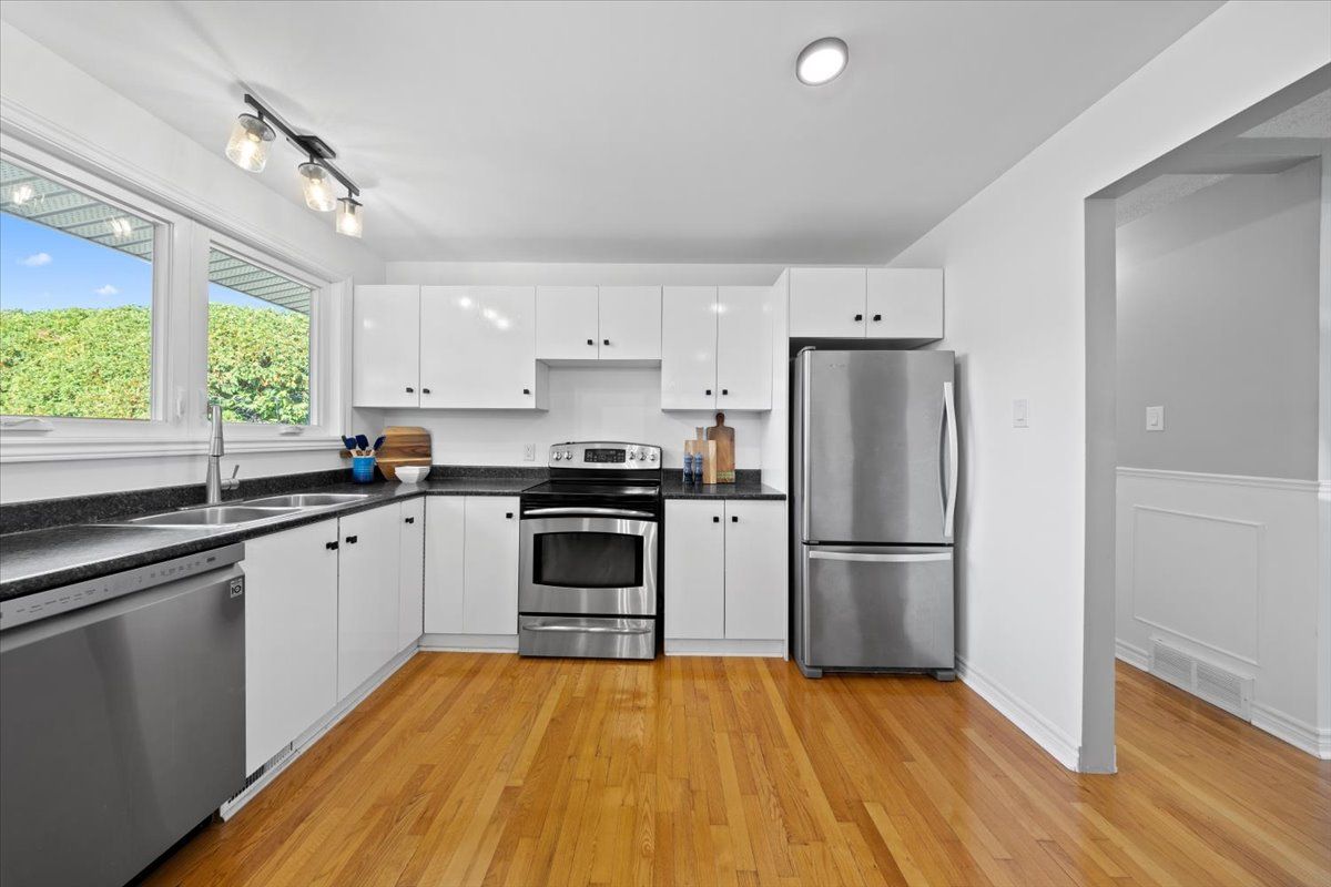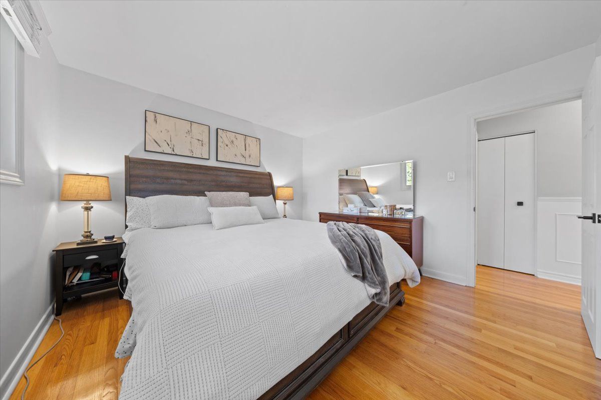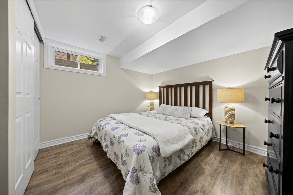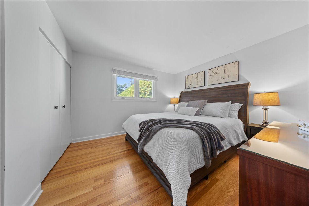 Discover an exceptional opportunity to own a beautifully updated bungalow perfectly positioned on a quiet cul-de-sac in the heart of lynwood. Set upon a rare, pie-shaped lot enveloped by mature trees and lush hedges, this home offers an uncommon level of privacy and tranquility. Rich hardwood floors flow seamlessly throughout the main level, guiding you through a sunlit layout defined by large windows and a formal dining room. The thoughtfully expanded kitchen (2005) features an inviting eat-in area, ideal for both casual mornings and elegant entertaining. Just beyond, a delightful three-season sunroom overlooks the serene, landscaped backyard-offering a peaceful retreat to enjoy year-round. The main floor hosts two generously proportioned bedrooms and a full bath, while the fully finished lower level (2017) presents a spacious recreation room, a third bedroom, a modern full bath, and a convenient laundry area. Every detail has been carefully considered, with contemporary finishes enhancing the comfort and functionality of the space. Outside, the oversized backyard is a private oasis, spanning approximately 91 x 149 feet and bordered by mature greenery. A double-car garage that's oversized and numerous upgrades-including a roof (fall 2023), windows (2015-2016), and furnace (fall 2024) - provide peace of mind and timeless appeal. Situated moments from parks, schools, the public library, shopping, recreation, and with quick access to the dnd, highways, and transportation, this residence is as conveniently located as it is captivating. A truly rare offering, this home invites you to experience sophisticated living in a setting of serene privacy.