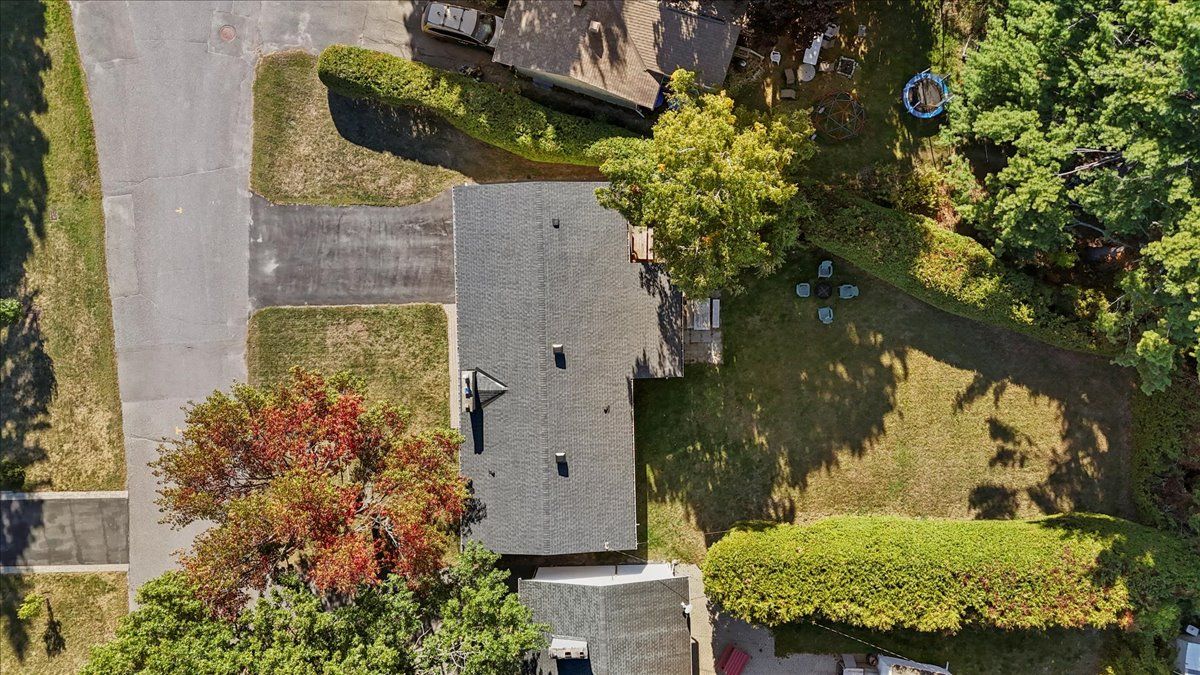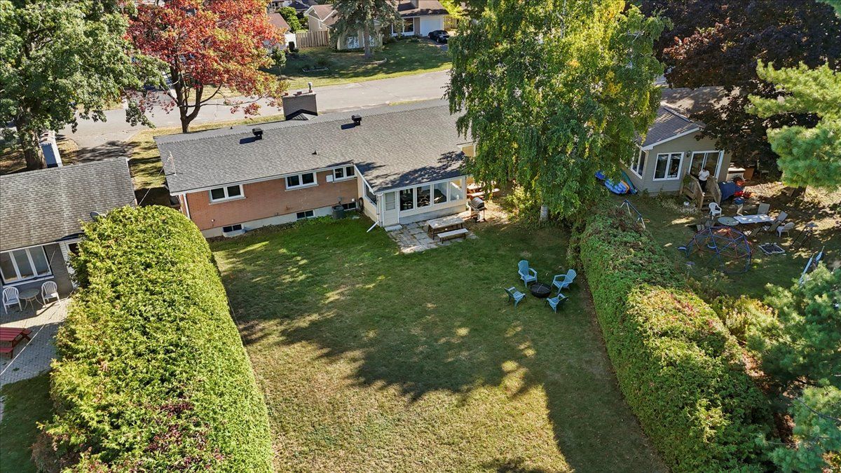 • Rare pie-shaped lot with privacy from mature trees and hedges.