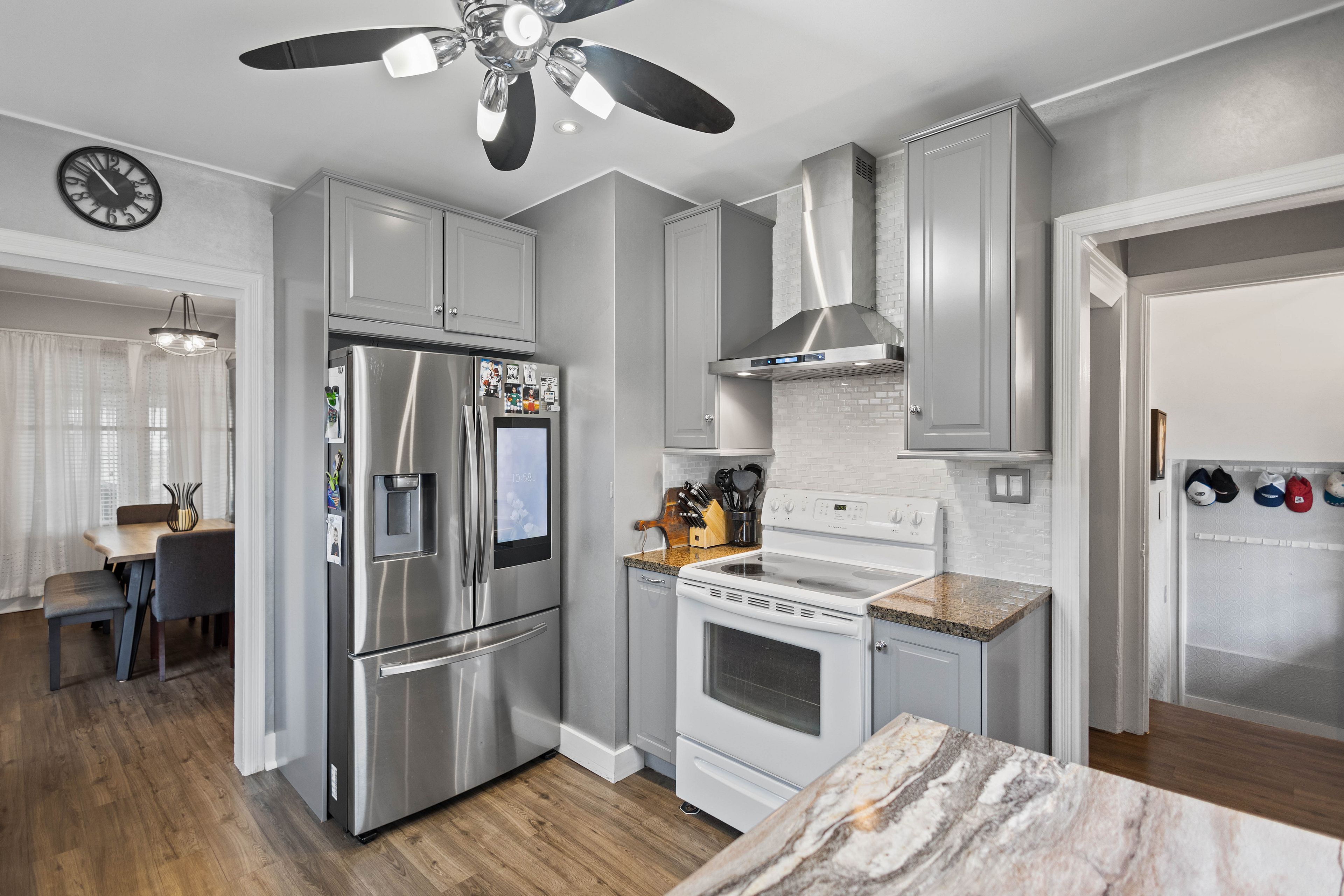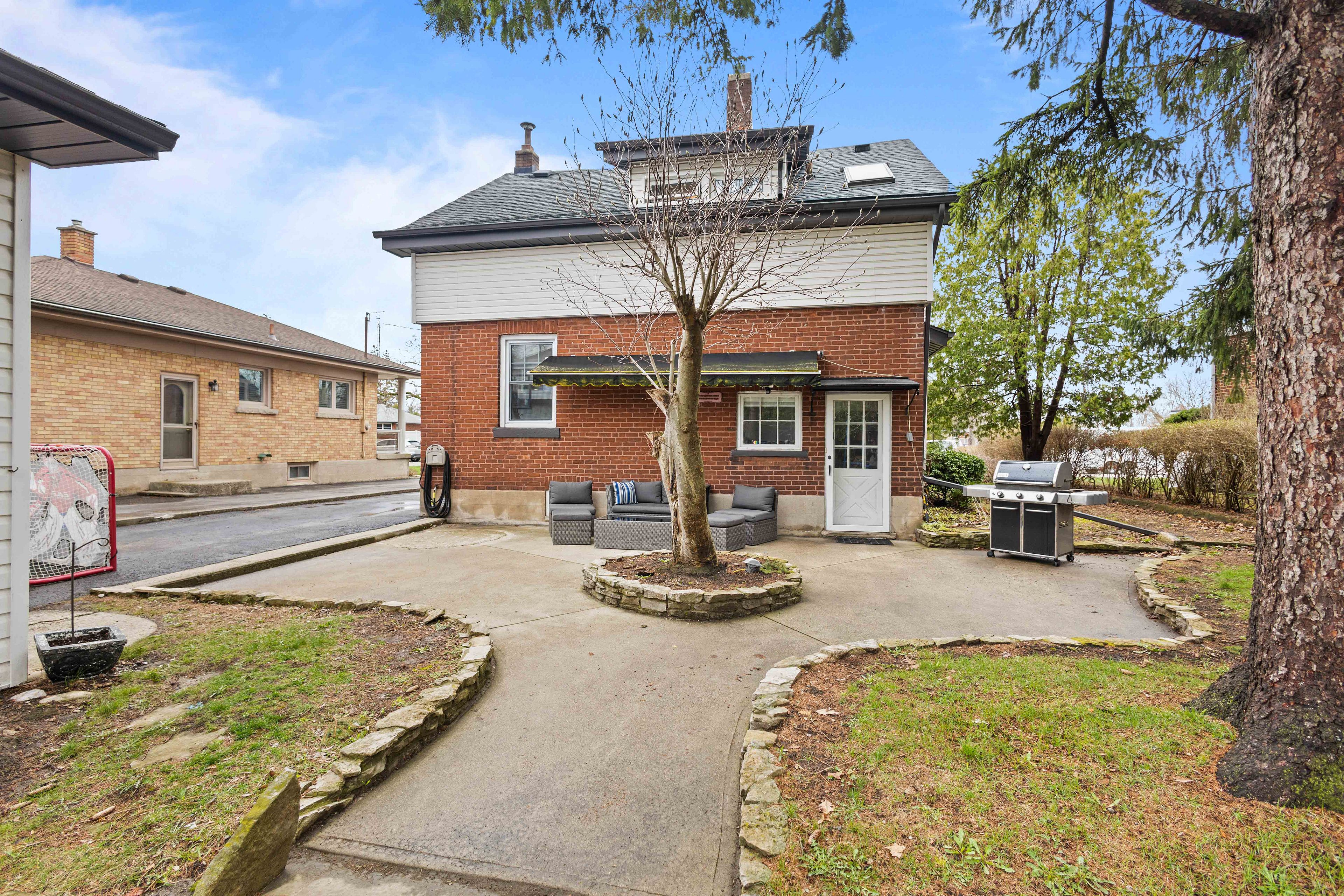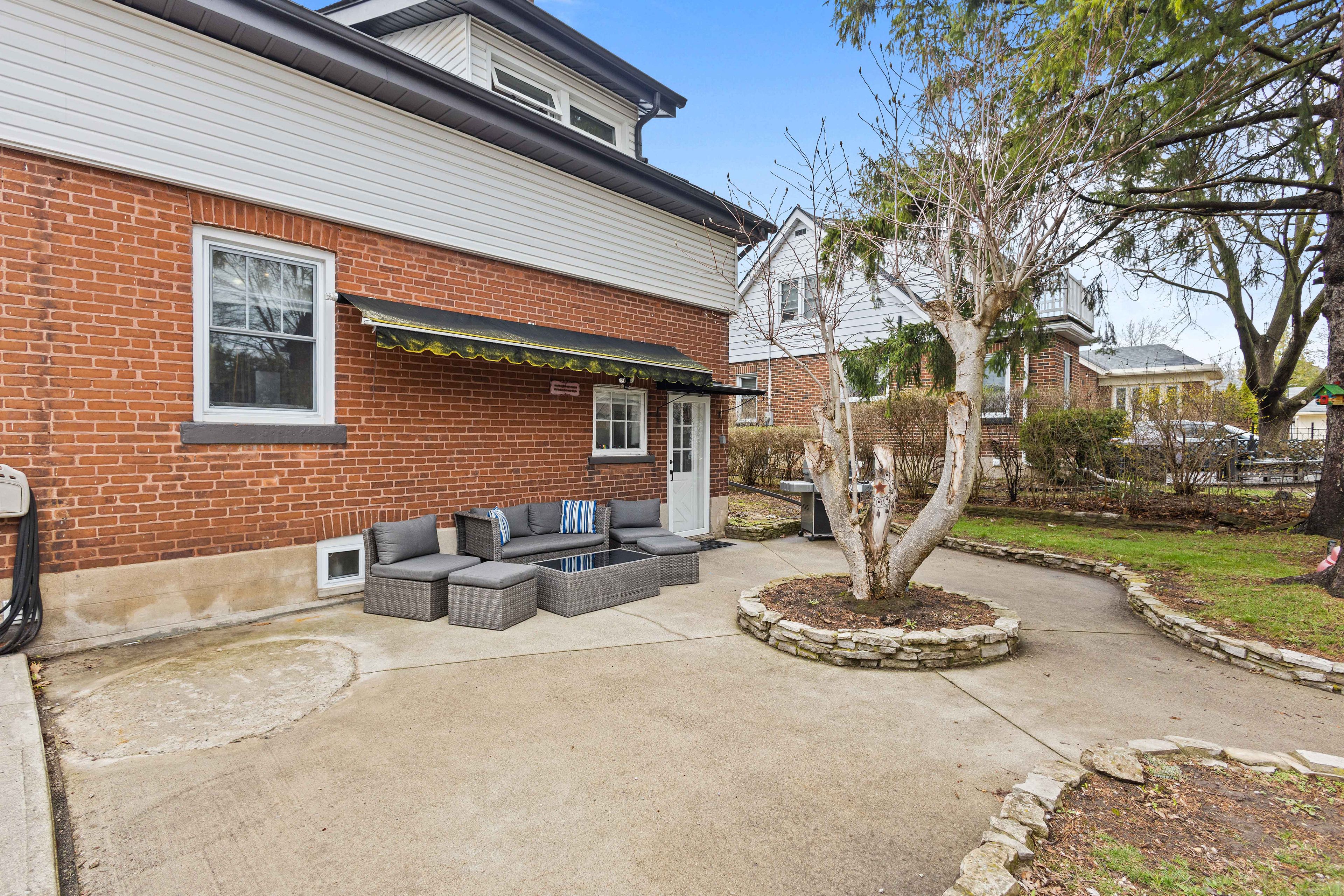 Welcome to this well-maintained 1. 5-storey home situated on a 50 x 129. 38 ft lot in a desirable brantford neighbourhood. Bright and functional layout features a spacious living room with a gas fireplace, a kitchen with stainless steel appliances, and a separate dining area. Upper level offers comfortable bedrooms, while the fully finished basement provides additional living space and lower-level laundry. Enjoy the private backyard with a concrete patio and awning, ideal for outdoor entertaining. Detached garage and ample driveway parking. Key updates include the roof (approx. 8 years old) and front room windows (2021). Conveniently located close to schools, shopping, and amenities, with easy highway access. Just minutes to mohawk park offering trails, green space, and family-friendly recreation.