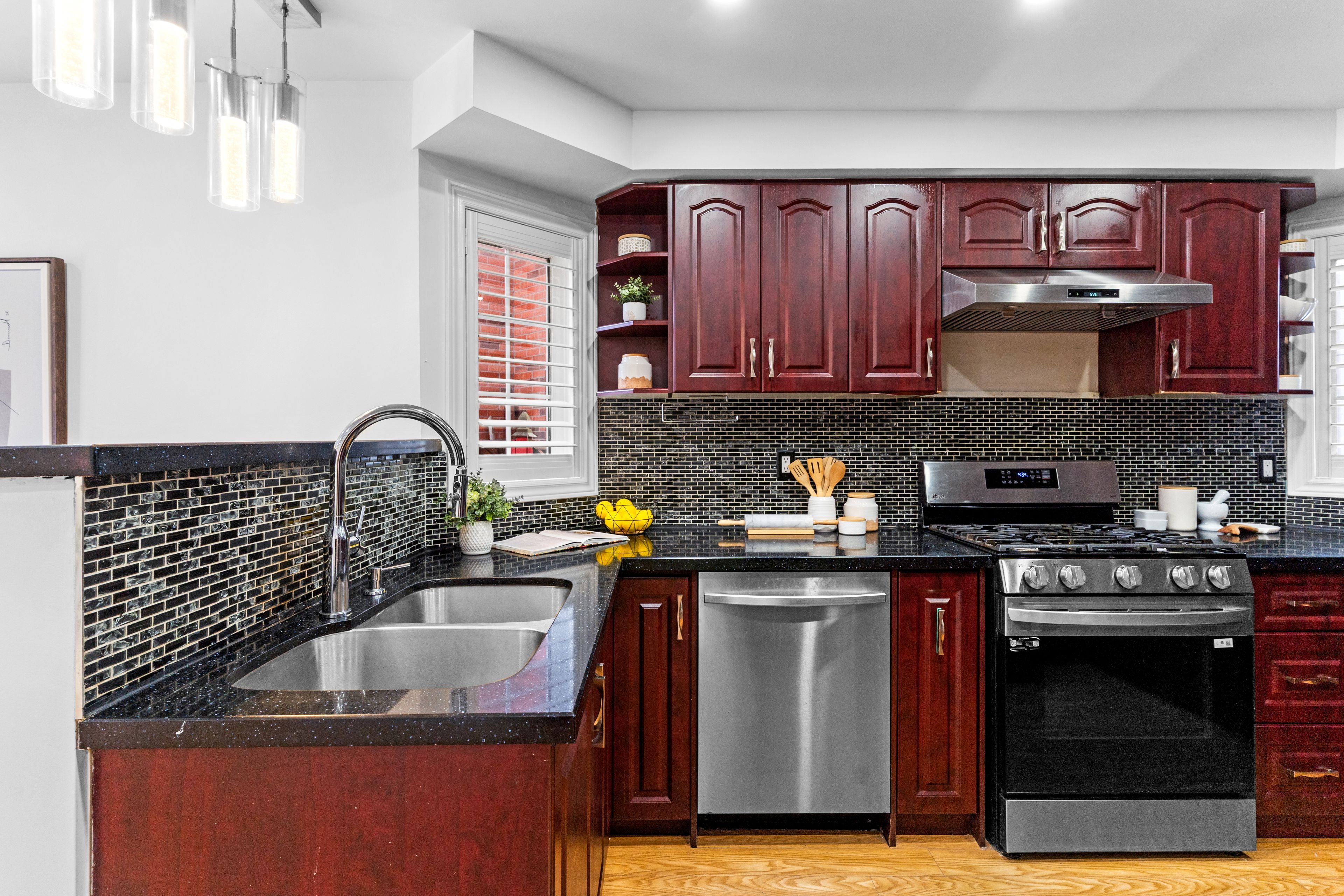 • Finished basement with kitchen, living room, and in-law suite potential.
