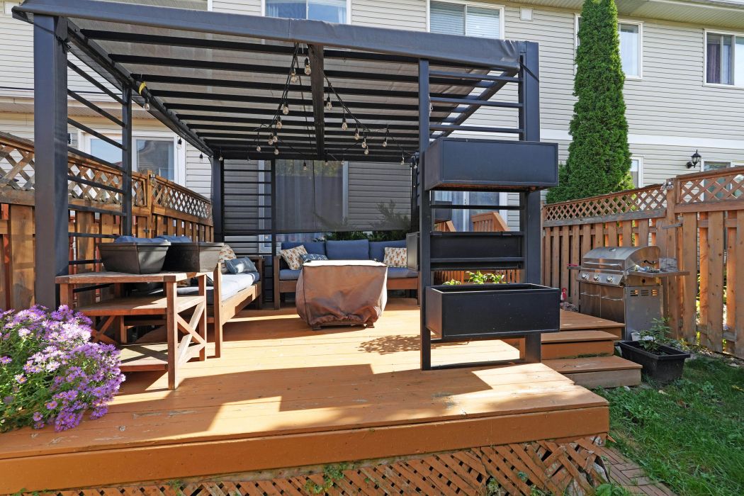 • Fully fenced backyard with a deck and included pergola for outdoor enjoyment.