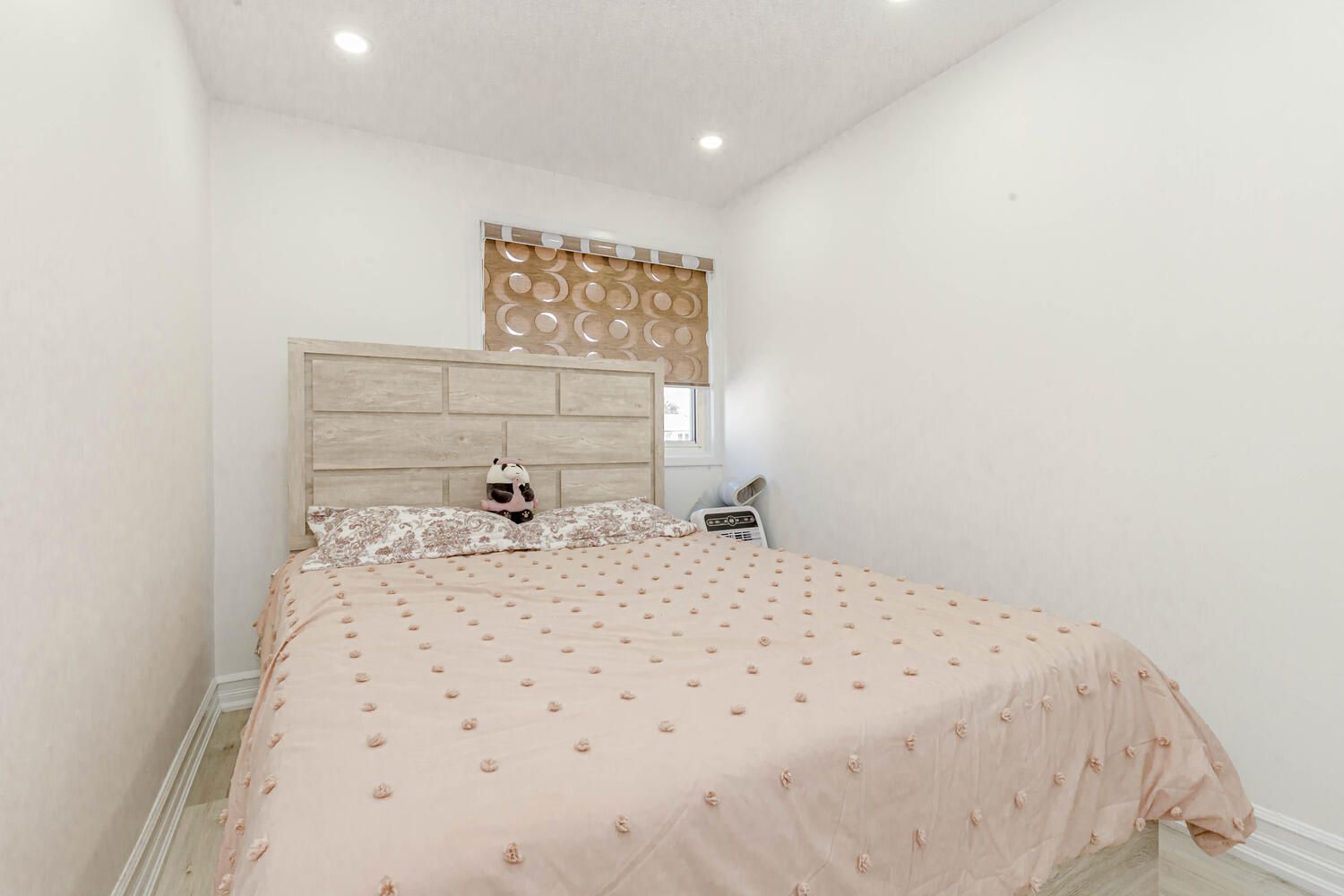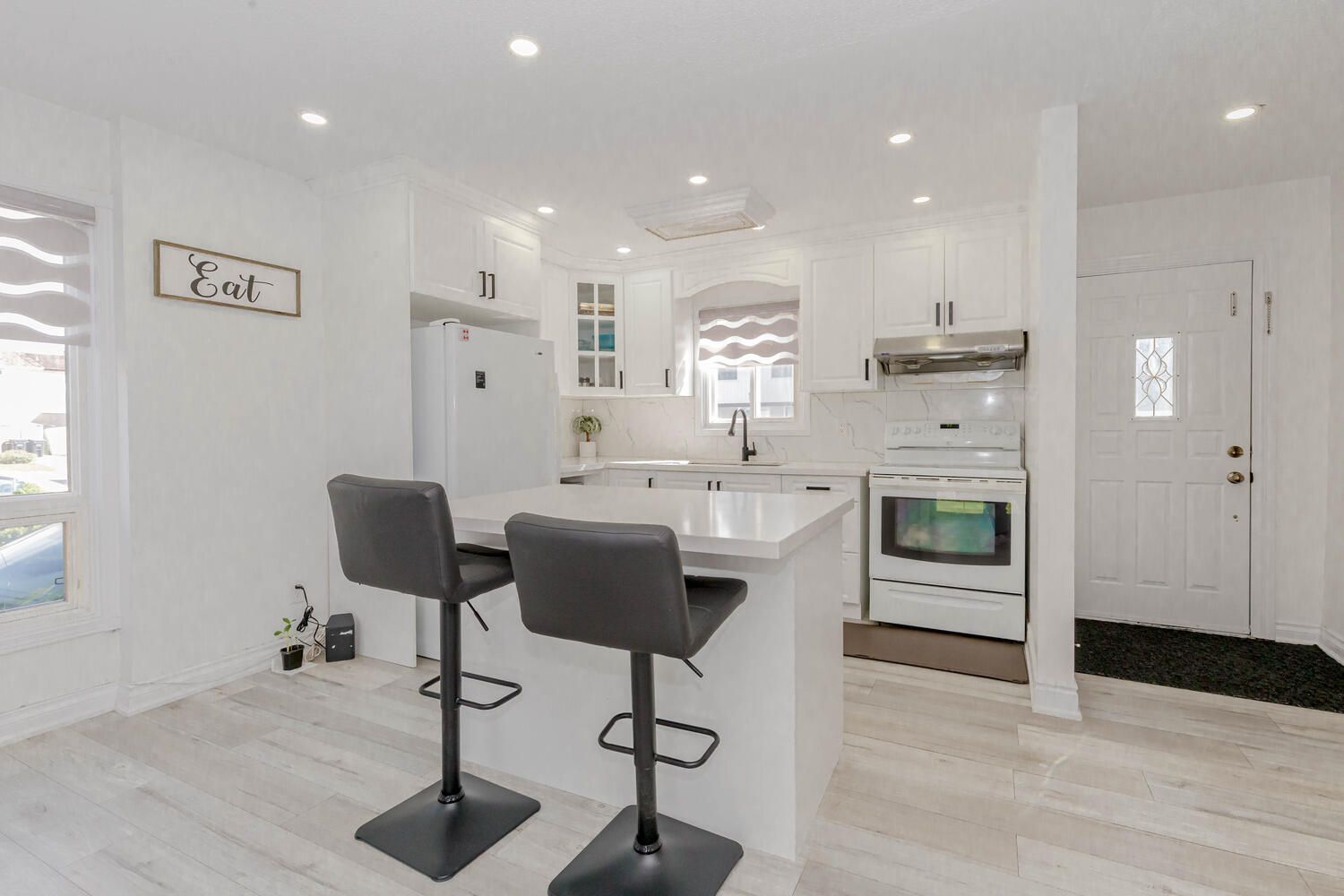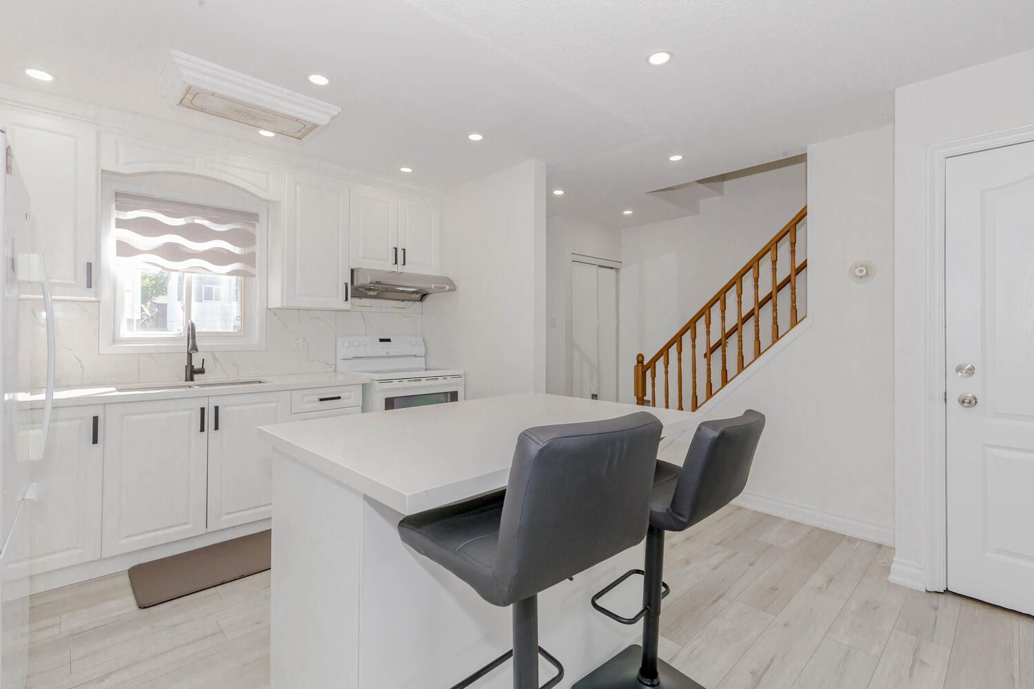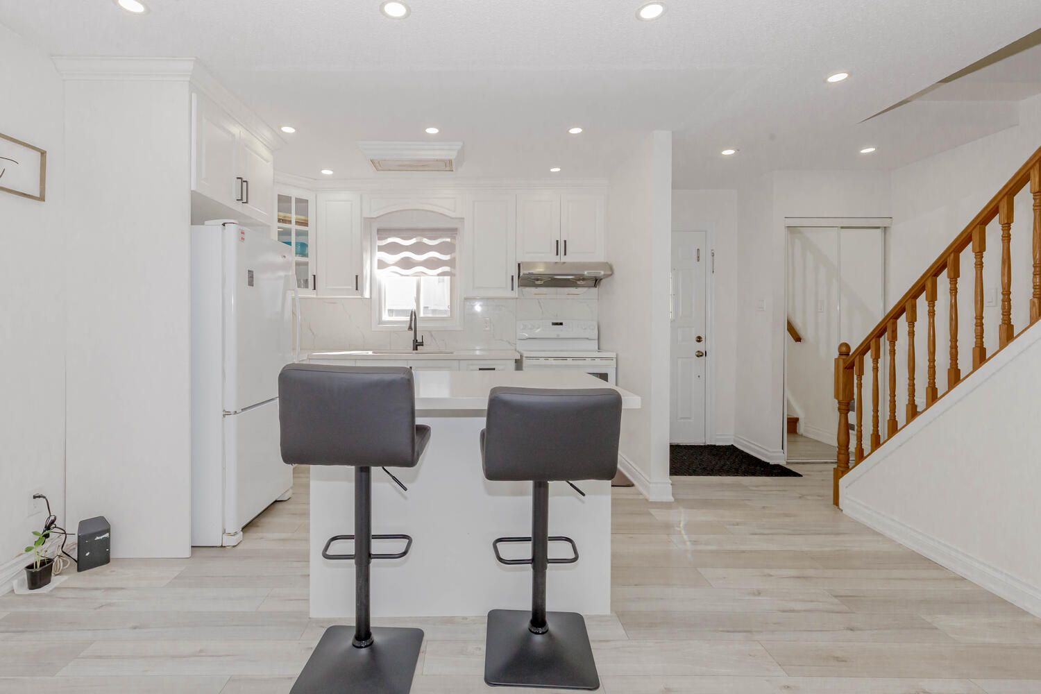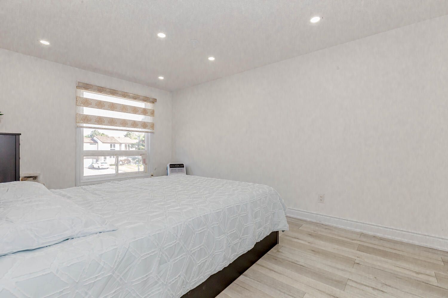 • Spacious living room enhanced with new pot lights and stylish blinds.