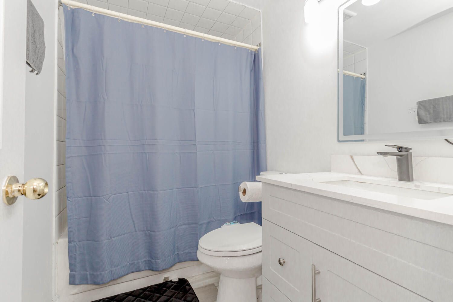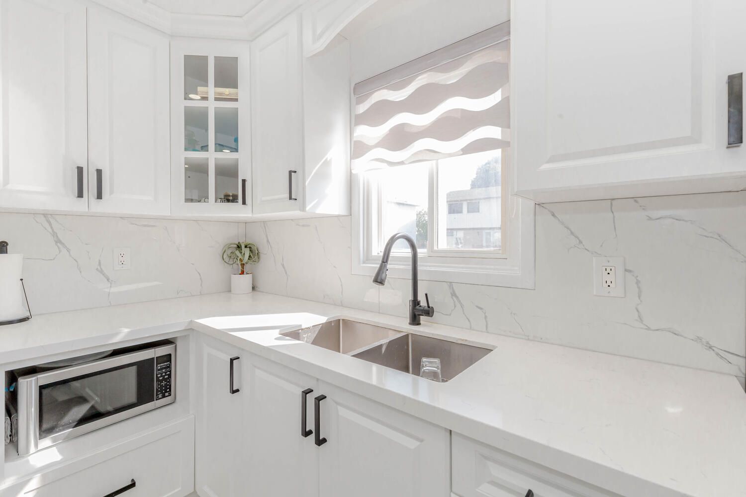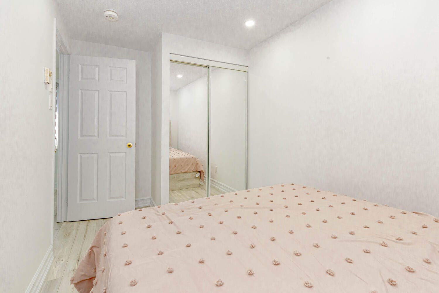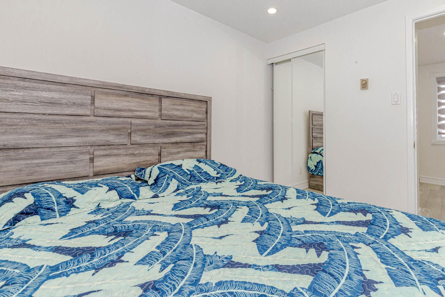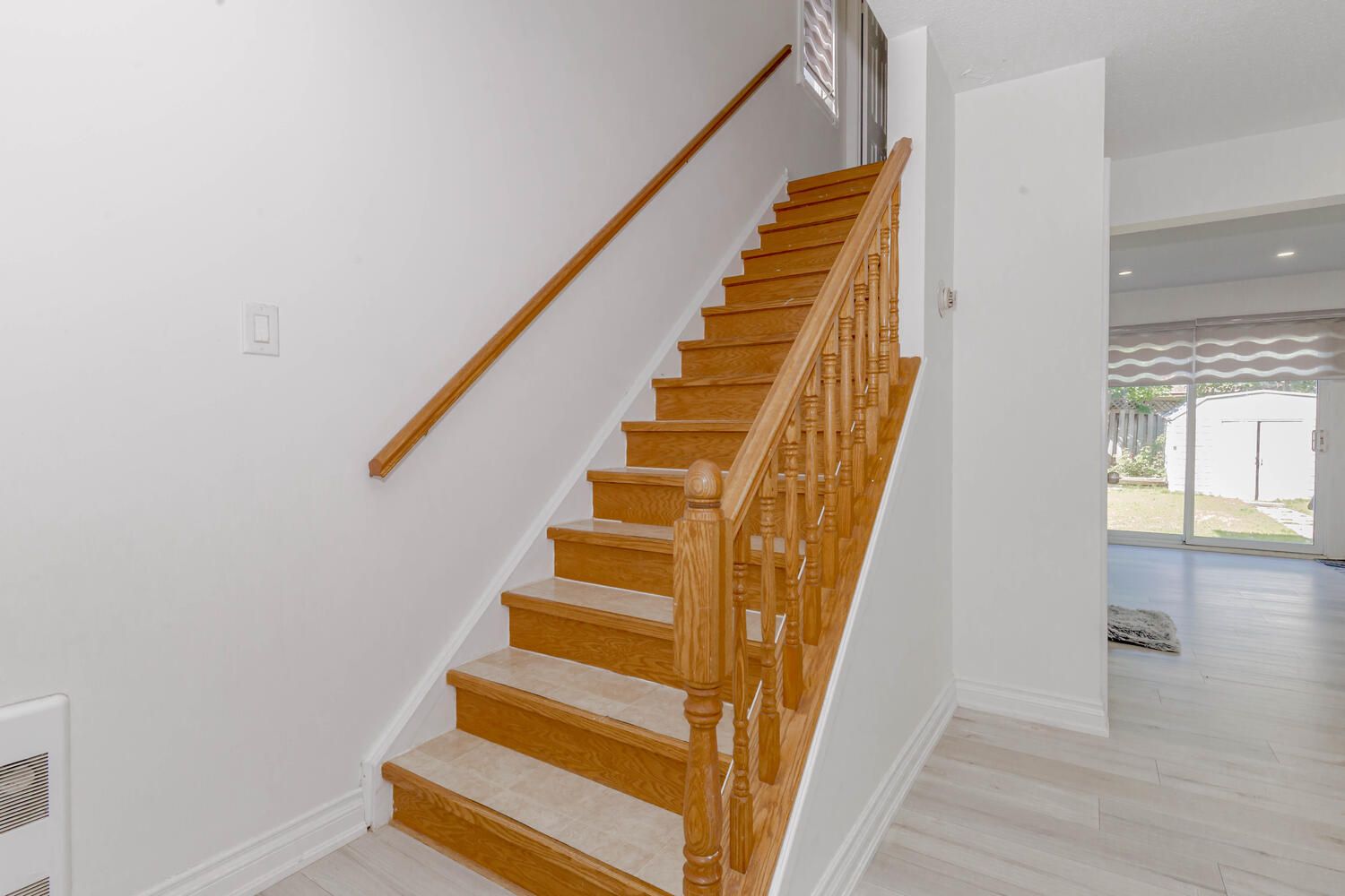 • Spacious living room enhanced with new pot lights and stylish blinds.