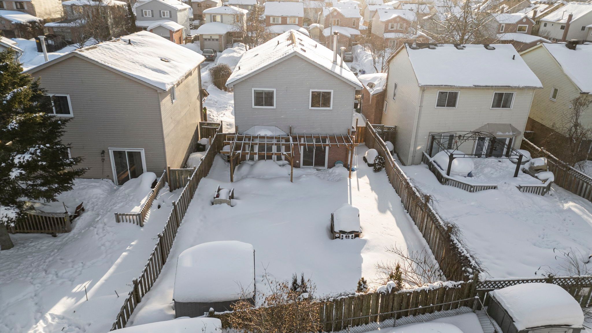 • Private patio with pergola, natural gas BBQ, and built-in fire pit.
