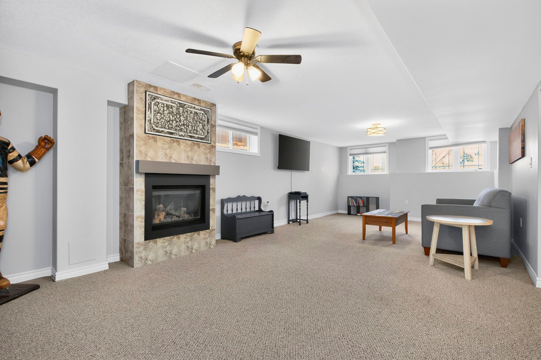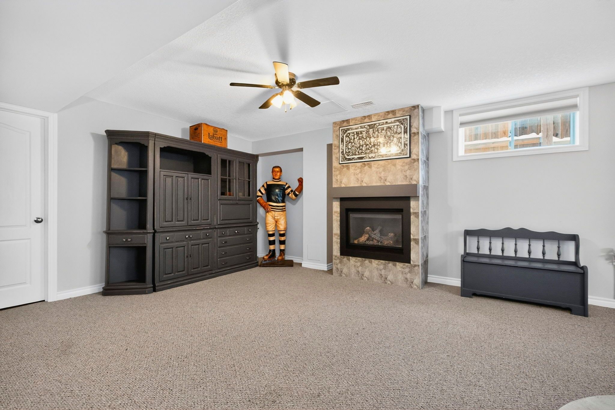 Welcome home to 13 hunter ave! A beautifully maintained raised brick bungalow ideally located in a family friendly neighbourhood in the heart of victoria harbour. This home welcomes you with a spacious, light-filled entryway and a well-designed layout for both everyday living and entertaining. The main floor features two generously sized bedrooms, including a primary suite with a walk-in closet and a large 3-piece bath. The open-concept kitchen area-offering ample storage in addition too a large pantry to enhance your organization and store your kitchen essentials. Added bonus this home also includes residential sprinklers for added safety and peace of mind. The living, and dining area creates a seamless flow and offers a walkout to the deck, overlooking a beautifully landscaped fully fenced backyard. The space has been thoughtfully upgraded with armor stone, a retaining wall, and beautiful landscaping providing an ideal setting for outdoor entertaining, relaxation or family gatherings, or kids playing and enjoying the space. The fully finished lower level includes two additional generously sized bedrooms and a large recreation room with a cozy gas fireplace, providing flexibility for family, guests, or multigenerational living. A walk-up to the insulated double-car garage with an additional exterior access door adds convenience and functionality. Pride of ownership is evident throughout, making this home truly move-in ready and ideal for a wide range of buyers seeking space, comfort, and versatility. Perfectly located within walking distance to schools and local shops, and just minutes to the beautiful shores of georgian bay, golf, skiing, the trans-canada trail, marinas, the lcbo. Quick access to hwy 400, orillia costco and barrie just a short 30 min drive. A turn-key home offering lifestyle value- book your showing today!