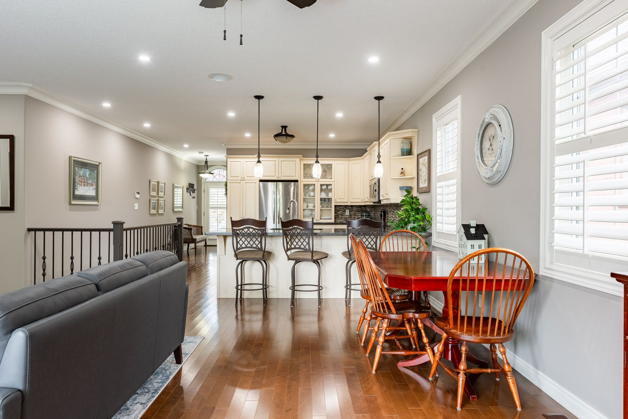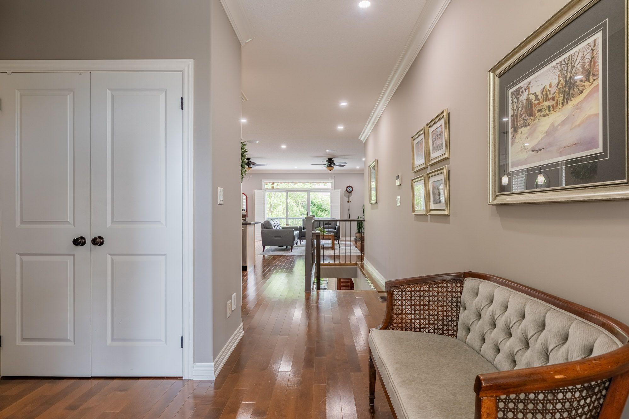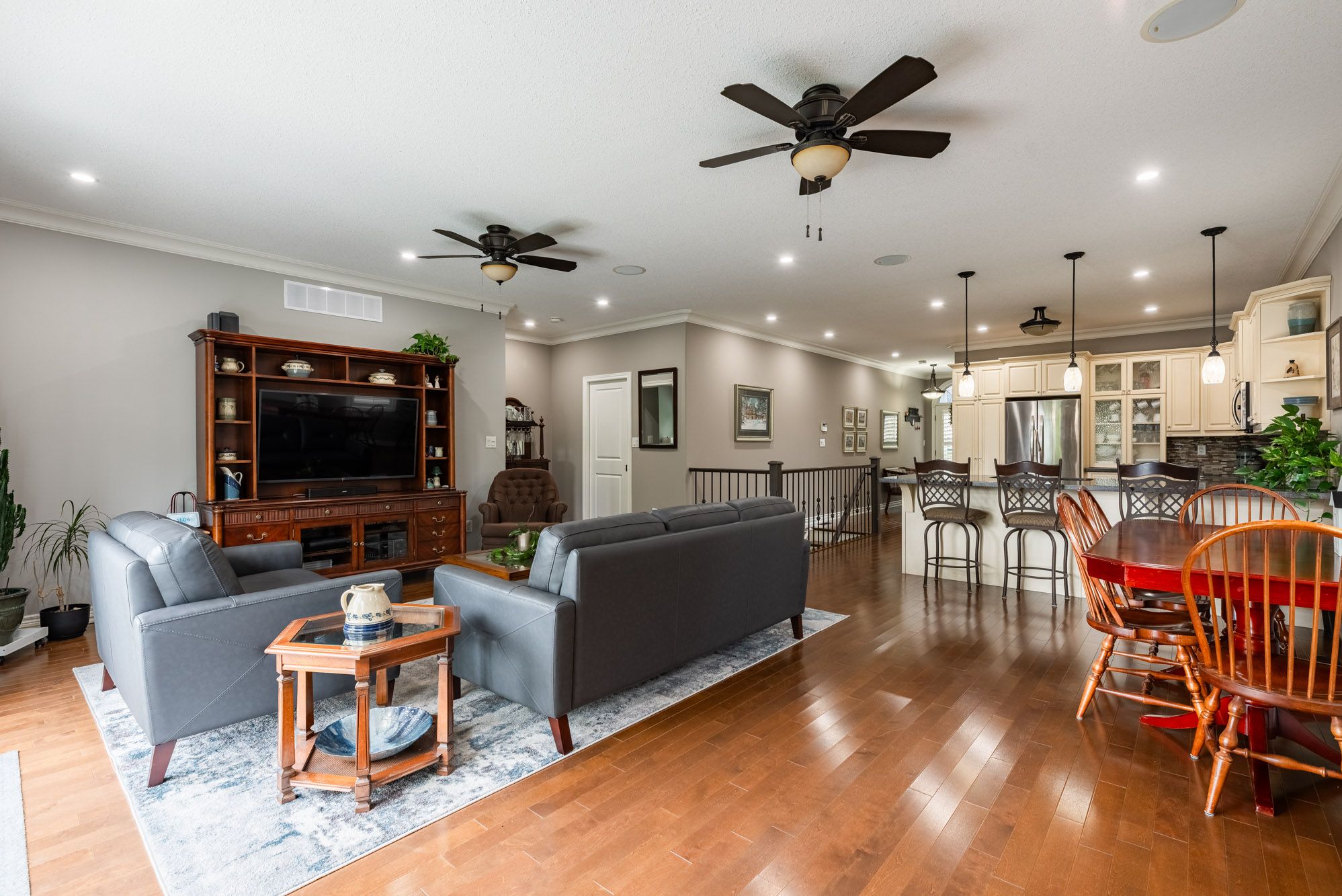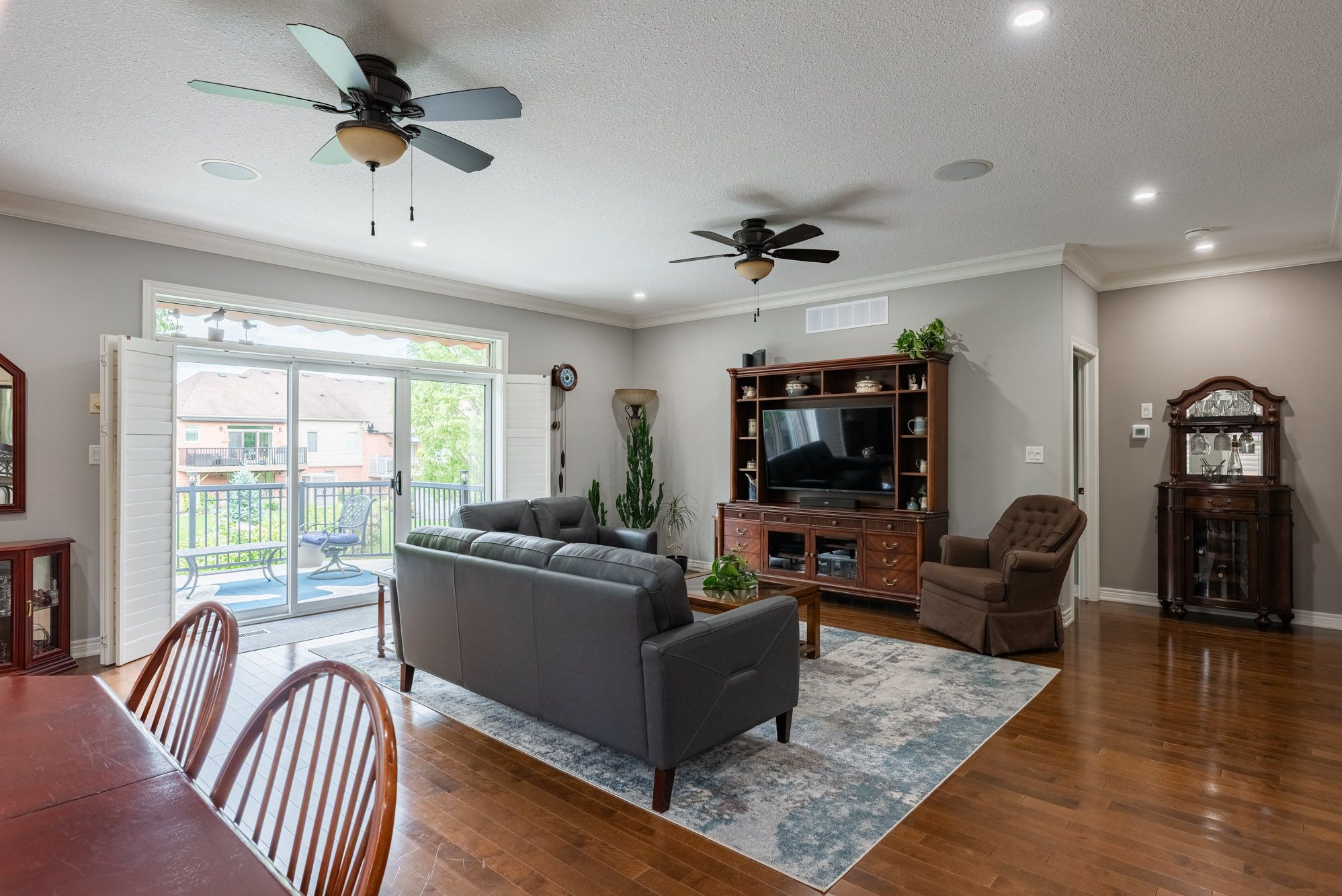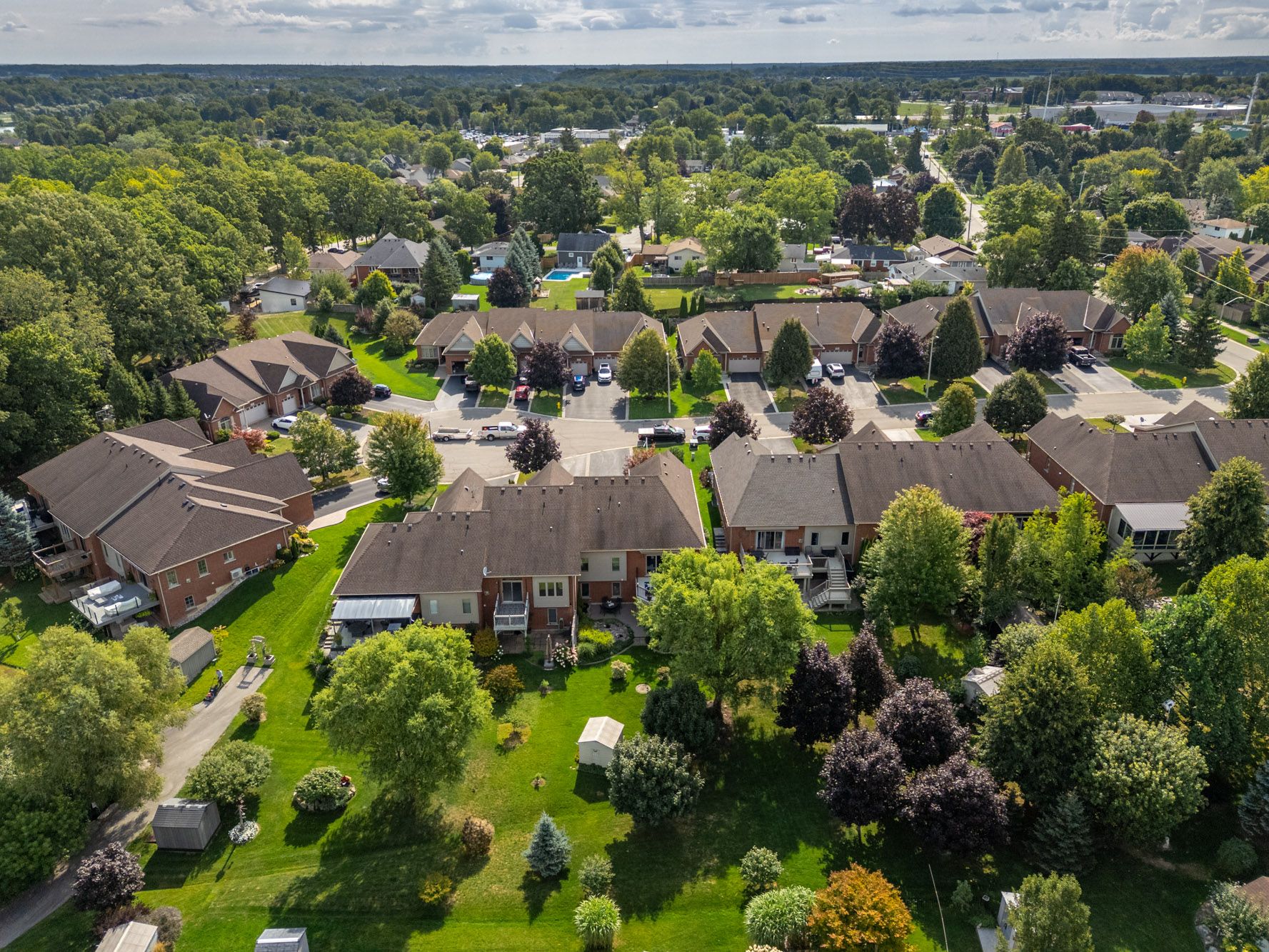 Discover this exceptional home located in one of the most desired neighborhoods of caledonia. This end-unit bungalow townhome offers 1,295 sq. Ft. Of beautifully designed spacious main level living. The bright and open layout with 9-foot ceiling features a custom kitchen with granite countertops, seamlessly flowing into a generous living area with oversized sliding doors leading to an upper level deck overlooking a serene park like setting, and is complete with a gas bbq hookup. The main floor primary bedroom is filled with natural light from 2 windows, complete with a walk in closet and private 3 piece ensuite. Main floor laundry adds effortless convenience to your daily life. The lower level expands your living space with an additional 1,240 sq. Ft., featuring a cozy gas fireplace, a large recreation room with ample natural light from its large window and sliding doors, and ample storage. Potential for an in law suite or space for older child in the lower level bedroom that is located right next to a lovely 4 piece bathroom. Step outside to enjoy the walkout patio, landscaped yard, custom water features, and recently installed composite decking, perfect for relaxing or entertaining. Additional highlights include a two-car garage and a driveway with parking for four more vehicles, california shutters throughout, and a built-in ceiling speaker system for premium sound. Plus, enjoy peace of mind with refreshed mechanicals, including updated furnace, air conditioner, and water heater, all replaced in 2020. Don't miss this exceptional home in a prime location! Listing agent is related to seller. Disclosure is included in attachments.