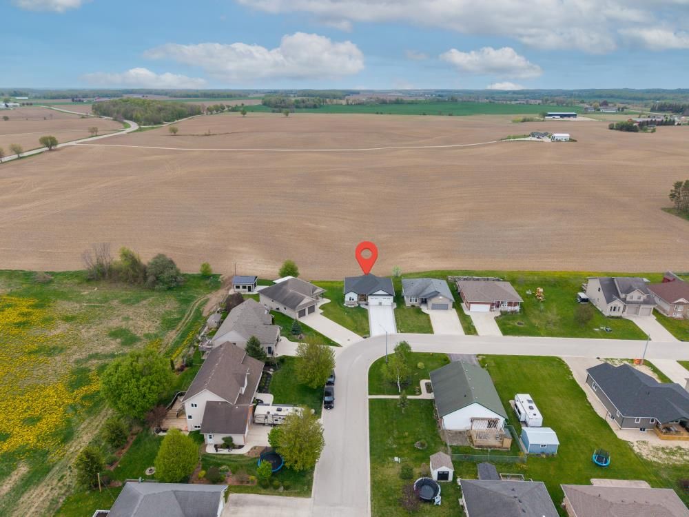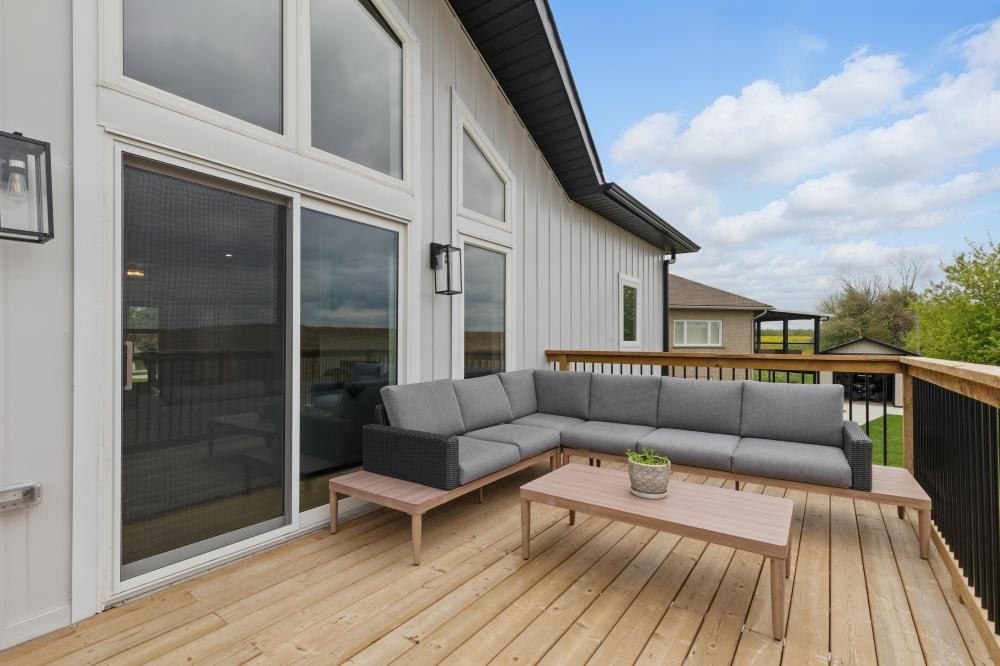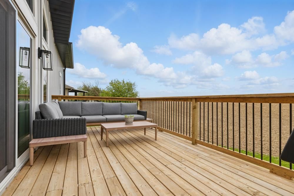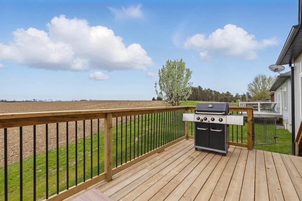 • Back deck overlooks serene farmers' fields, perfect for relaxing.