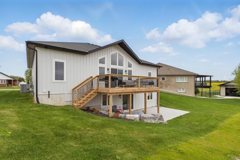 This less-than-1-year-old bungalow in mildmay offers a perfect blend of comfort and quality. With 2 bedrooms on the main floor and 2 more downstairs, there's space for the whole family or visiting guests. The primary suite features its own full ensuite, and there's another full bath on each level. The open-concept main living area with its vaulted ceilings is filled with natural light and finished with quality touches throughout. Step outside from the dining area onto a back deck that overlooks peaceful farmers' fields, or enjoy the walkout basement leading to a lower patio - ideal for quiet mornings or evening get-togethers. The attached 2-car garage adds everyday convenience, and with bruce power just 40 minutes away, this home is a great fit for commuters looking to enjoy small-town living.
