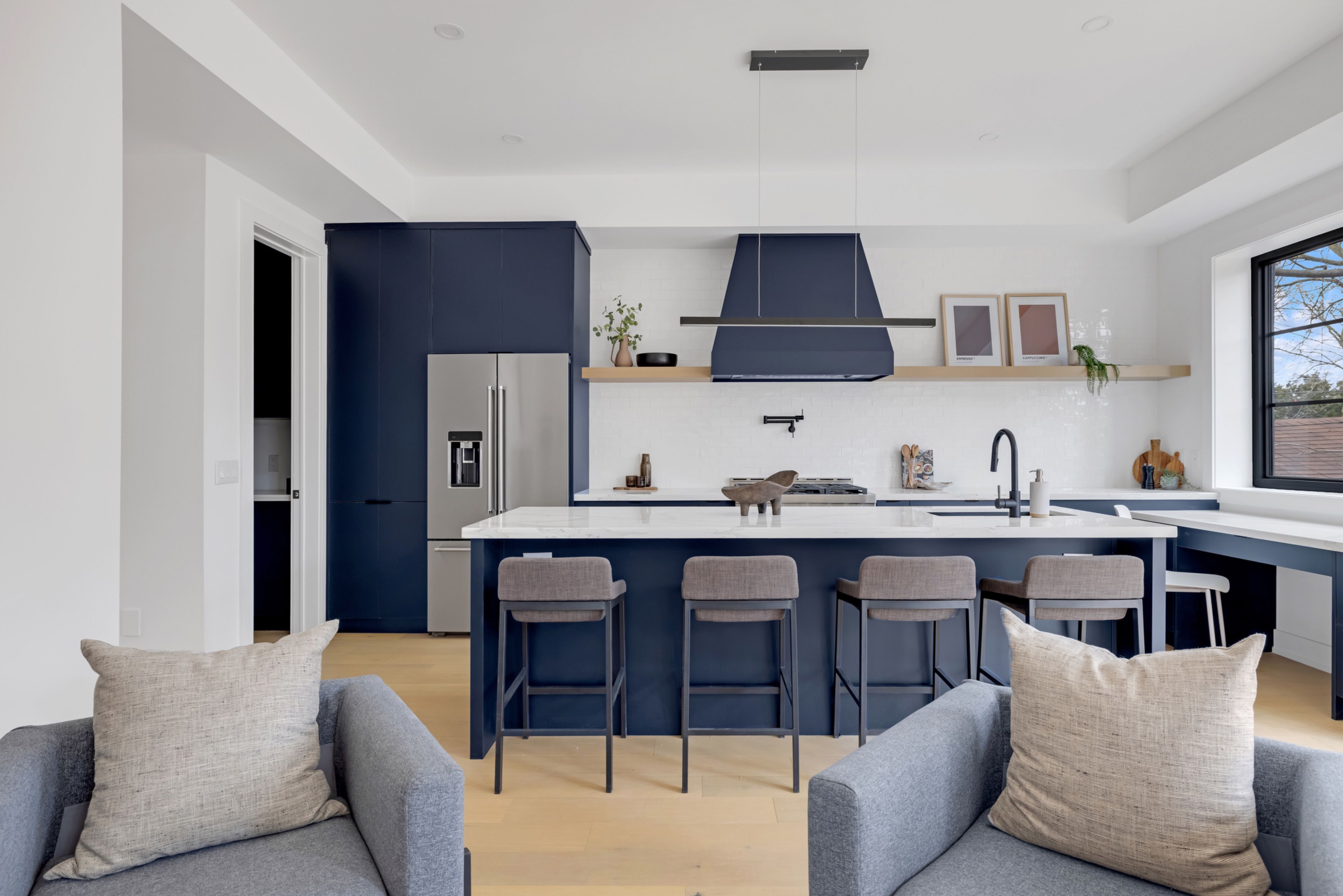 • Chef's kitchen features premium appliances and a spacious walk-in pantry.