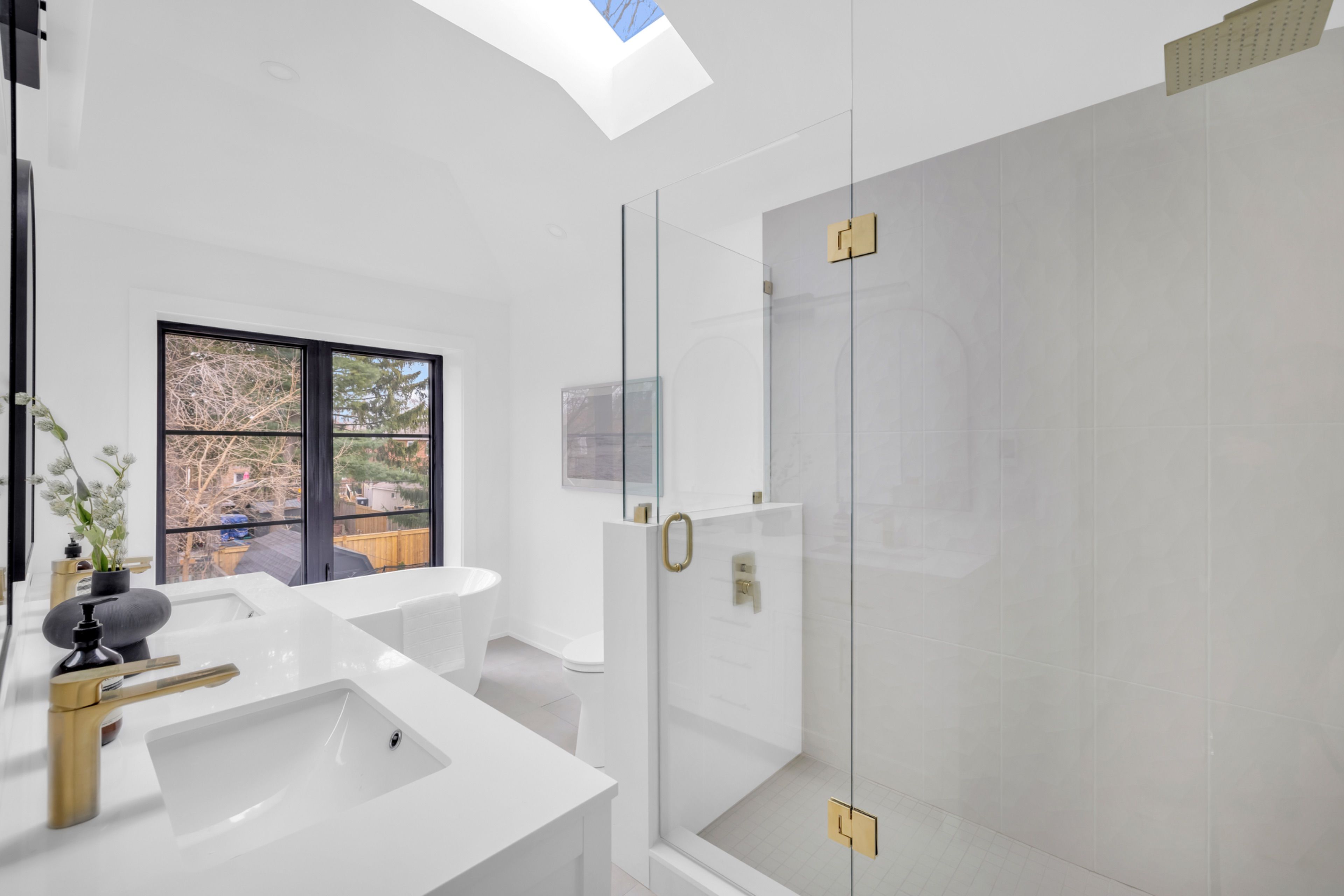 Now vacant and no longer tenanted, this exceptional 31-ft-wide detached home offering over 3,500 sq ft of refined living space in the heart of toronto. Fully renovated 2024 and ready for immediate occupancy. If you like light, this is the home... As a dramatic 6-ft skylight shaft fills the striking central staircase with natural light, complementing the 10-ft ceilings and wide-plank hardwood on the main floor. Main floor features a gas fireplace, open kitchen with walk-in pantry, motorized blinds, and expansive sliding doors opening to a large entertaining deck overlooking a private backyard. The chef's kitchen is equipped with premium kitchenaid appliances, a 36-inch gas range, quartz counters, and custom cabinetry. Upstairs : four spacious bedrooms, spa-inspired bathrooms, toto fixtures and deep soaking tubs. Lower level with radiant heated polished-concrete floors and a versatile fifth bedroom or ideal work-from-home office, with additional space for guests, a gym, or recreation. Complete with parking for 2-3 vehicles and 200-amp service for a car charger, 13 knight street is a beautifully crafted modern home combining space, light, and exceptional functionality in a prime toronto location. Hot water system owned.