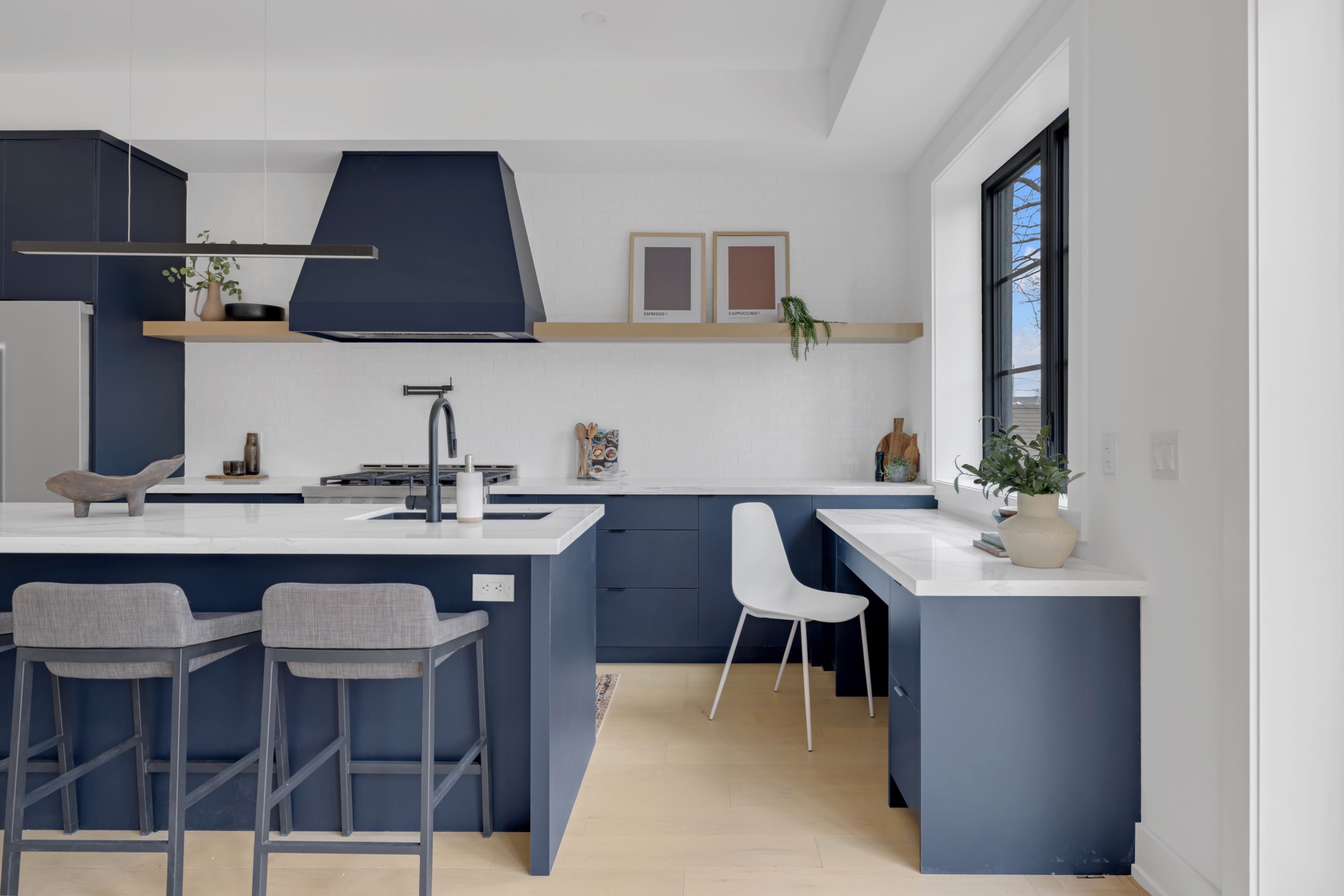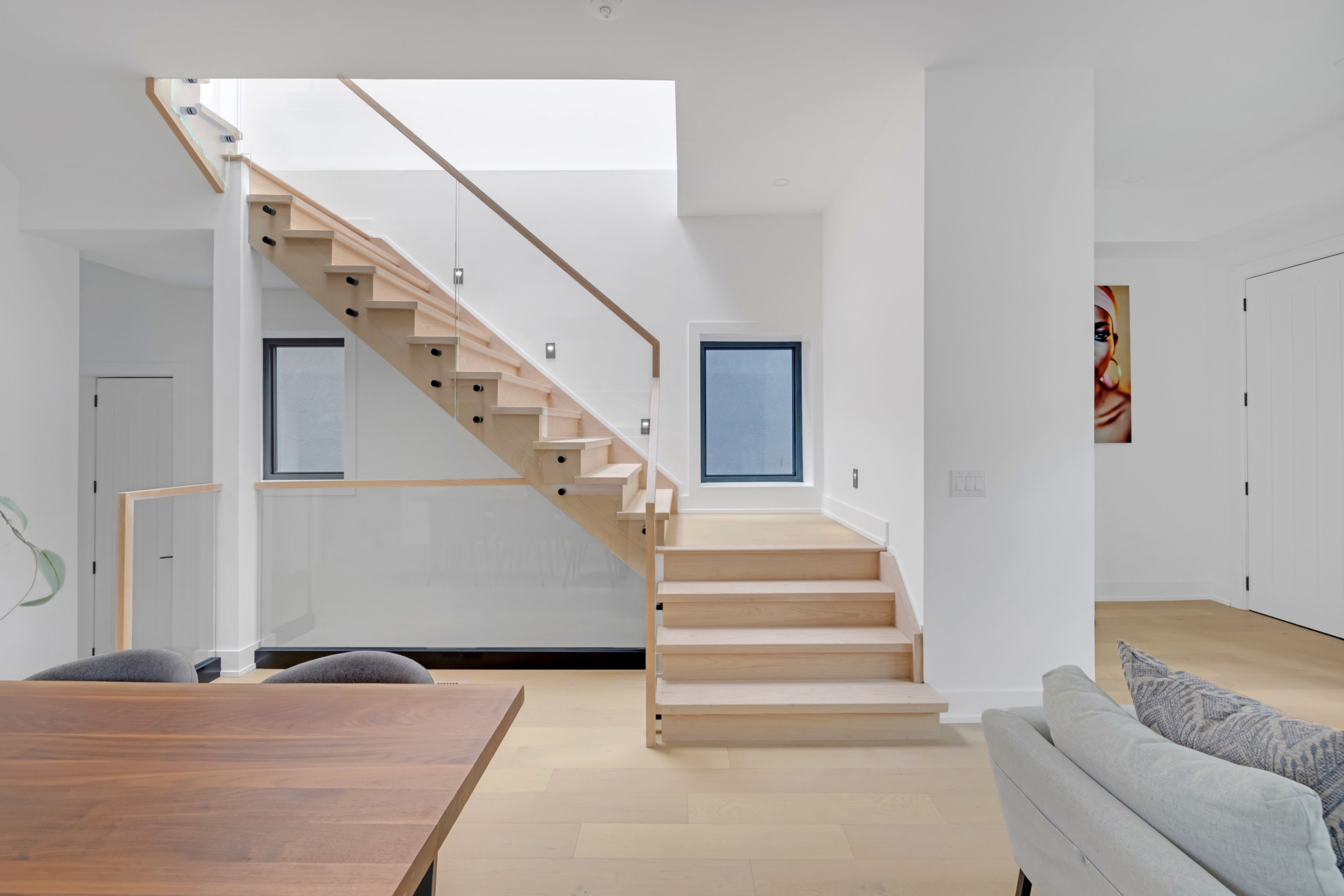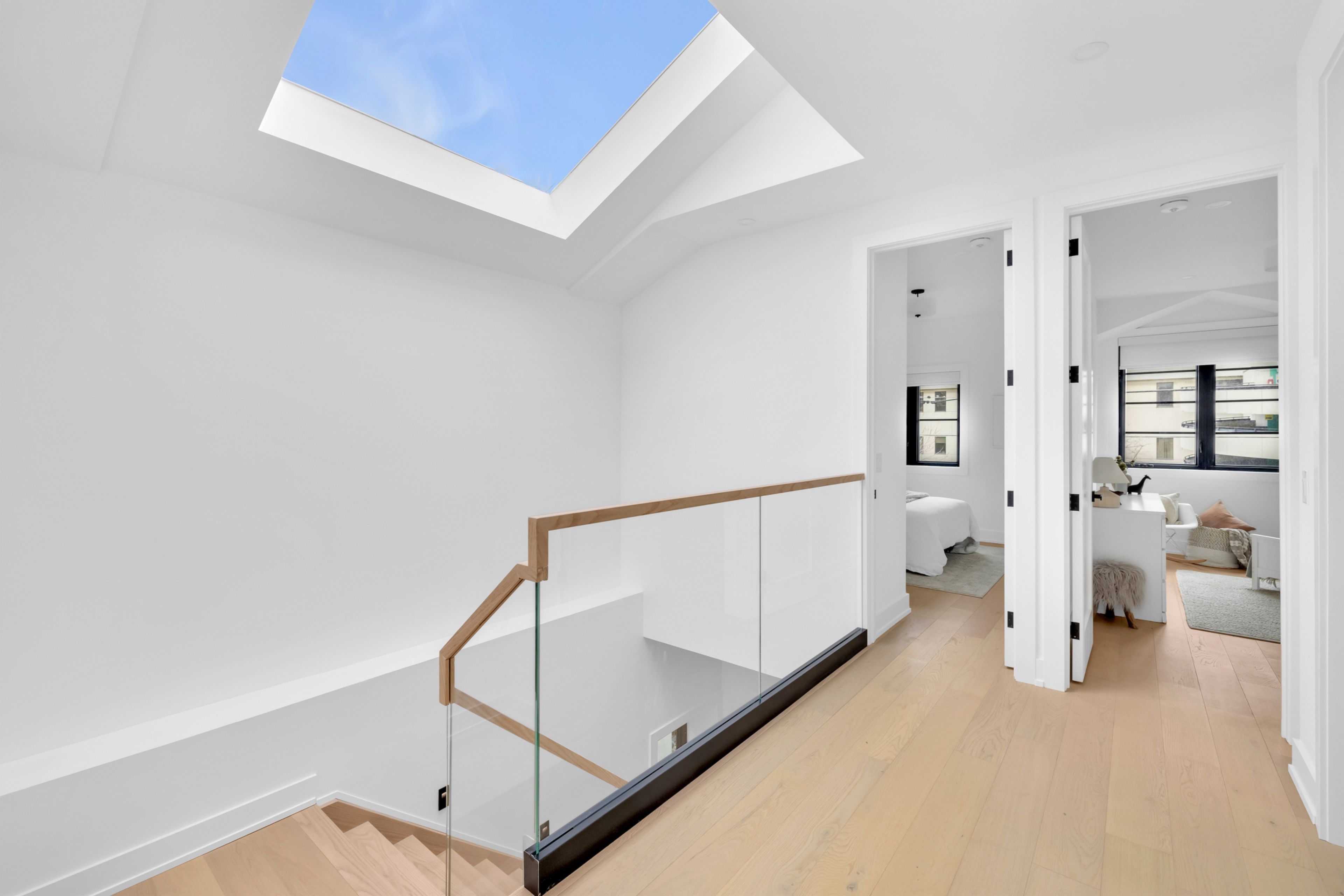 • Dramatic skylight and high ceilings create a bright, airy atmosphere.