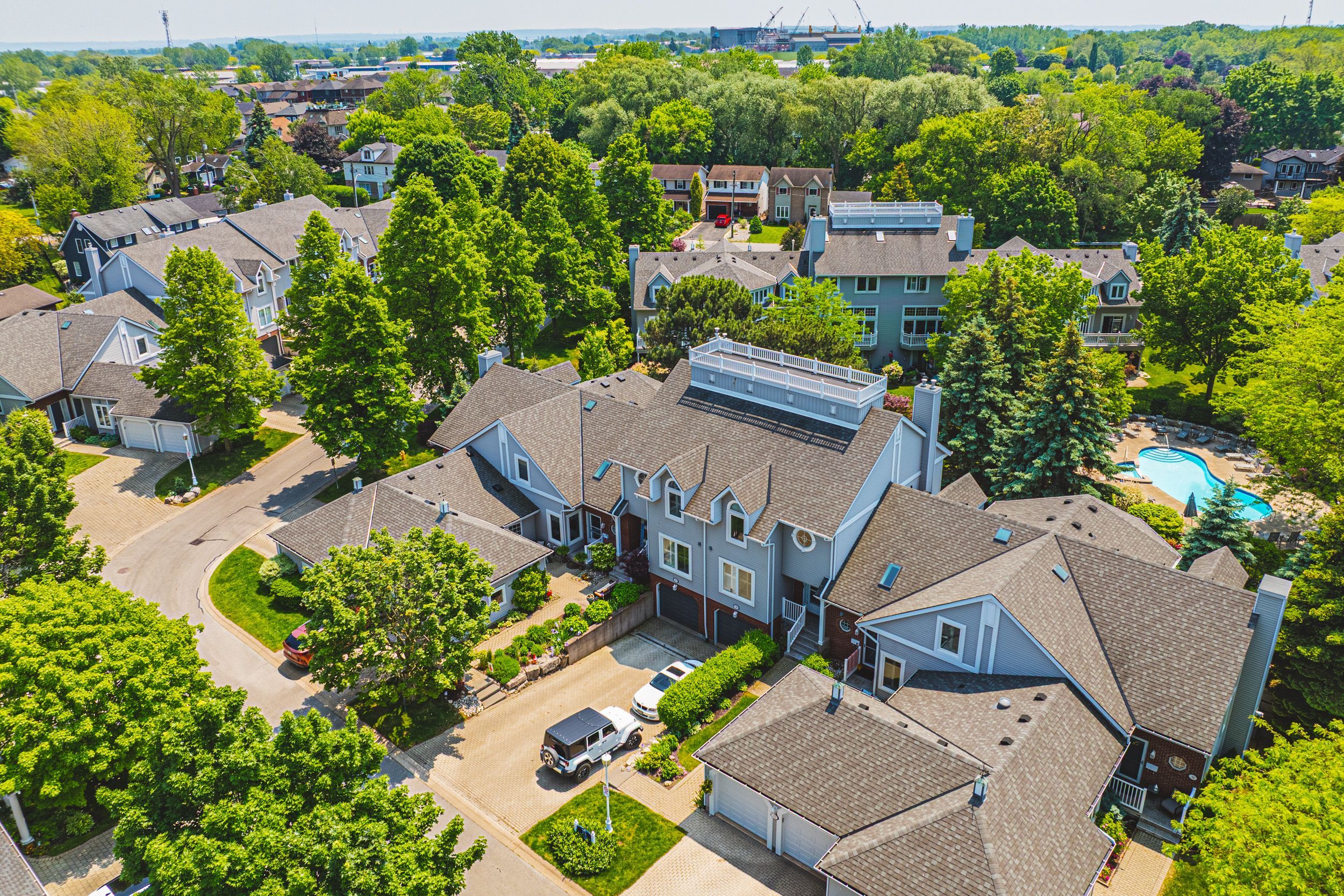 Experience the charm of lakeside resort living throughout the year at one of niagara region's most sought-after townhome communities. Newport quay promises a delightful retreat with its own private walkway to jones beach, nestled amidst nature trails, green spaces, and the marina. Its immaculate grounds, beach access, and proximity to port dalhousie and niagara on the lake are guaranteed to captivate. This multi-level townhome greets you with a newly paved interlock driveway, concrete steps, and a tiled front porch. Upon entering, you're welcomed by a flood of natural light and a soothing "lake-life" atmosphere. The bright dining area showcases stunning mediterranean-inspired tiles and a renovated half wall, overlooking a living room adorned with a gas fireplace, california shutters, and expansive patio doors that open to an updated deck offering spectacular views of the manicured grounds. The traditional kitchen brims with light and offers breezy, indirect lake views just across the street. It features stainless steel appliances and a custom island. On the upper level, sunlight streams through the skylight as you approach the spacious primary suite, which boasts three closets and a modern ensuite bath with double vanities and a large, tiled walk-in shower. The generous second bedroom offers serene views, complemented by large windows and vaulted ceilings. The light-filled, stylishly updated 4-piece main bath completes this sophisticated home. The garage entrance leads into the tastefully finished lower level, providing the laundry room, utility room, flexible family room space, and an additional bathroom. Perfectly situated for those wishing to indulge in the quintessential charm of niagara, this well maintained townhome is brimming with charm, and ready for your next chapter.