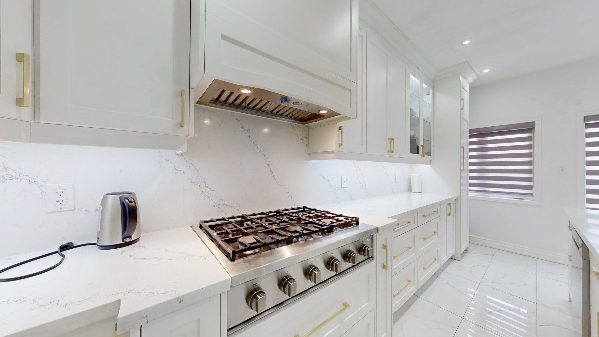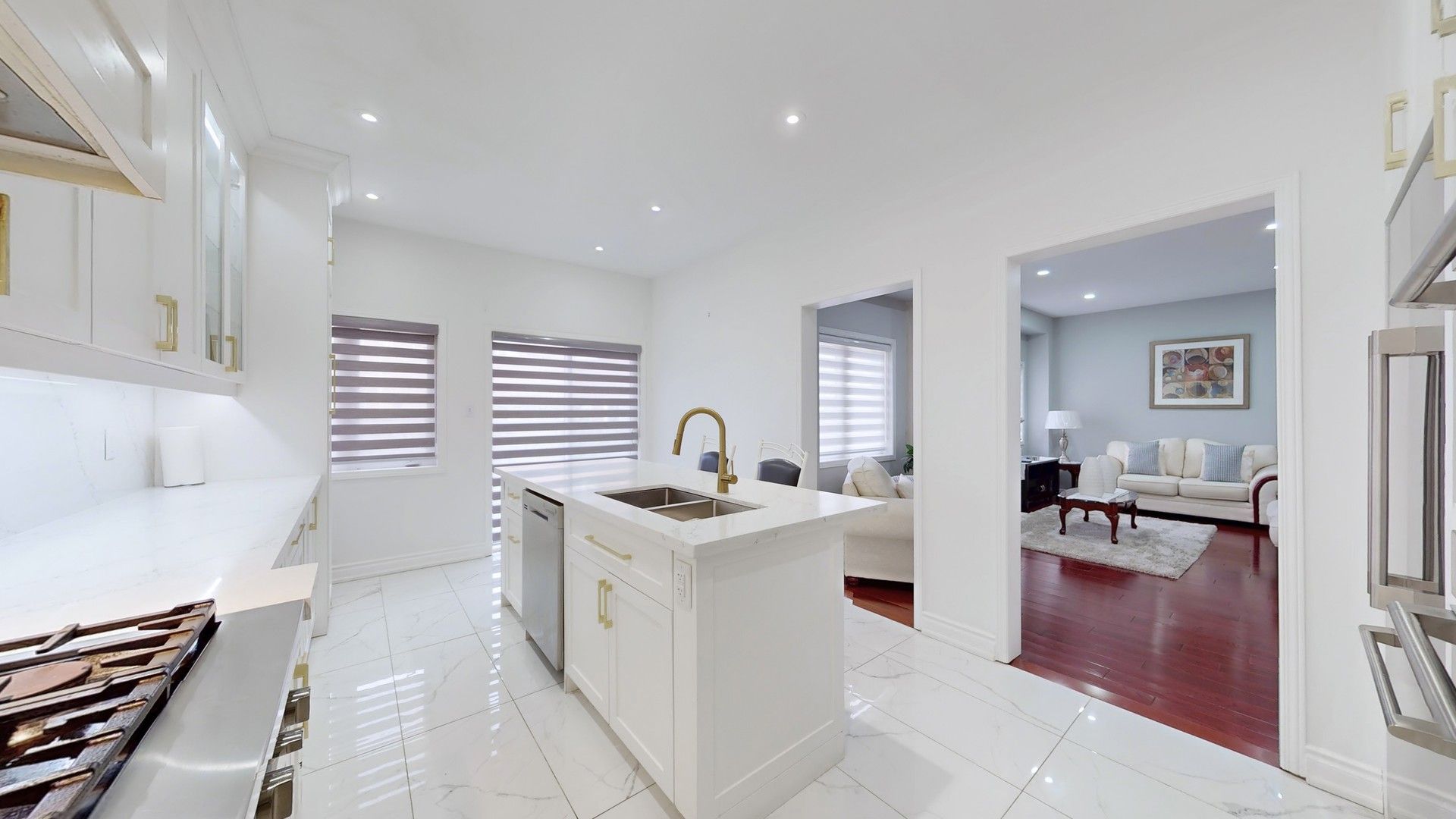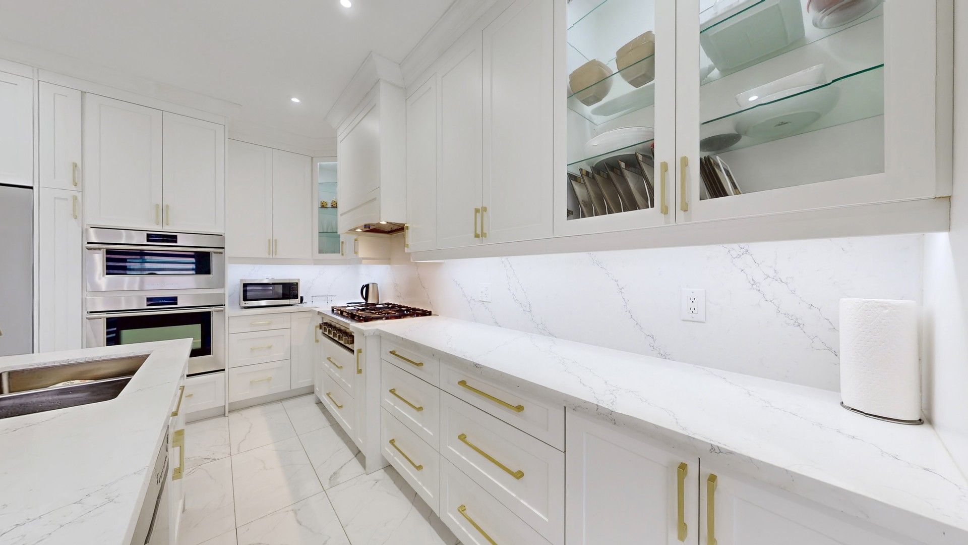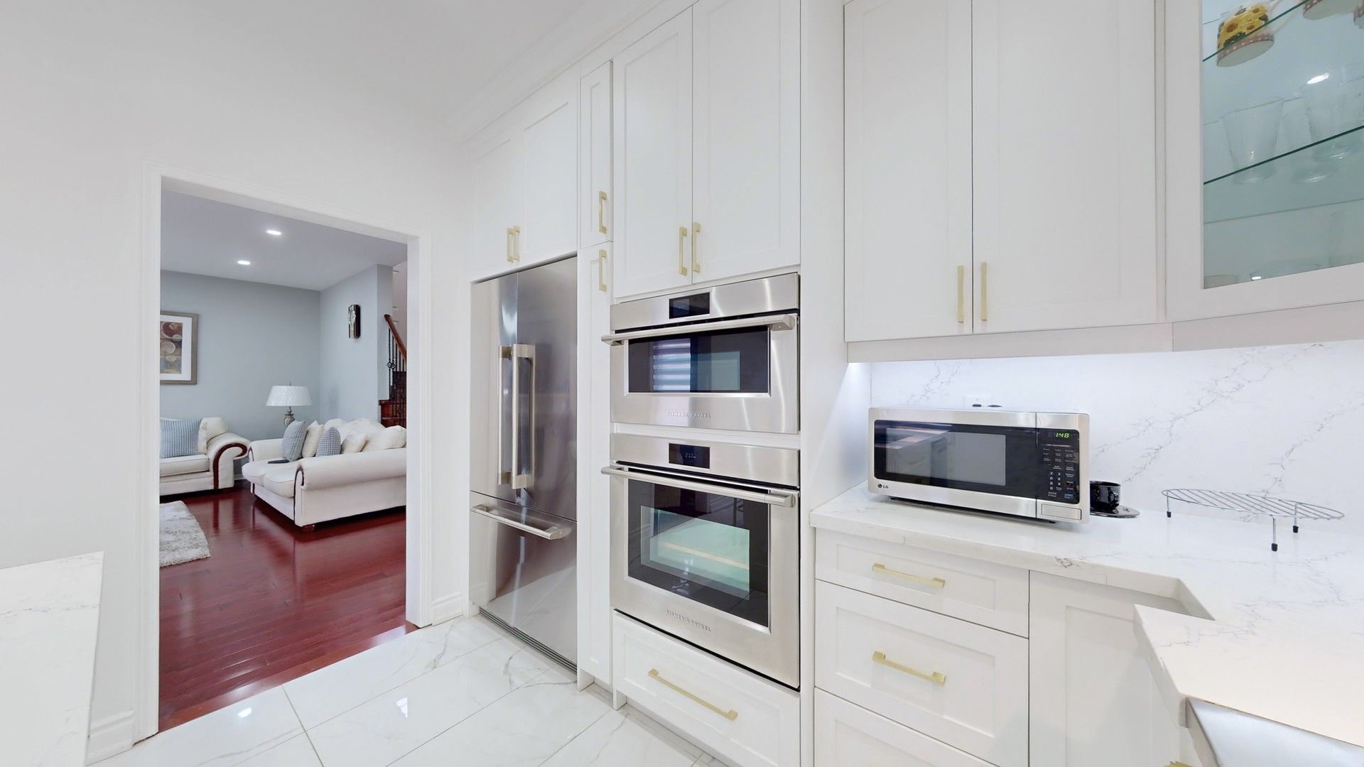 • New kitchen features quartz countertops, built-in appliances, and a center island.