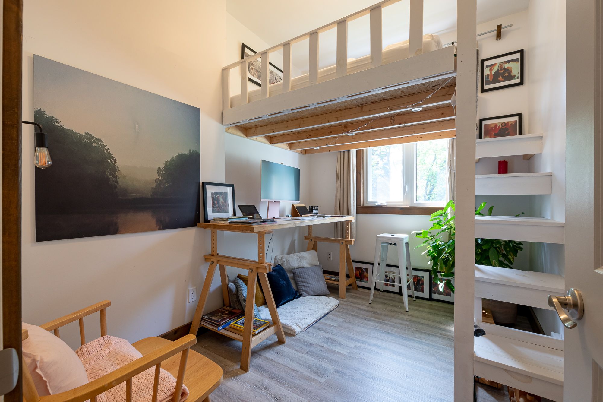 Welcome to this stunning 2021-built bungalow, a true gem offering 3 bedrooms and 2 bathrooms. Designed for modern living, its open concept layout seamlessly connects the living, dining & kitchen areas, perfect for gatherings or easy everyday flow. This home was built with efficiency in mind, featuring a slab-on-grade foundation with in-floor heating, smart use of natural light, and thoughtful construction that helps keep utility costs low year-round. Garden enthusiasts will love stepping through the garden doors to a picturesque patio with pre-established veggie beds ready for planting. An attached 1-car garage with inside entry adds convenience on chilly days, while a hidden bonus awaits behind the living room bookshelves, a secret kids' hideout with a play zone, climbing wall & loft hangout. Soaring 10-ft ceilings elevate the sense of space, and the inviting primary suite includes a beautiful ensuite & walk-in closet. One of the guest bedrooms features a built-in loft-style bed to maximize floor space. The chef's kitchen shines with butcher block counters, an oversized island capped with quartz & impressive storage, including a generous walk-in pantry. Less than 1 km from tom thompson park on scenic forest lake and just minutes to south river's charming downtown, this home delivers modern comfort, energy-efficient living & everyday convenience in an exceptional package.