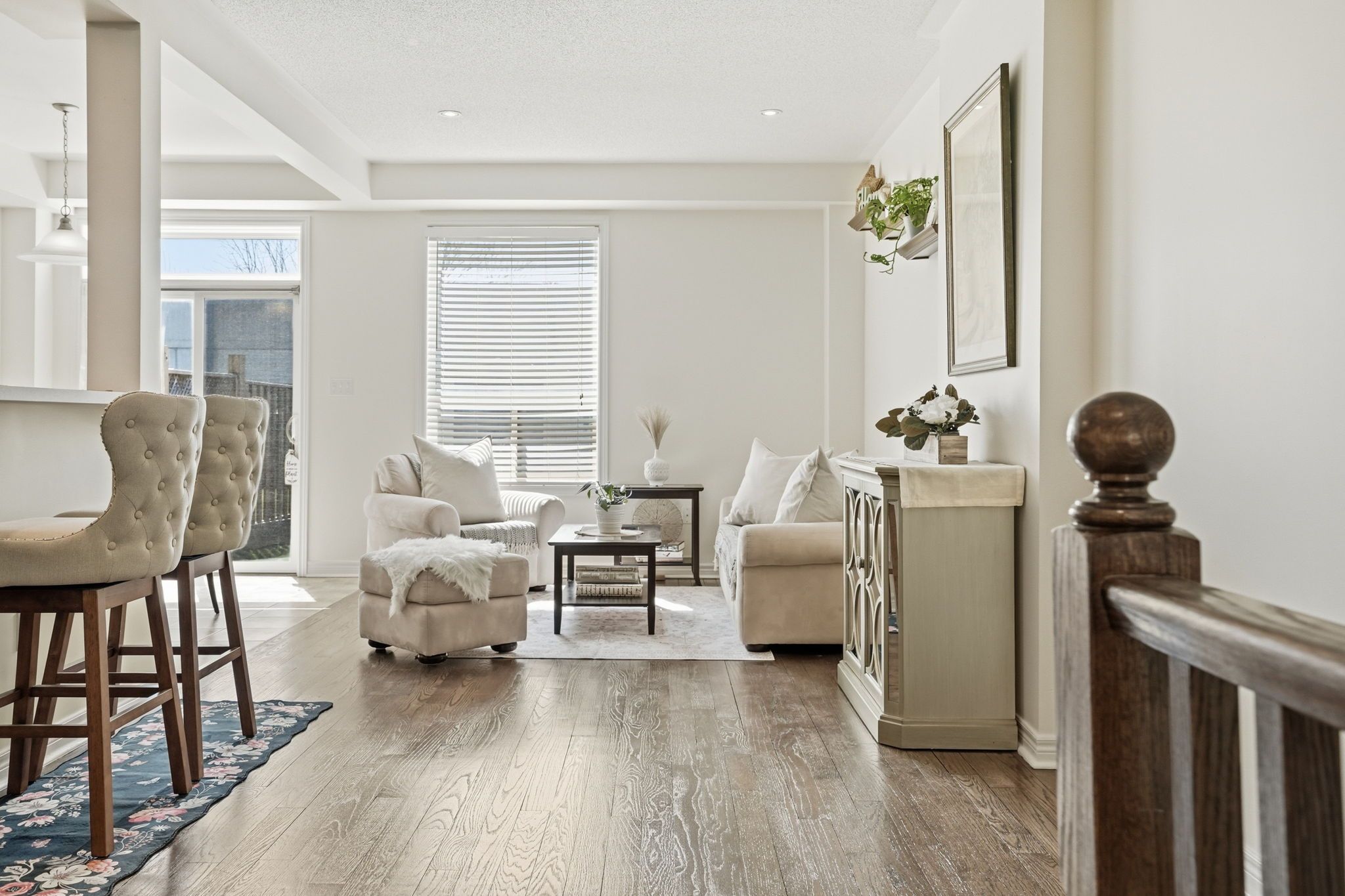 This professionally renovated freehold townhome has been meticulously maintained from top to bottom - and it shows. With southern exposure bringing natural light into every room throughout the day, this home offers a rare combination of warmth, space, and thoughtful upgrades that make it truly move-in ready. Step inside and feel instantly at ease. Nine-foot ceilings, rich maple hardwood floors, and generous windows create a bright, open atmosphere that's ideal for both everyday family living and entertaining. The open-concept layout flows seamlessly into the eat-in kitchen, complete with stainless steel appliances, ample cabinetry, and a pantry for all your storage needs. A conveniently placed powder room in the foyer adds a practical touch. Step out from the kitchen onto the large concrete patio - a perfect extension of your living space - overlooking a private, maintenance-free oversized backyard with plenty of room for kids and pets. A spacious shed built on a concrete slab rounds out the outdoor space beautifully. Three generously sized bedrooms provide comfortable space for the whole family. The primary bedroom features a private three-piece ensuite, while a well-appointed four-piece family bath serves the remaining rooms. Upper-level laundry - just steps from every bedroom - adds everyday convenience you'll quickly wonder how you lived without. The fully finished basement extends your living space with a versatile rec room and a full three-piece bathroom - ideal as a teen retreat or home office. Additional storage throughout keeps everything neat and organized. Rsa.