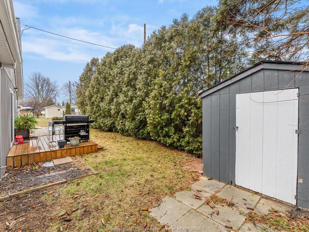 • Treed lot with patio space and storage shed.