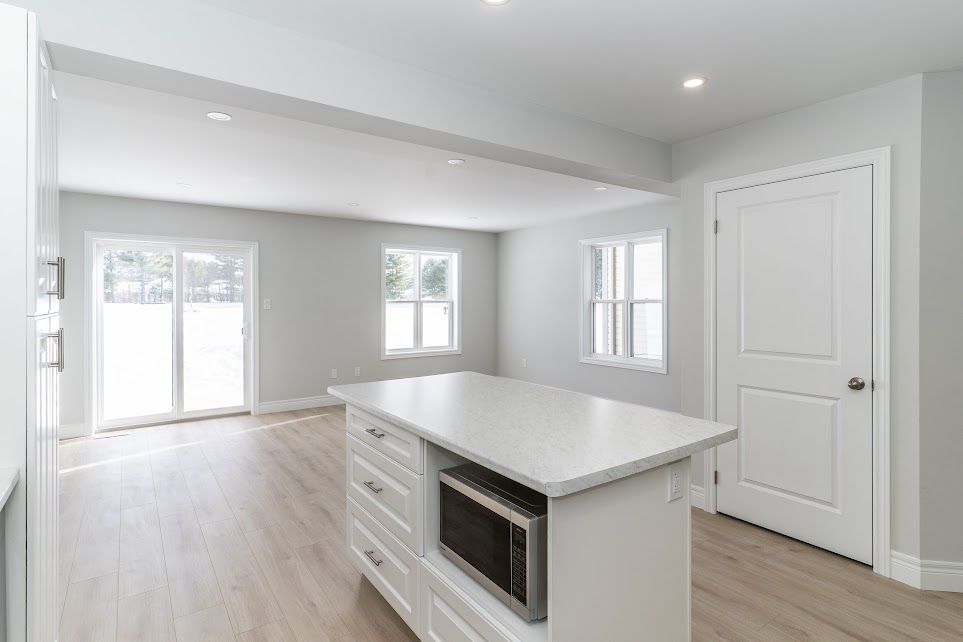 • Open concept main level with kitchen, living, and dining areas.