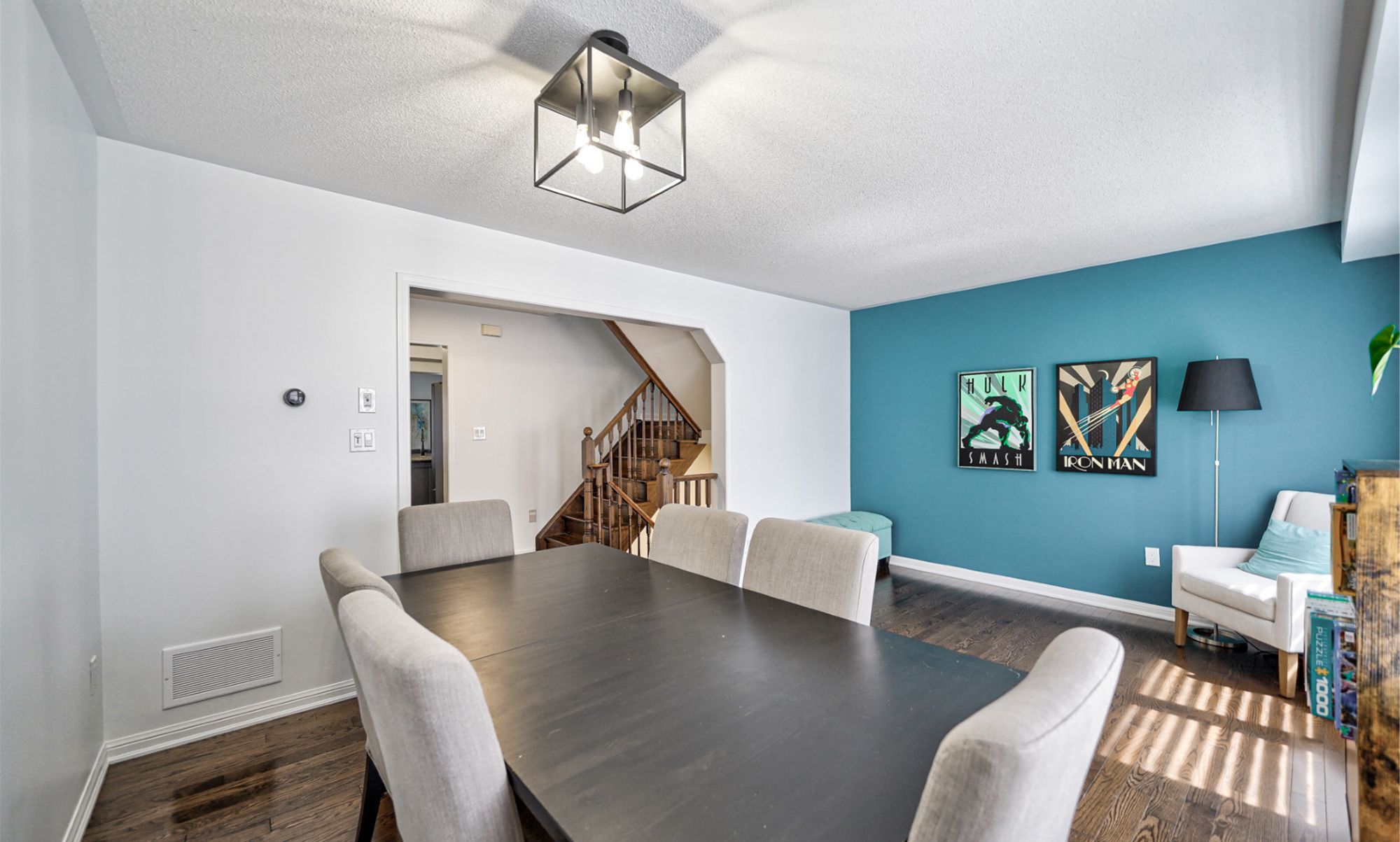 Welcome to this beautifully maintained freehold four-bedroom, four-bathroom townhouse offering the perfect blend of space, style, and convenience for modern family living. An inviting open concept on the second floor. The bright living kitchen, and dining areas flow seamlessly together, enhanced by large windows that flood the space with natural light and a convenient powder room add both functionality and smart design. The spacious primary retreat features an oversized ensuite bathroom complete with a walk-in closet. Three additional well-proportioned bedrooms, equipped with california shutters and a 4 piece bathroom provide ample space for family, guests, or a home office. With over 1,750 sq. Ft. Of above-grade living space, this home offers the feel of a detached property. The unspoiled main floor presents endless possibilities create home office, rec room, bedroom, gym, or additional living space you've always wanted, complete with a bathroom. Walkout to the fully private fenced backyard perfect for entertaining or relaxing outdoors. Recent updates include refinished floors and fresh paint throughout making this home truly move-in ready. Enjoy the convenience of a three parking space a direct access to the garage to the foyer. Ideally located close to shopping, restaurants, schools, public transit, and easy access to highways, this home delivers comfort and connectivity in one exceptional package. Offers welcome anytime-don't miss your opportunity to own this family friendly property.