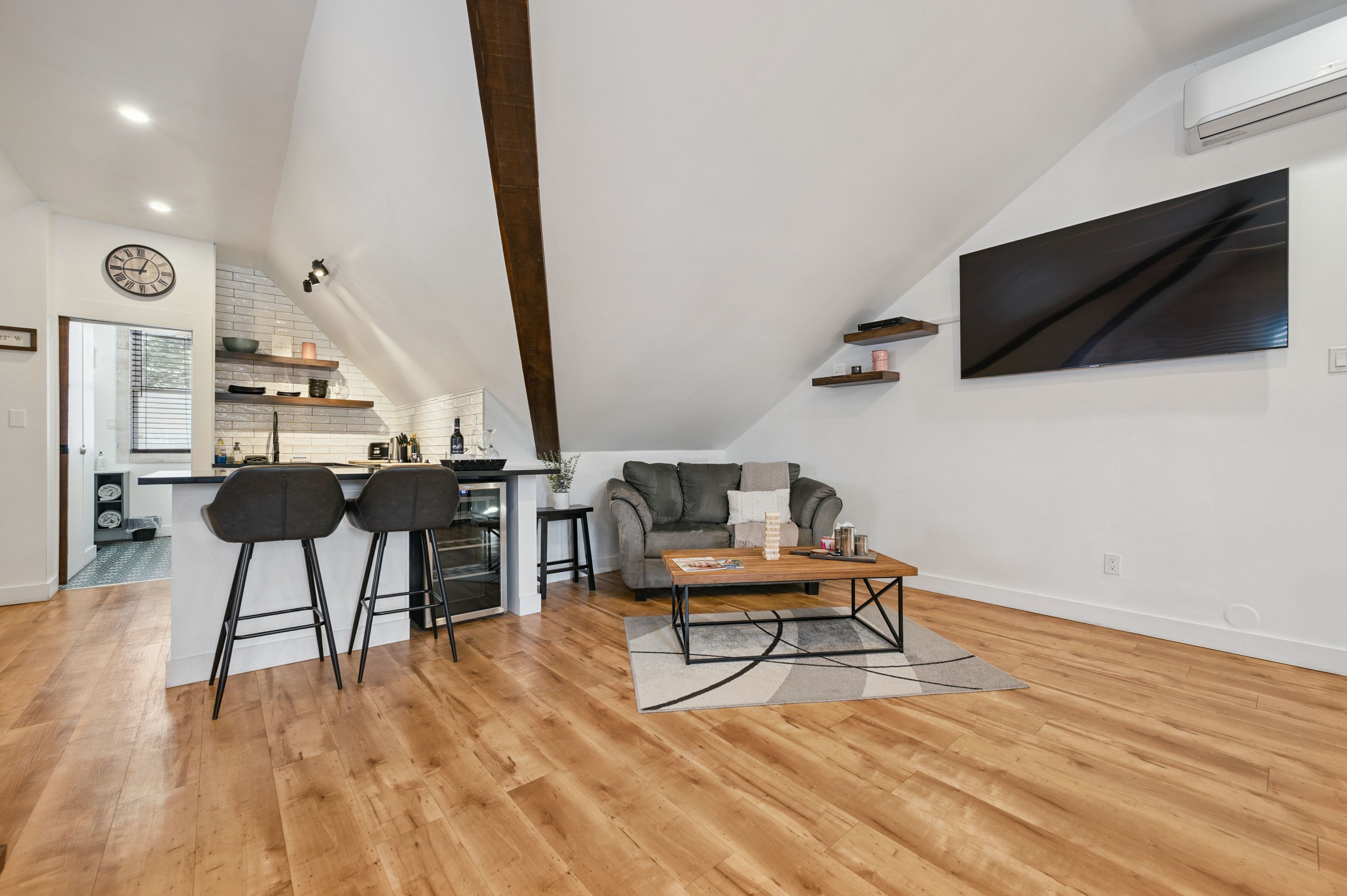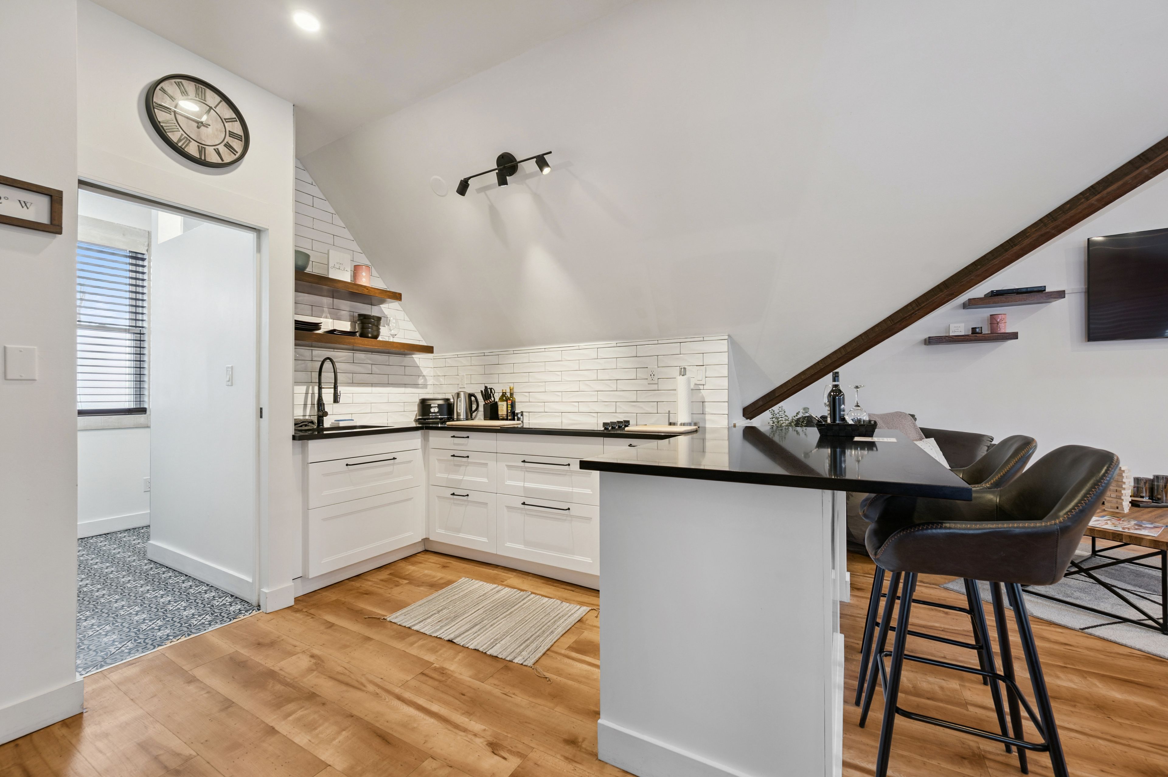 • Modern updates with timeless stone craftsmanship throughout the building.
