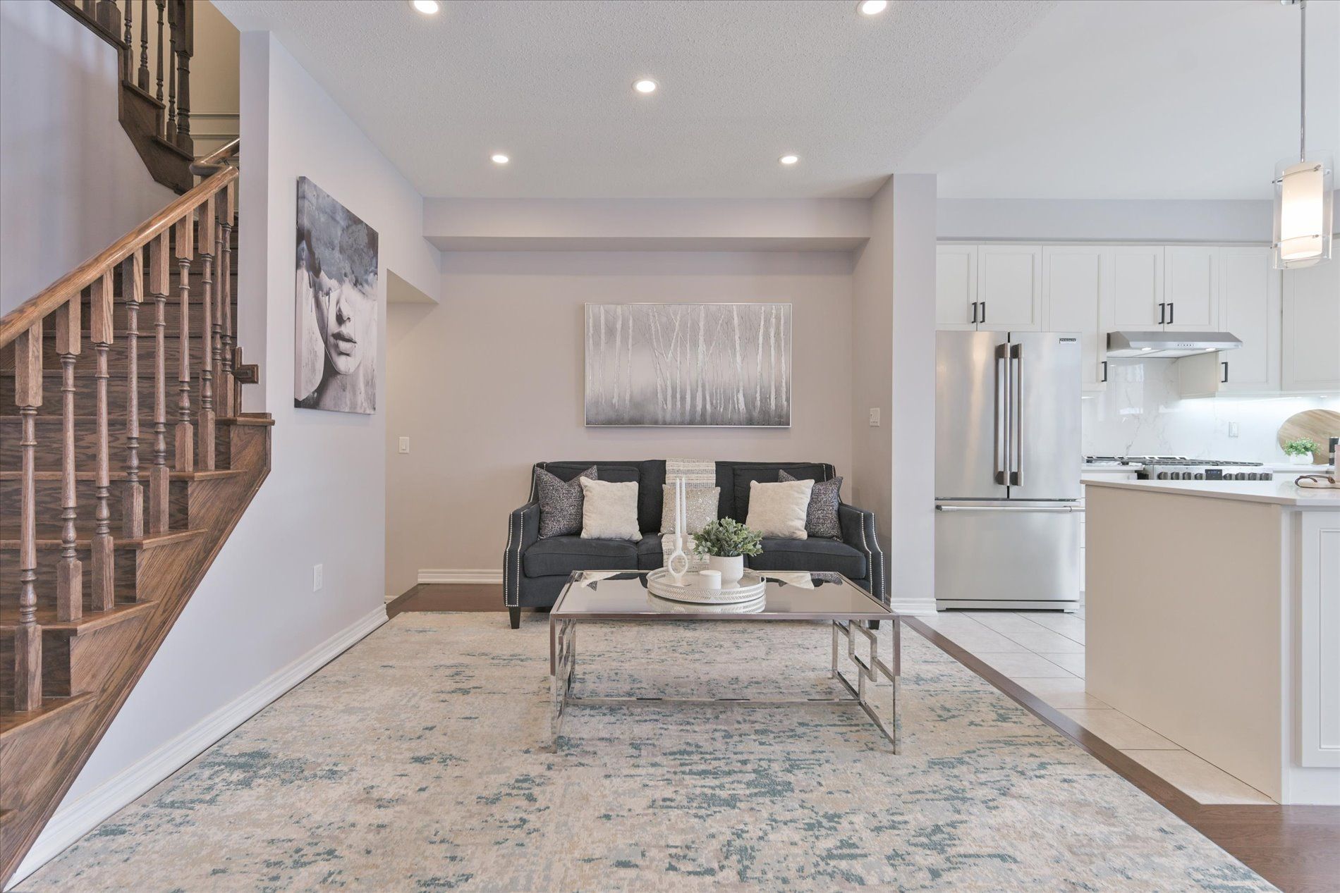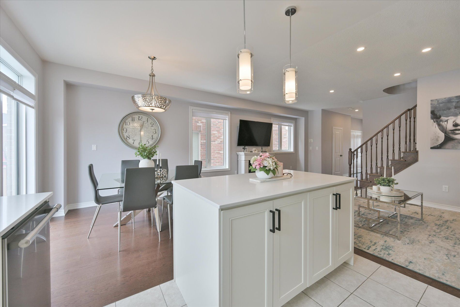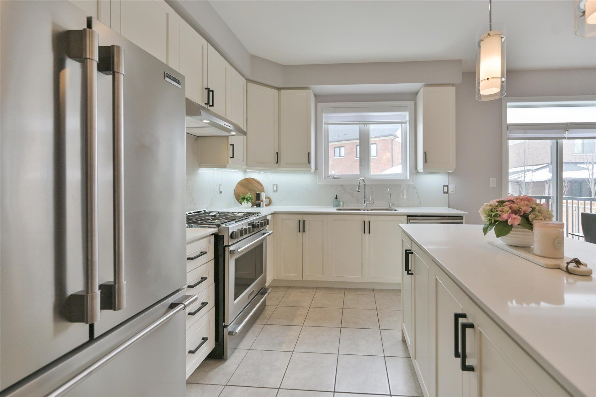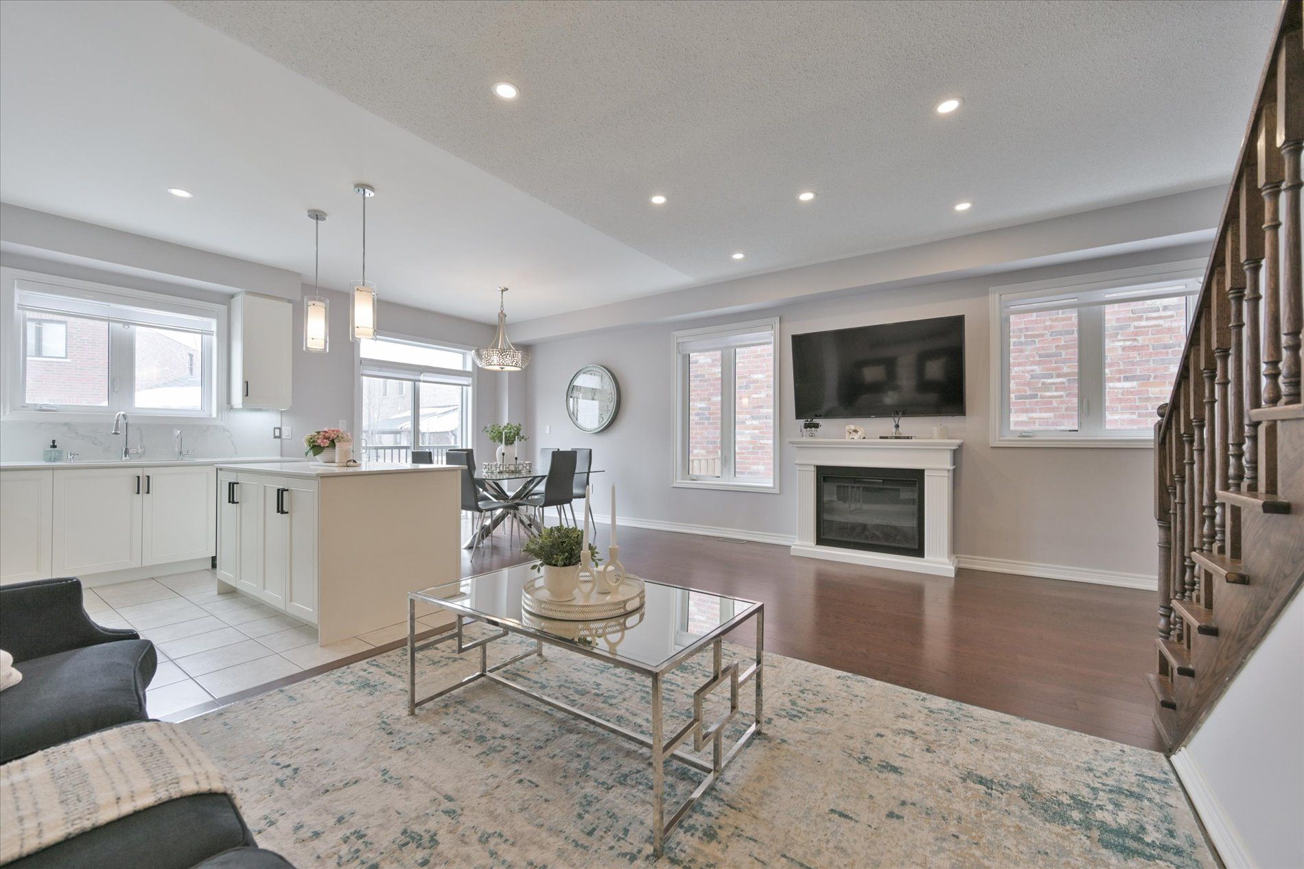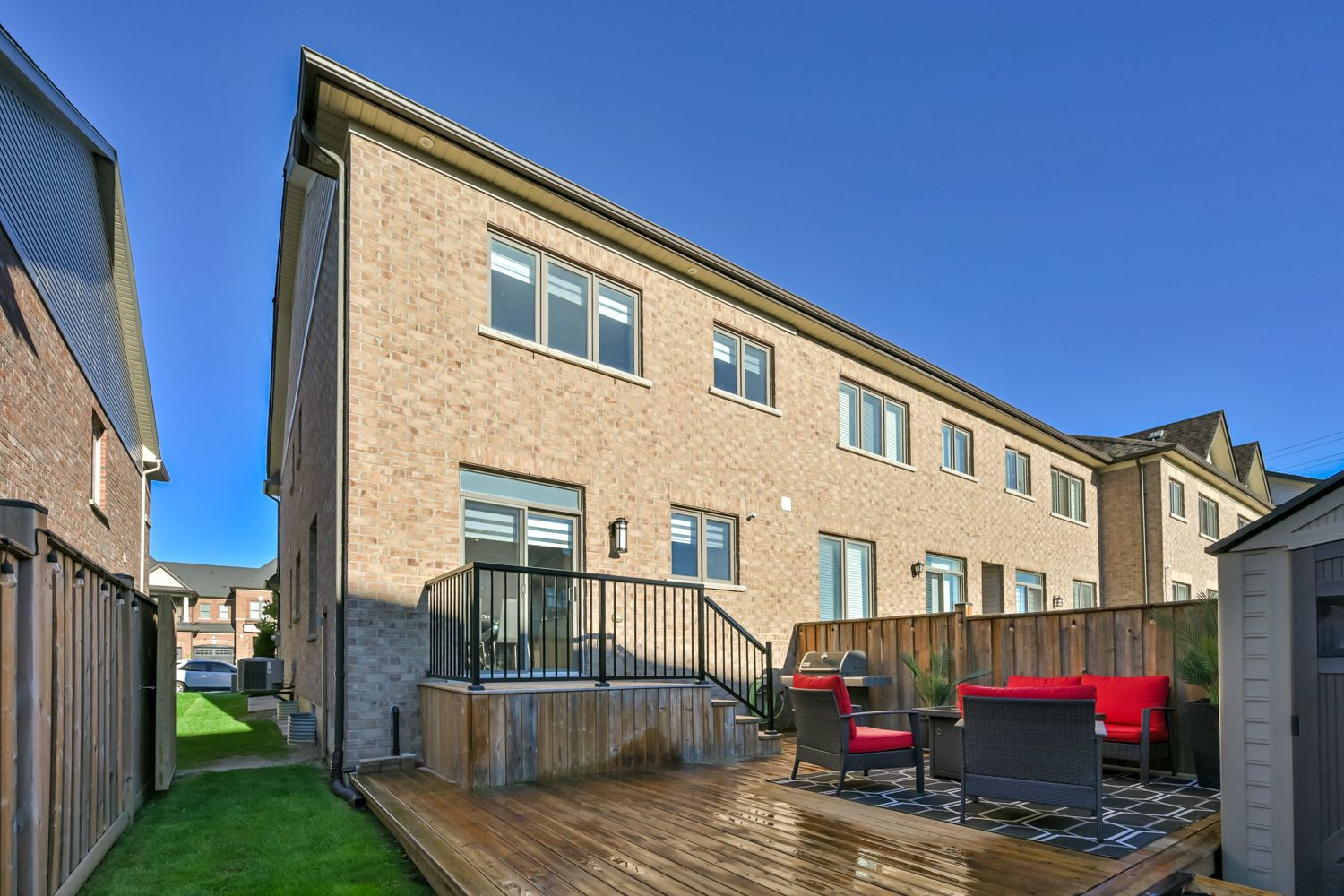 Welcome to this stunning upgraded end-unit townhome in one of south bolton's most sought-after family communities. Offering approx. 1,800 sq. Ft. Of bright open-concept living space, this move-in-ready home showcases true pride of ownership throughout. Premium end-unit exposure fills the home with natural light. The main level features 9-ft ceilings, hardwood flooring throughout (completely carpet-free), elegant wainscoting, and extensive interior and exterior pot lights. Functional layout with spacious living and dining areas ideal for everyday living and entertaining. Modern kitchen with centre island, quartz countertops, stainless steel appliances and gas stove, combining style and performance with quality finishes. Offers 3 bedrooms and 3 bathrooms, including a spacious primary retreat with walk-in closet and ensuite, plus convenient upgraded second-floor laundry room. Fully landscaped front and backyard with custom deck, aluminum railings, shed and gas bbq line perfect for outdoor entertaining. Premium lot offers added privacy. Garage with epoxy flooring and ev charger outlet. Numerous upgrades include reverse osmosis water filtration system, custom cantina/cold cellar with shelving, built-in security cameras and more. Ideally located minutes to parks, schools, trails, shopping and all amenities, with easy access to major routes. A rare turnkey opportunity offering the perfect blend of luxury, comfort and location. This is the one you been waiting for!!