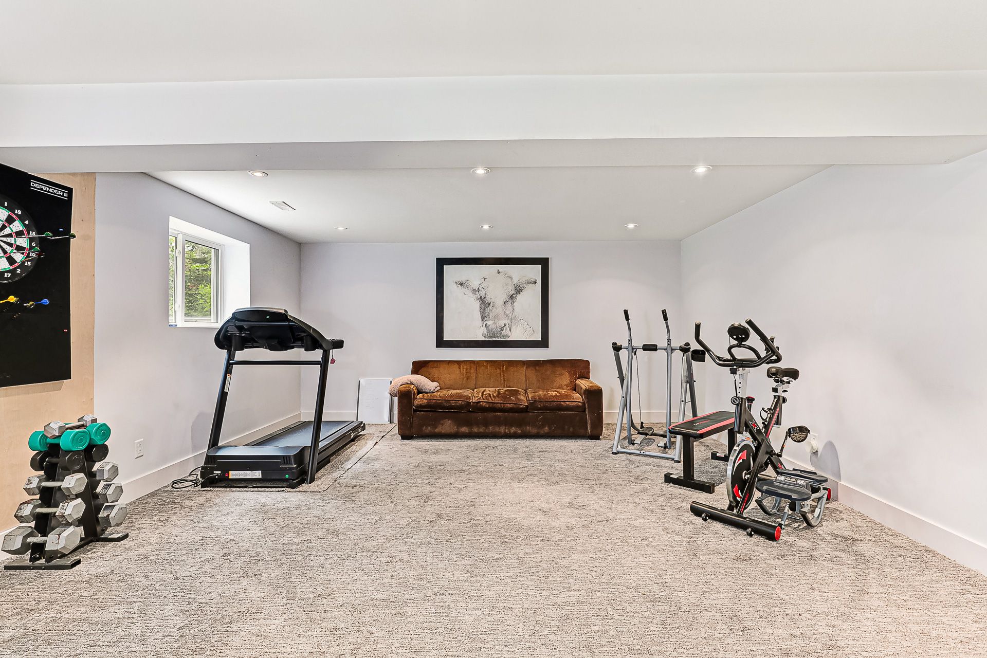 • Finished lower level with second kitchen, office, and versatile recreation space.