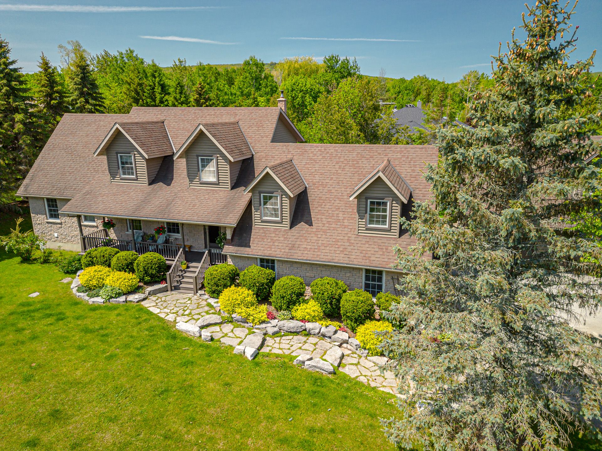 Your dream home awaits in prestigious collingwoodlands. Discover the essence of refined country living in this truly exquisite 4-bedroom custom-built residence, nestled within the sought-after enclave of collingwoodlands. Just minutes from the vibrant town of collingwood & moments from oslerbrook golf club, osler bluff ski club, & blue mountain village, this exceptional property places you at the heart of southern georgian bays most celebrated lifestyle & recreation. Crafted with timeless elegance & enduring quality, this home showcases superior craftsmanship, luxurious finishes & a design that seamlessly blends beauty with function. At its heart lies a gourmet chefs kitchen, complete with top-tier appliances, an expansive centre island, and fine detailing perfect for both sophisticated entertaining & everyday enjoyment. The gracious living room opens onto a covered porch, inviting you to begin your day with a coffee in hand, surrounded by natures tranquillity. A spacious dining room creates the perfect setting for memorable gatherings. The main-floor primary suite is a private retreat, featuring a spa-like 5-piece ensuite, walk-in closet, and direct access to a gorgeous 3 season sunroom , which flows out to the bbq area & beautifully landscaped grounds. Upstairs, you'll find three beautifully appointed bedrooms, a 4-piece bathroom with a soaker tub. A charming loft-style family room is ideal for cozy movie nights or quiet reflection. The fully finished lower level offers exceptional versatility, with a second kitchen, pantry, home office, woodstove, & a spacious rec room/gym, with walk-out access to the heated double garage. Outdoors, relax in your private resort-like oasis, complete with a heated saltwater pool, detached double garage with loft & a heated attached garage with pool access. Professionally styled & lovingly maintained, this extraordinary home invites you to live a life of beauty, comfort & connection in one of collingwood's most desirable enclaves.