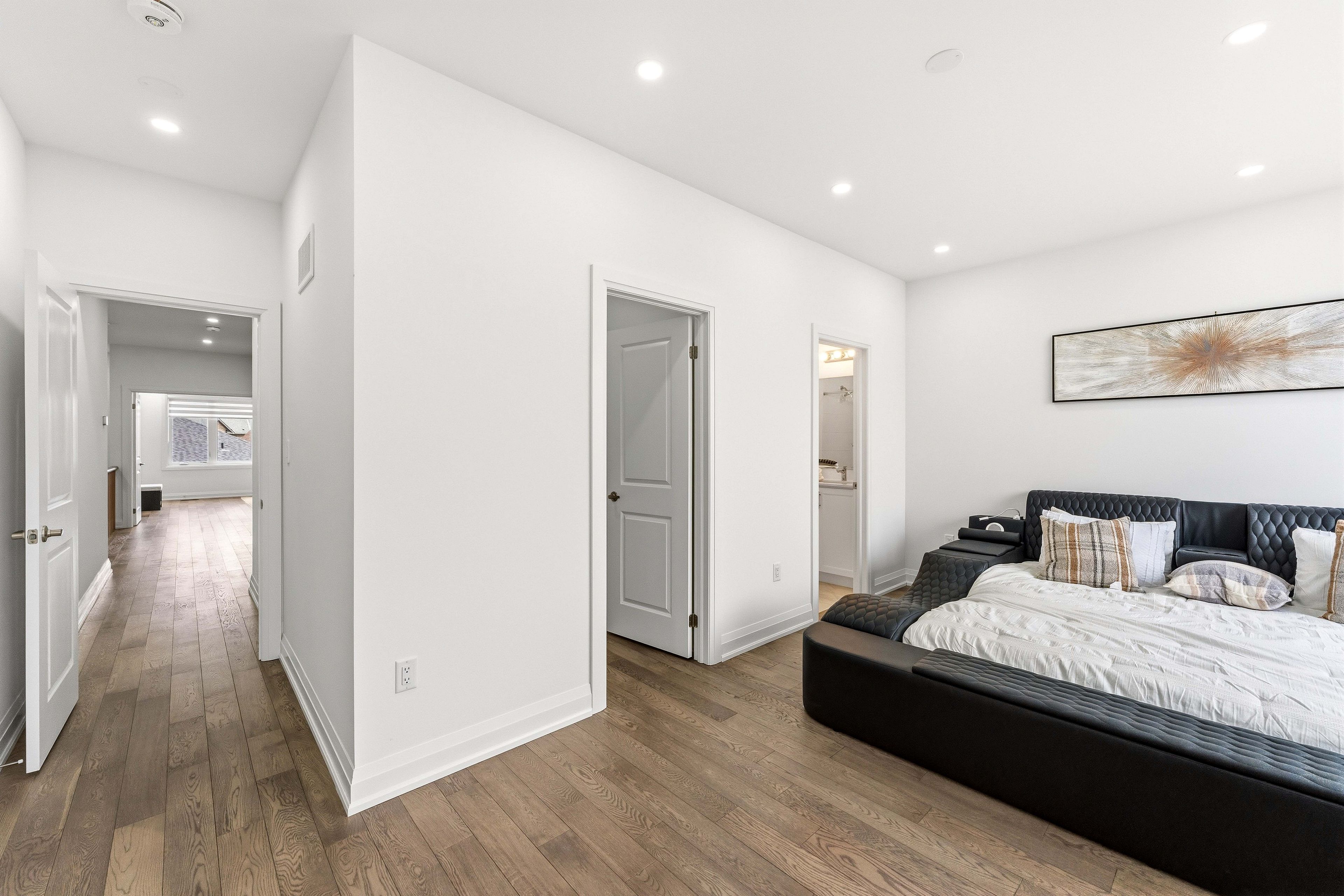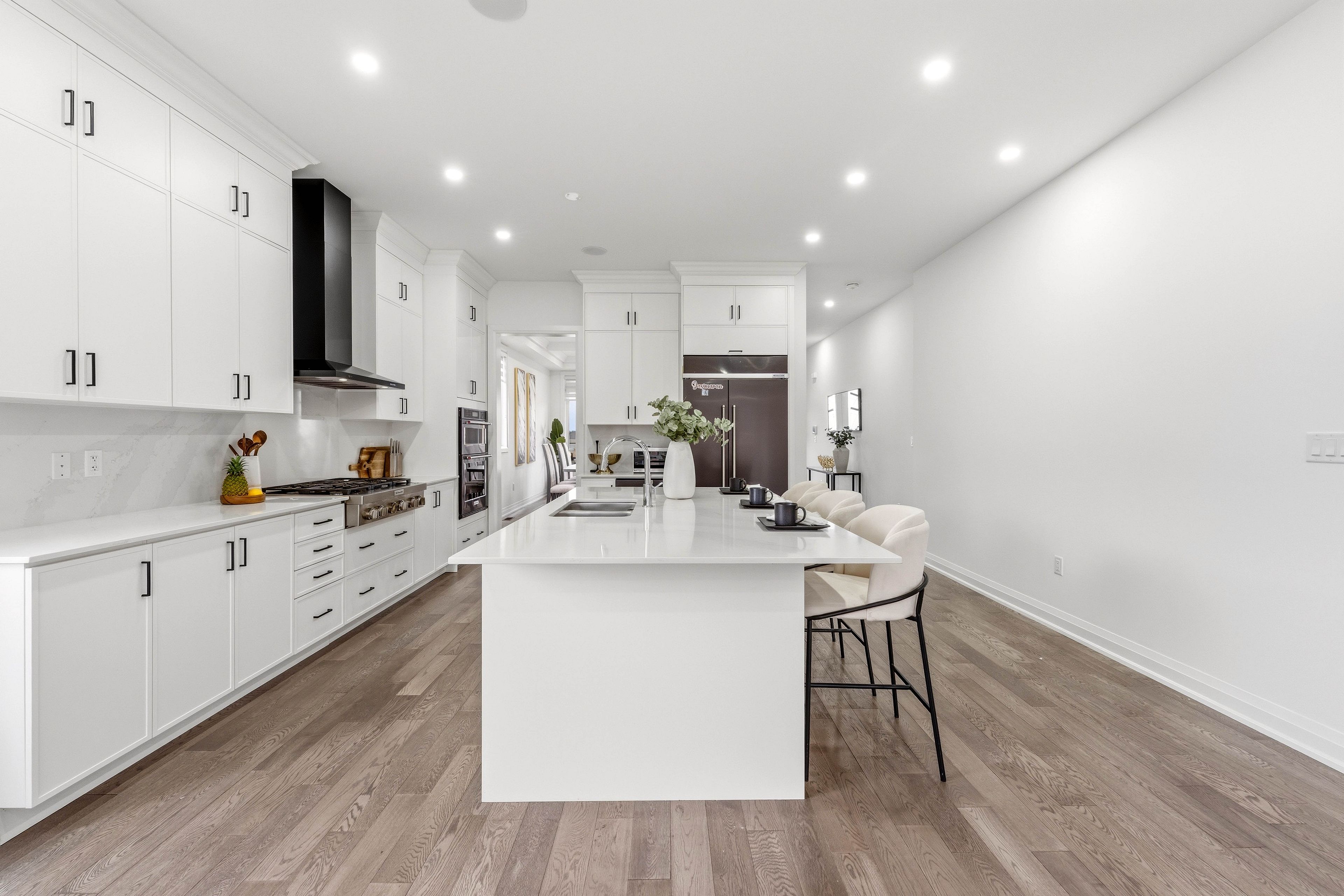 Indulge in elevated living with this breathtaking, ultra-modern 3,479 sq. Ft. Masterpiece, masterfully crafted by a premier builder and set on a coveted premium lot. Offering 5 generously sized bedrooms and 6 spa-inspired bathrooms, this residence showcases over $300,000 in exquisite designer upgrades-delivering a true statement of luxury at every turn. From the moment you enter, you are greeted by dramatic 11-foot ceilings on every level-including the walkout basement with a separate side entrance-creating a bright, expansive, and light-filled atmosphere that exudes sophistication. Ambient pot lighting, thoughtfully placed throughout the interior and exterior, enhances the home's sleek architectural design and sets the perfect ambiance day and night. At the heart of the home lies a stunning chef's kitchen, outfitted with top-of-the-line black stainless steel built-in appliances, bespoke cabinetry, and refined finishes-an entertainer's dream and a true culinary showpiece. Every space has been meticulously curated to seamlessly blend modern elegance with everyday functionality. This is more than a home-it's a lifestyle. A rare opportunity to own a turnkey luxury residence where impeccable design meets effortless comfort.