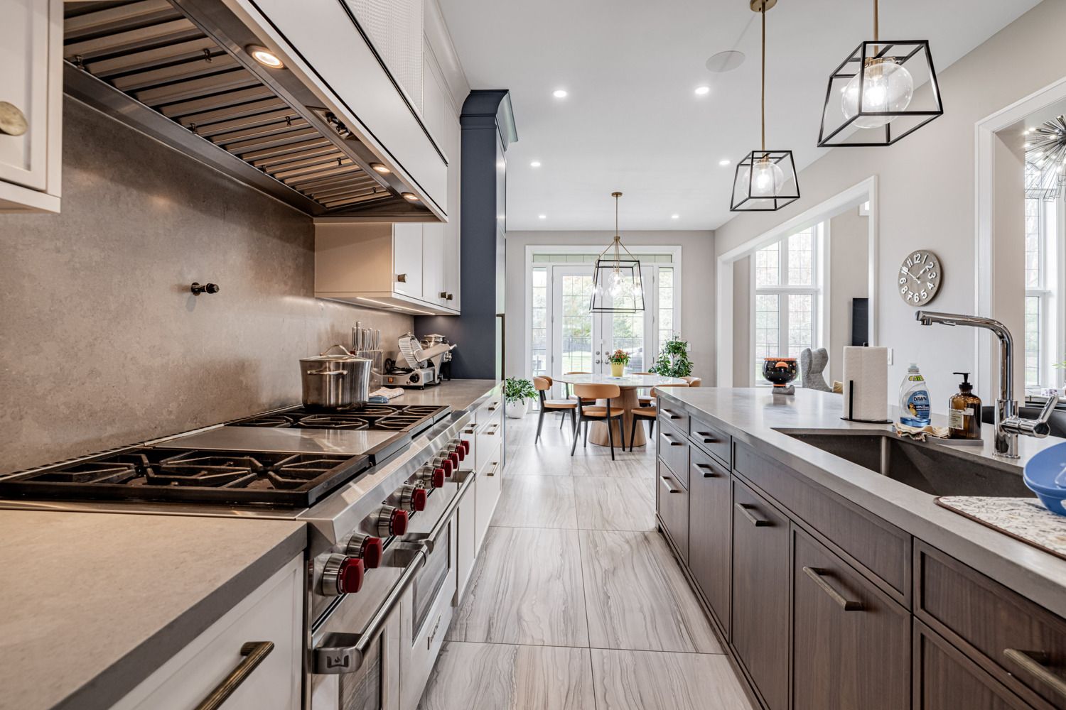 • Chef's kitchen with high-end appliances and a walk-in pantry.